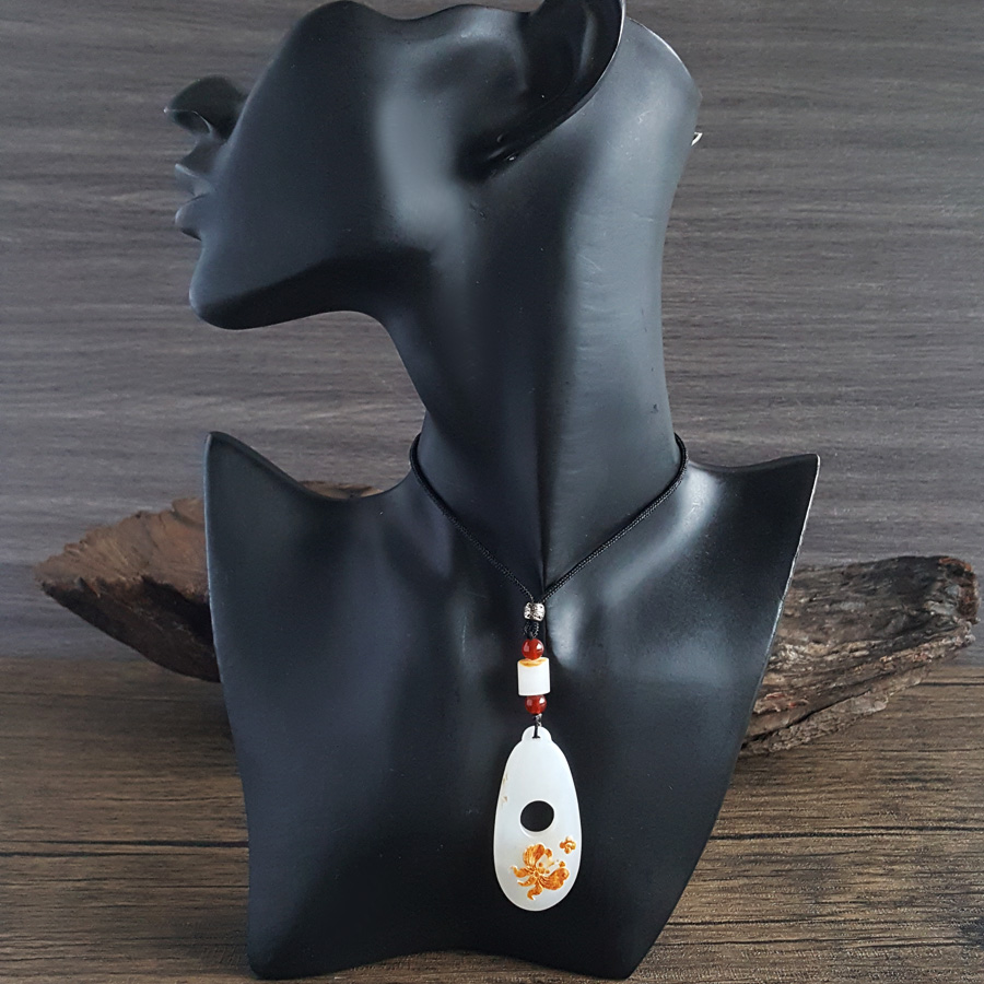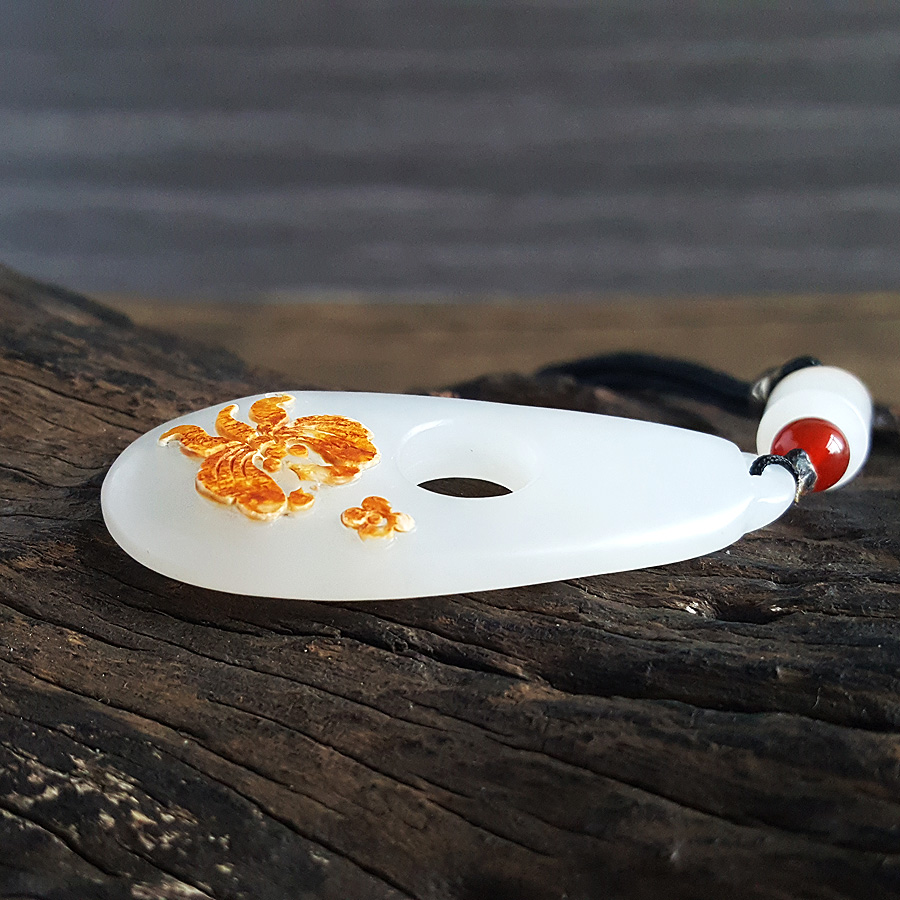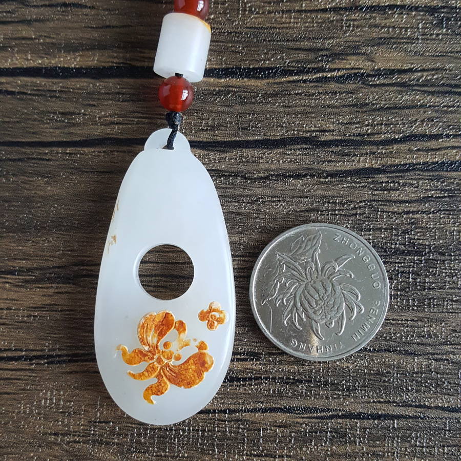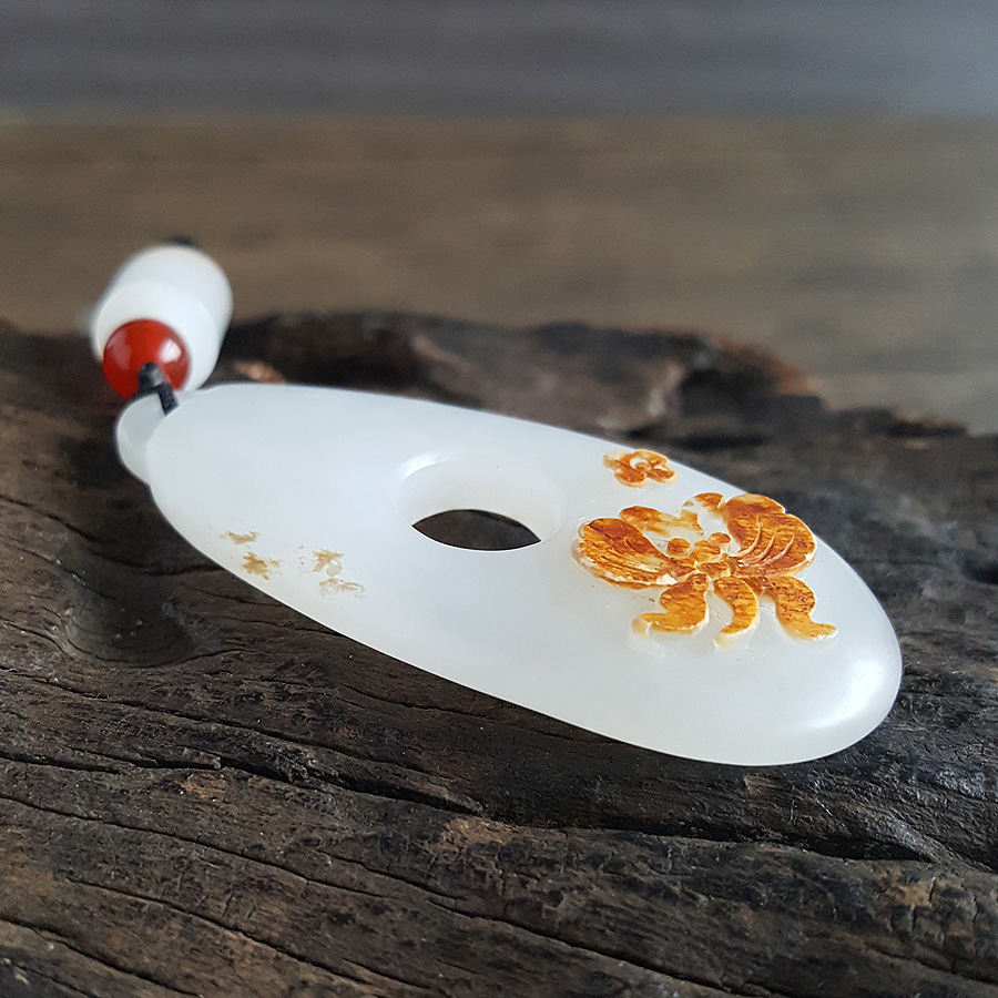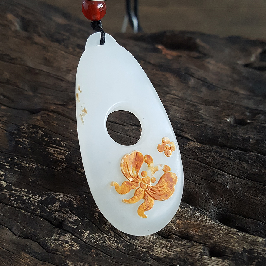 【天然正品】天然新疆料带皮蝶恋花造型和田玉吊坠项链52.2*24.1*7.8MM(皆取最大值)290323XY21+