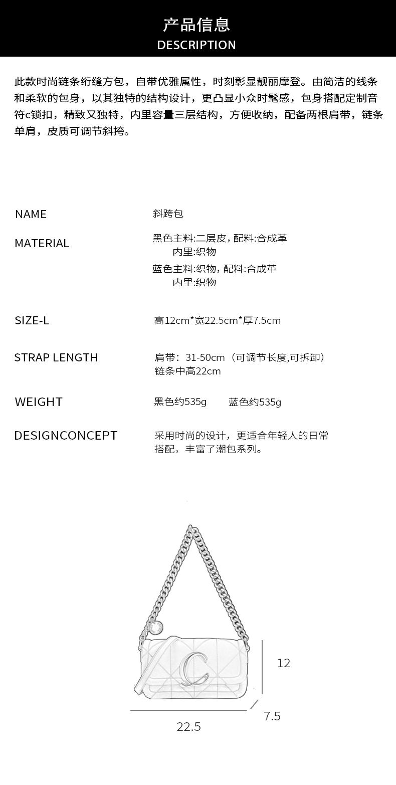 Cowec Ycaki 高级感时尚单肩斜挎链条小方包
