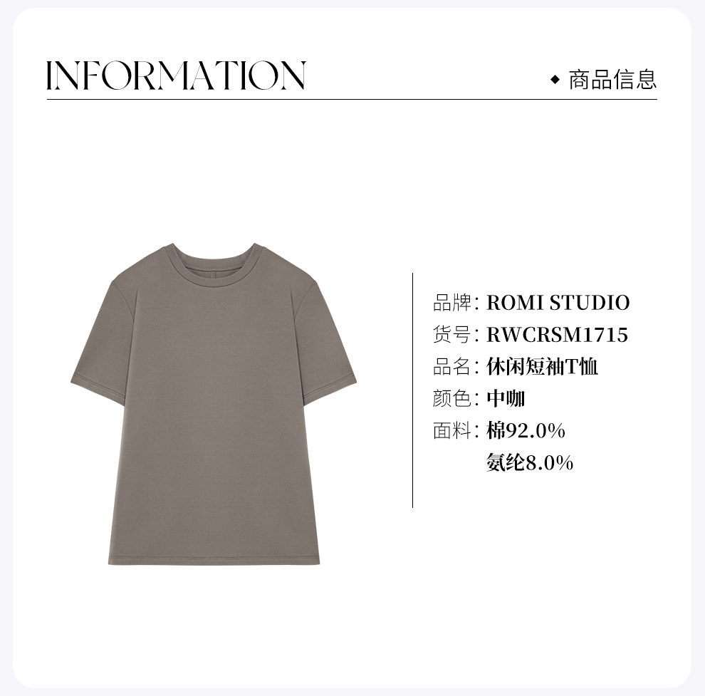 ROMI STUDIO 百搭宽松圆领休闲纯色简约打底短袖T恤女RWCRSM1715