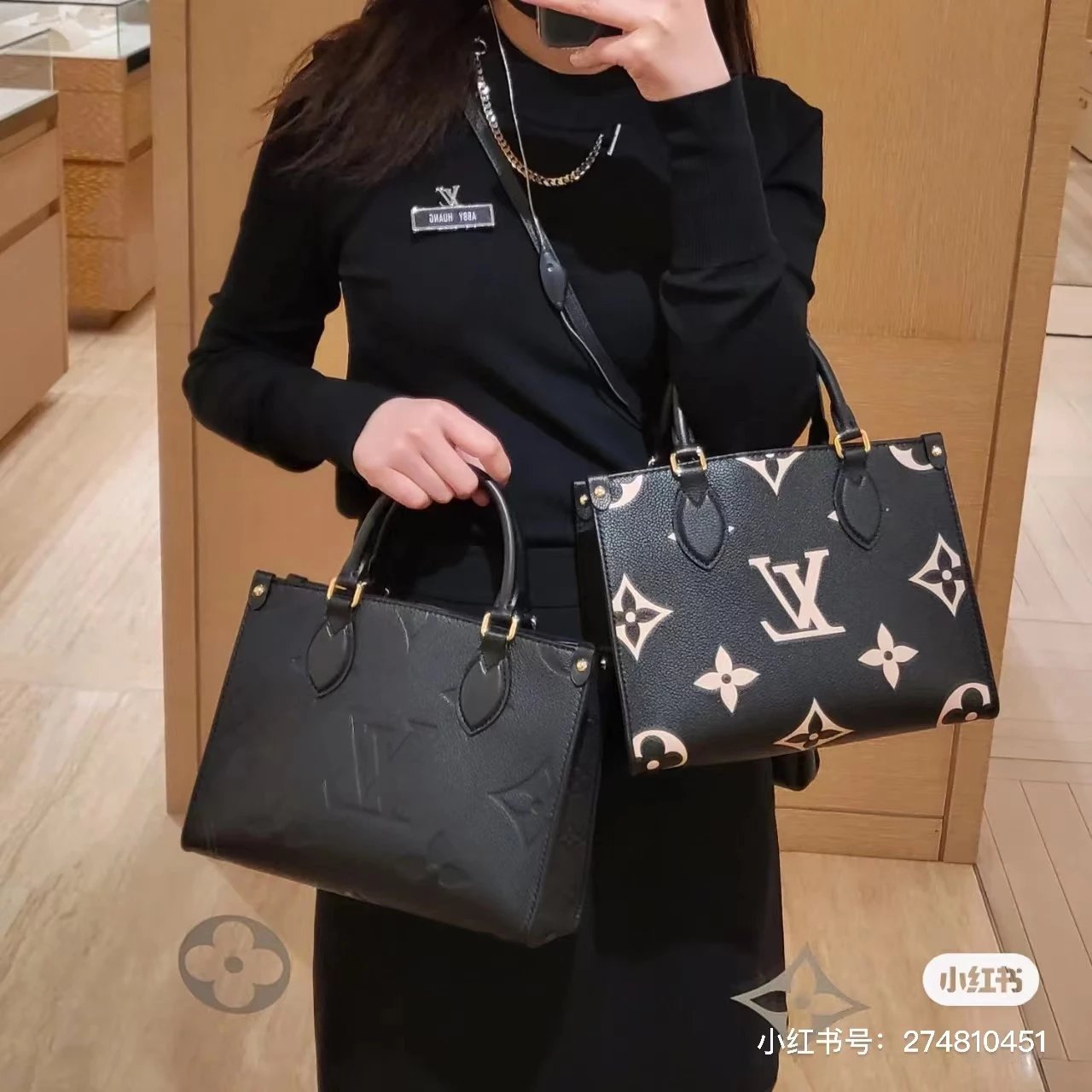 代购级全刚特级版本丝妈咪袋系列?本款 OnTheGo 小号Tote 包将 Monogram 图案先印染后压印于柔软粒面牛皮其充裕内里可容纳笔记本电脑及其他办公用品长短手柄便于手提或肩背尺寸:25x 11.0 x 19.0 厘米