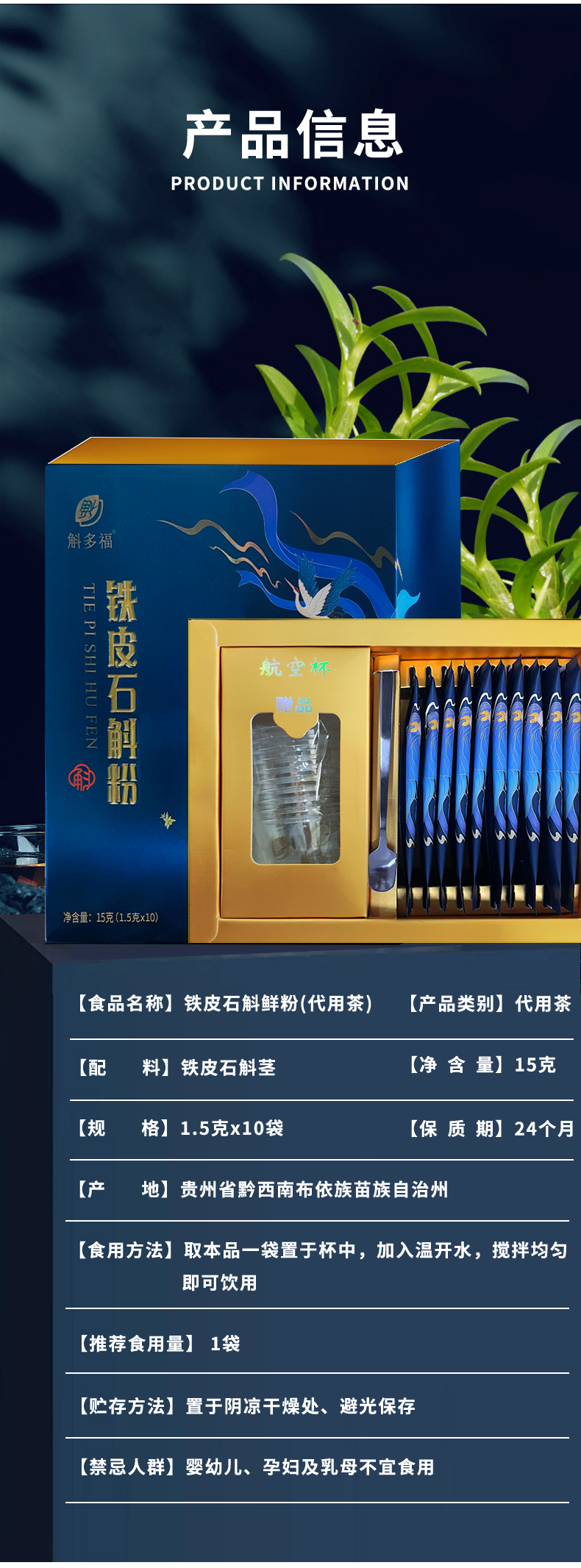 贵州斛多福100%铁皮石斛粉1.5g*10袋/盒