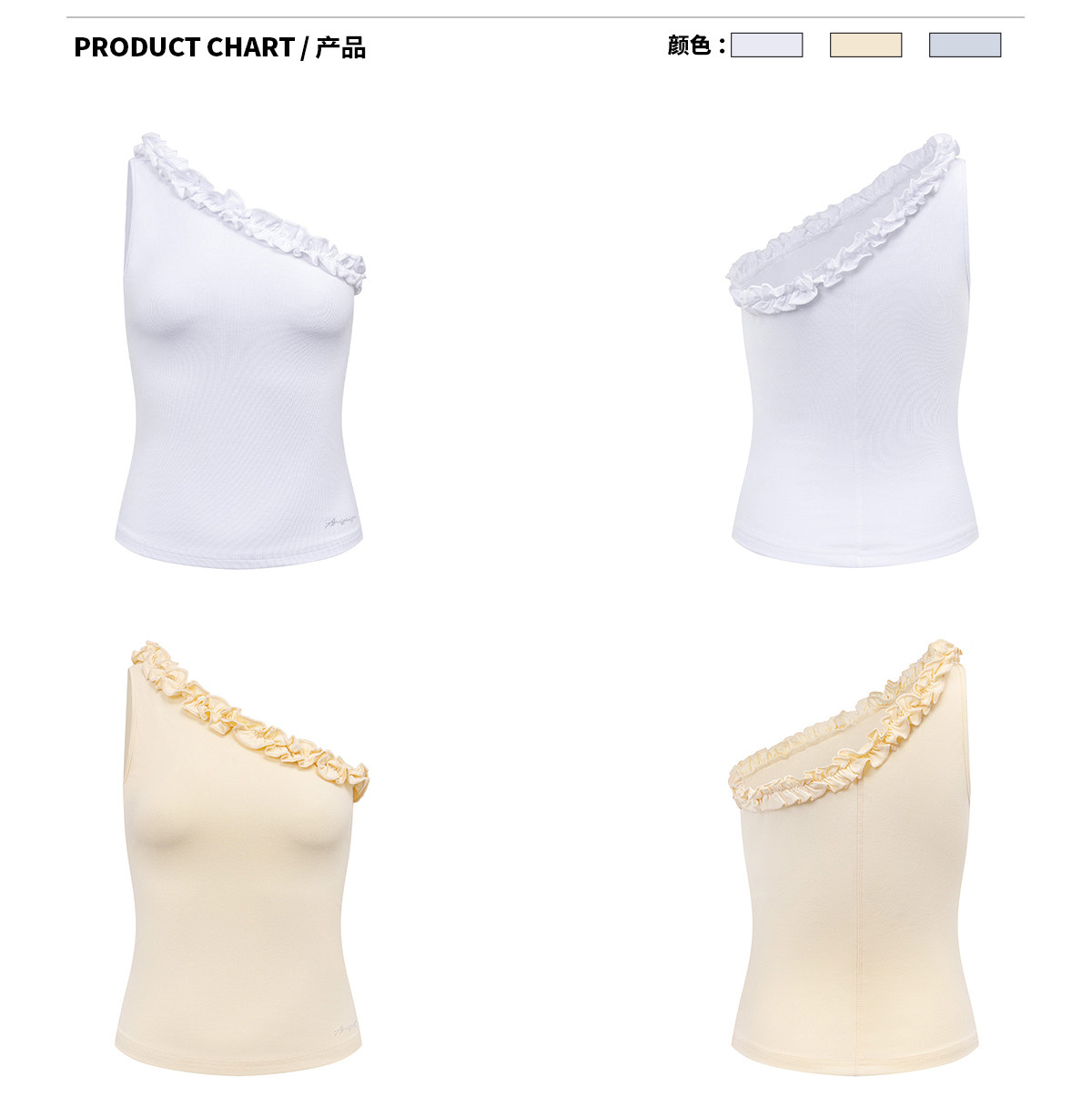Ariseism 美式复古斜肩花边吊带背心女夏季新款外穿