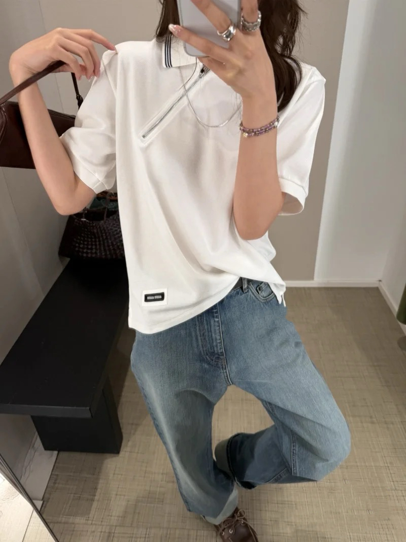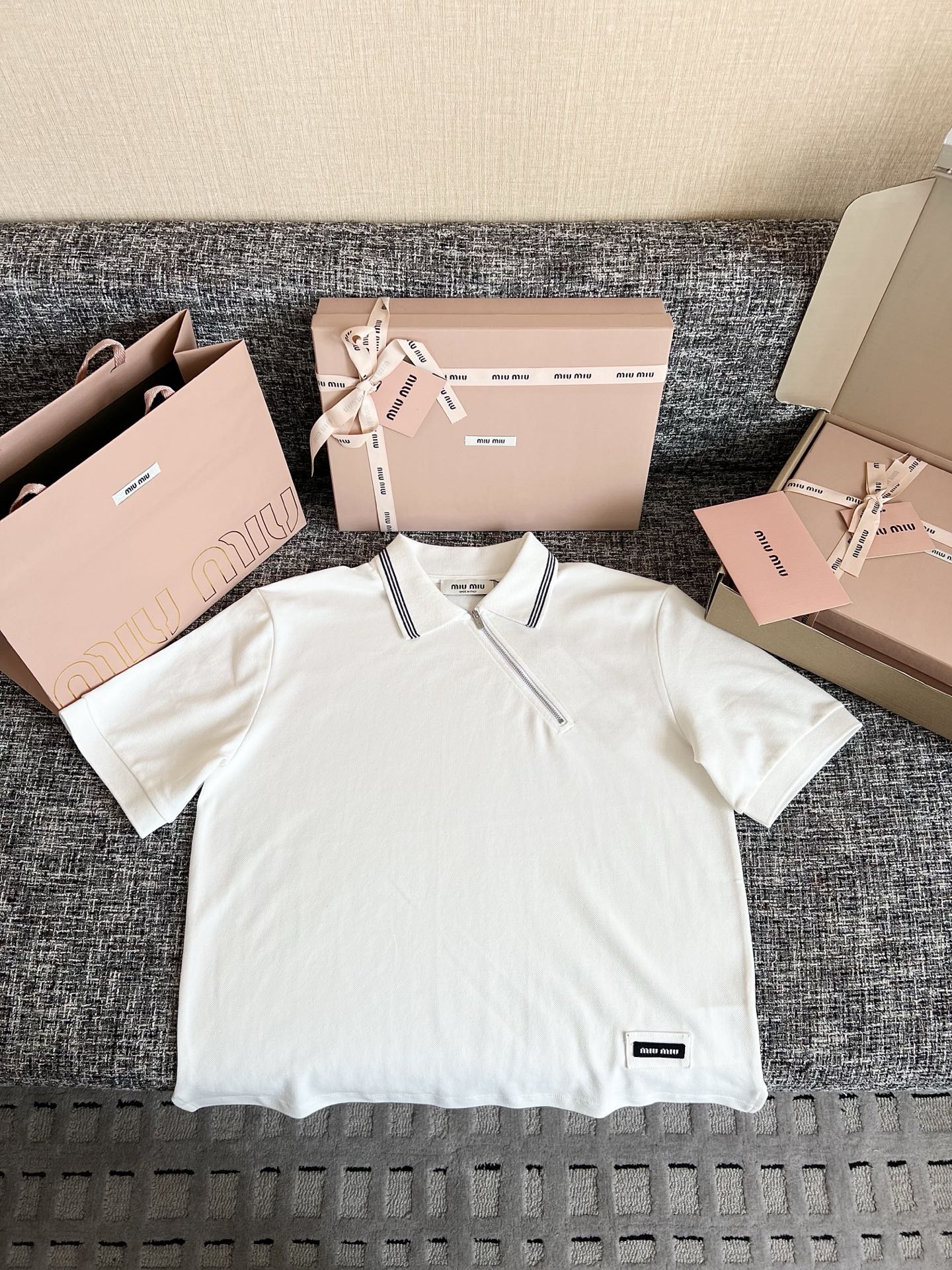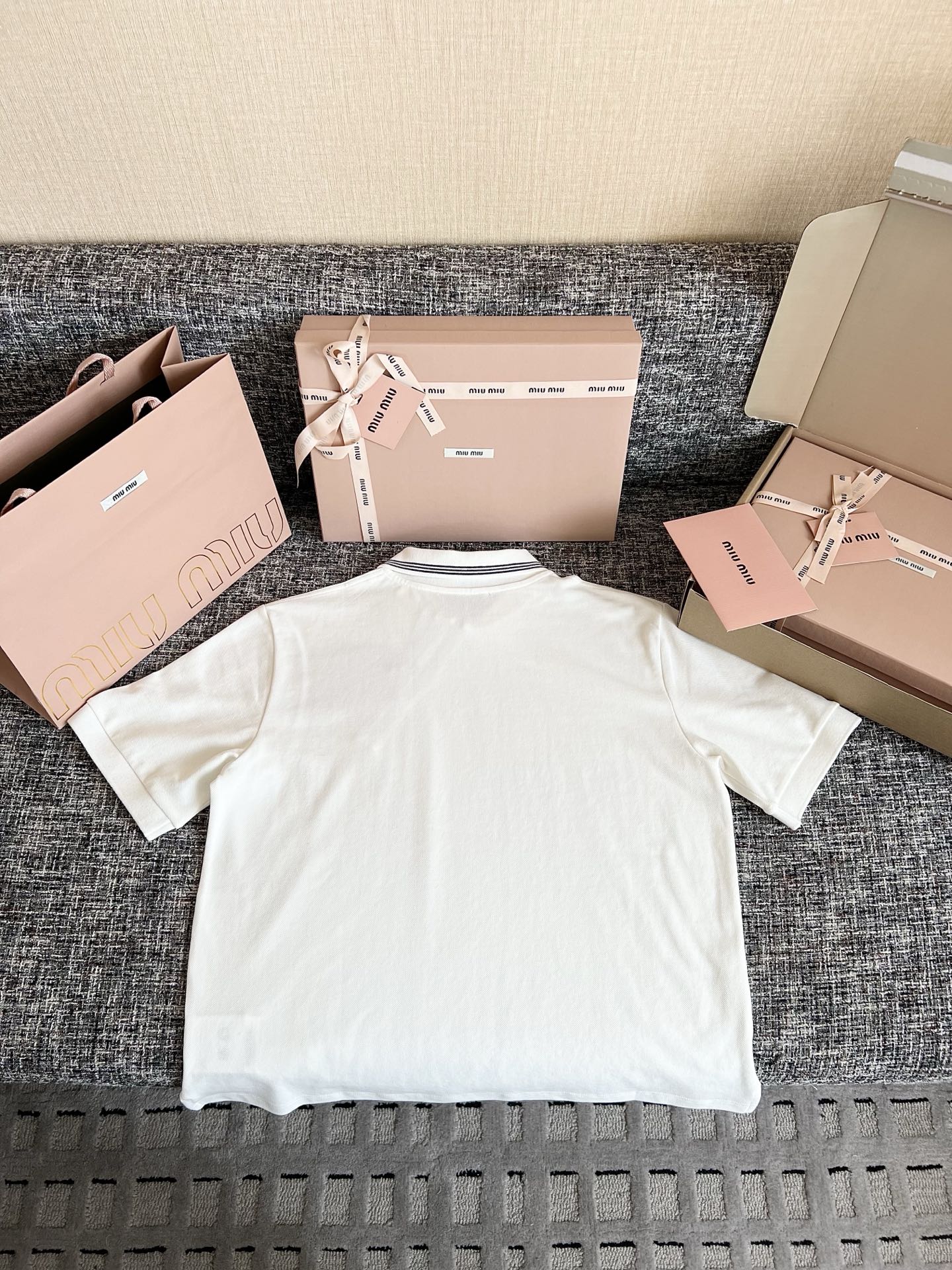 MiuMiu 26早春新款短袖🐮8750购买Zp拆解打造,订织订染ROW匹马棉面料🐮 真正用到100%跟原版材料对版出货💪工艺放大看细节除还原度接近98以上 做工也无敌了🔥真正做到1:1还原 直接闭着眼购买👀码数:S M L