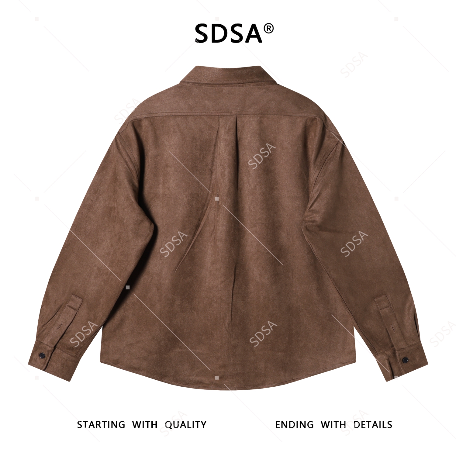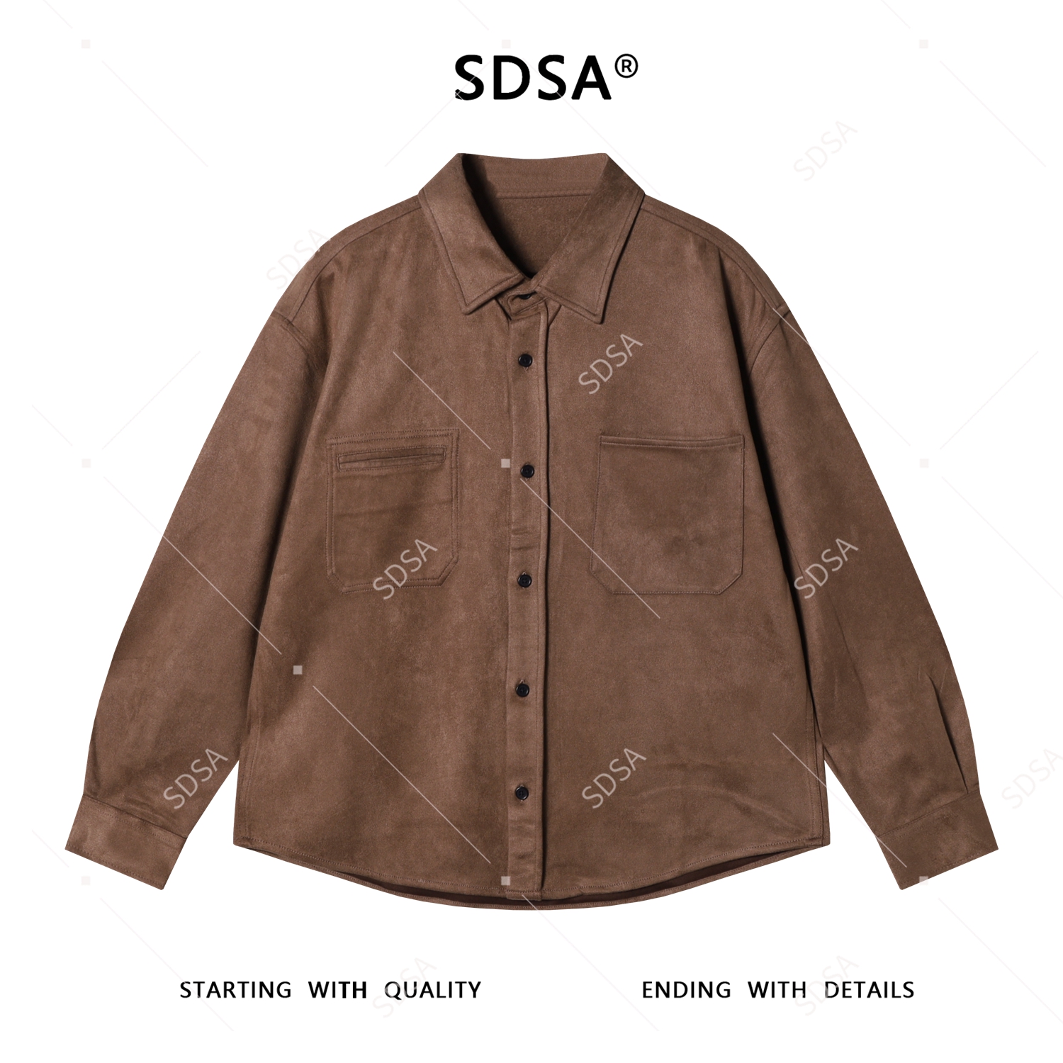 6354SDSA男士秋冬新款痞帅男装极简风绒面纯色翻领长袖衬衫复古百搭