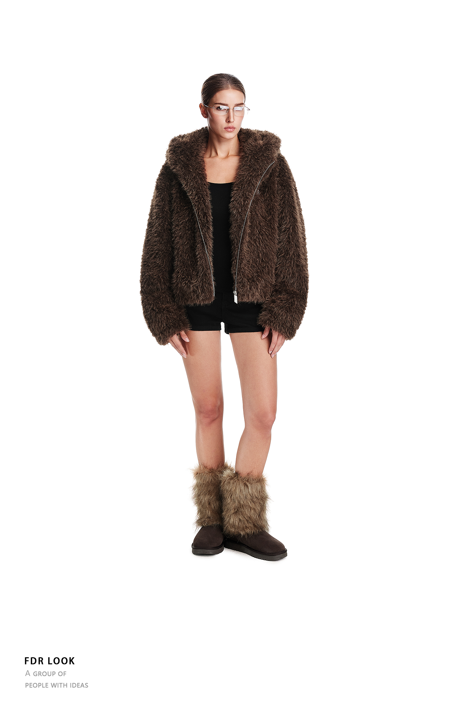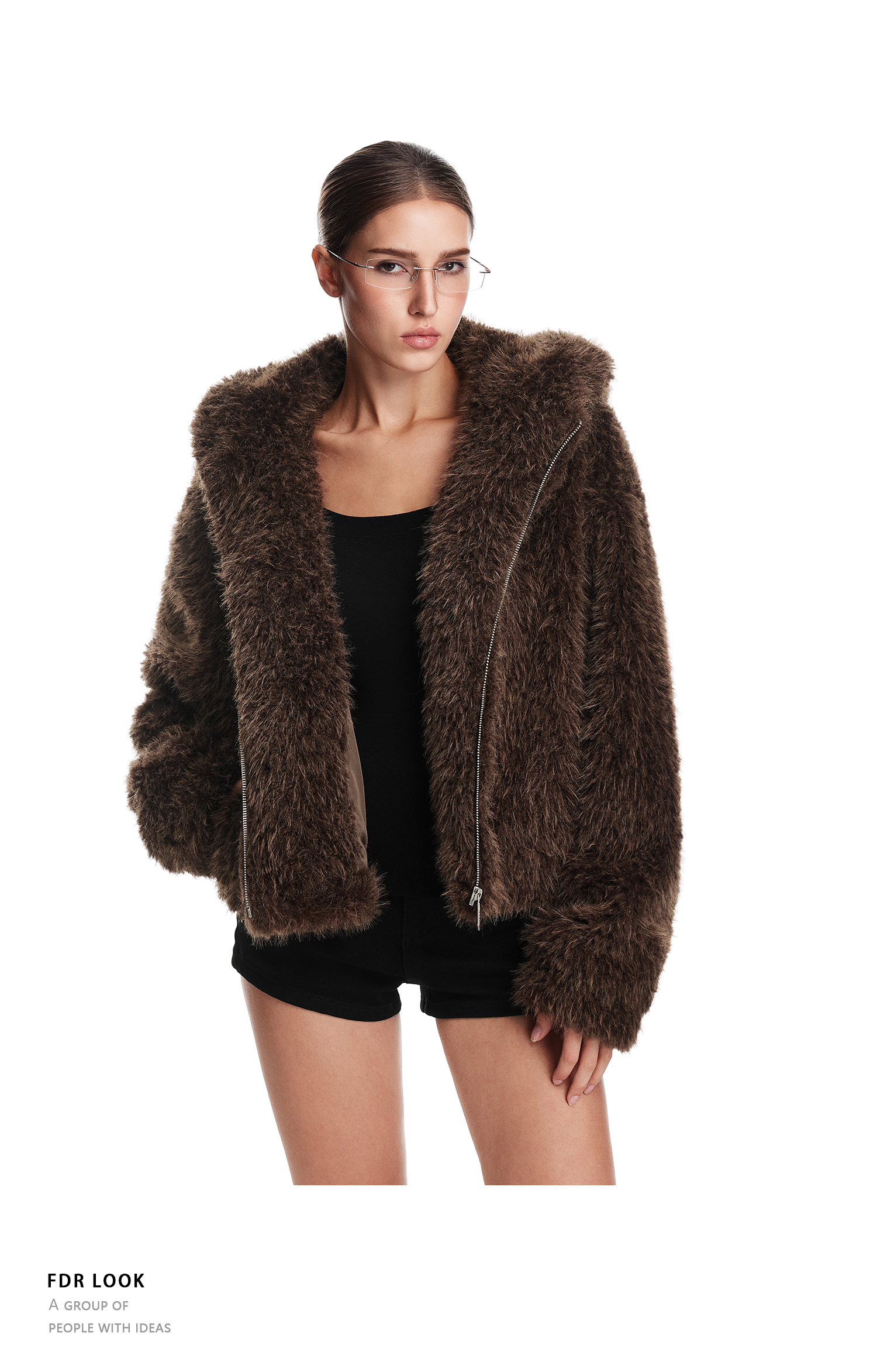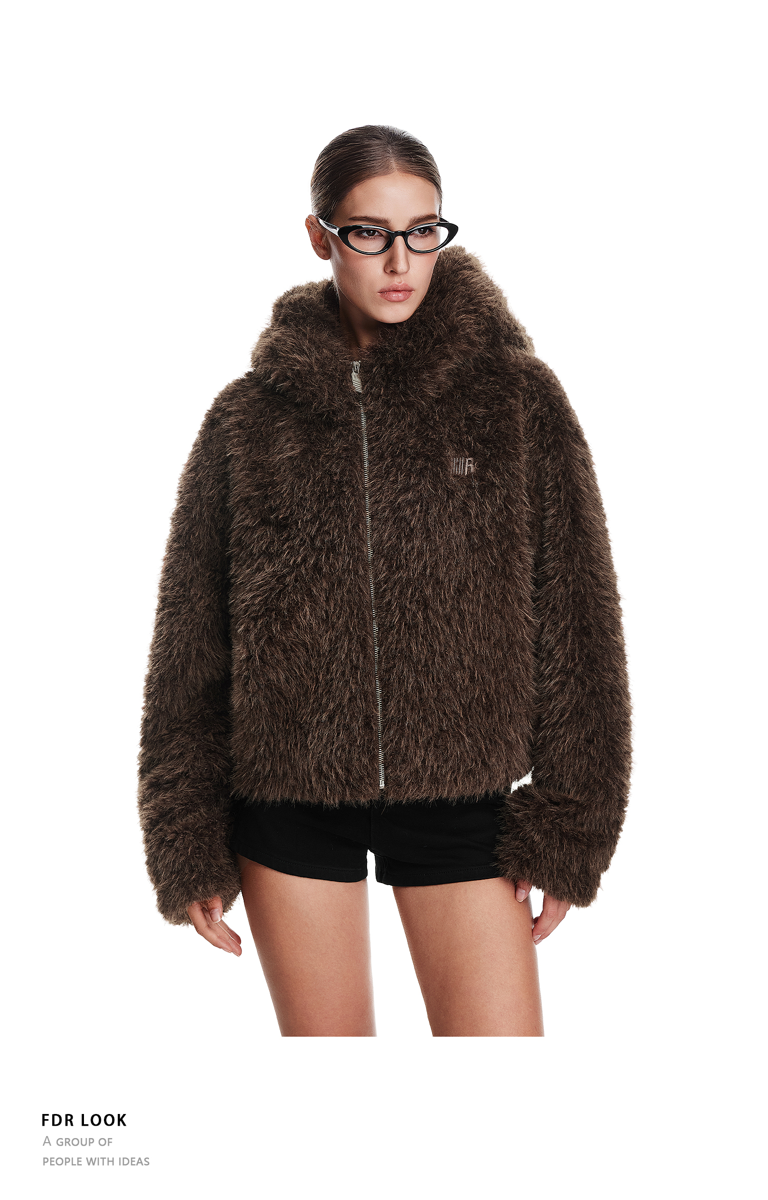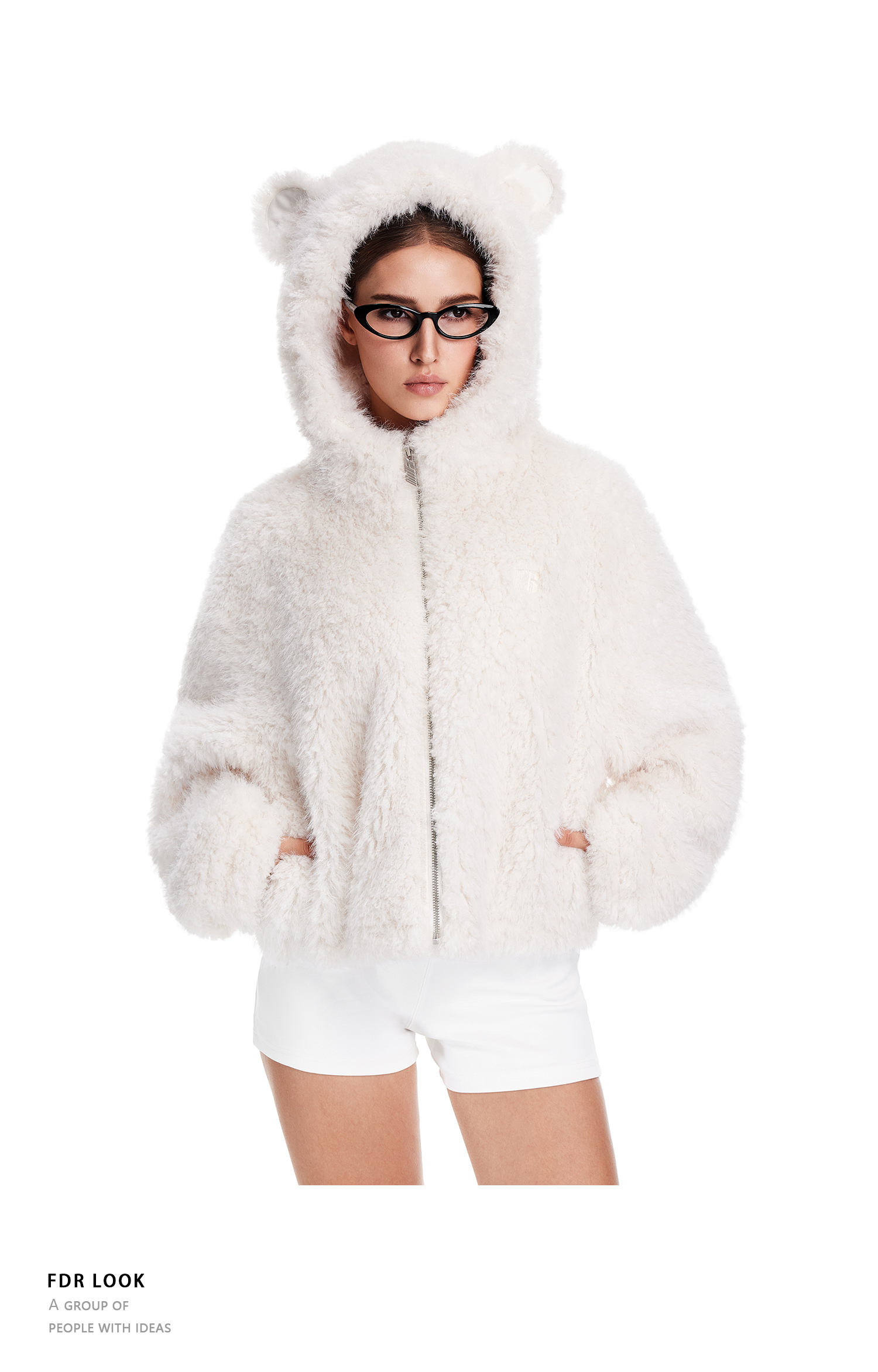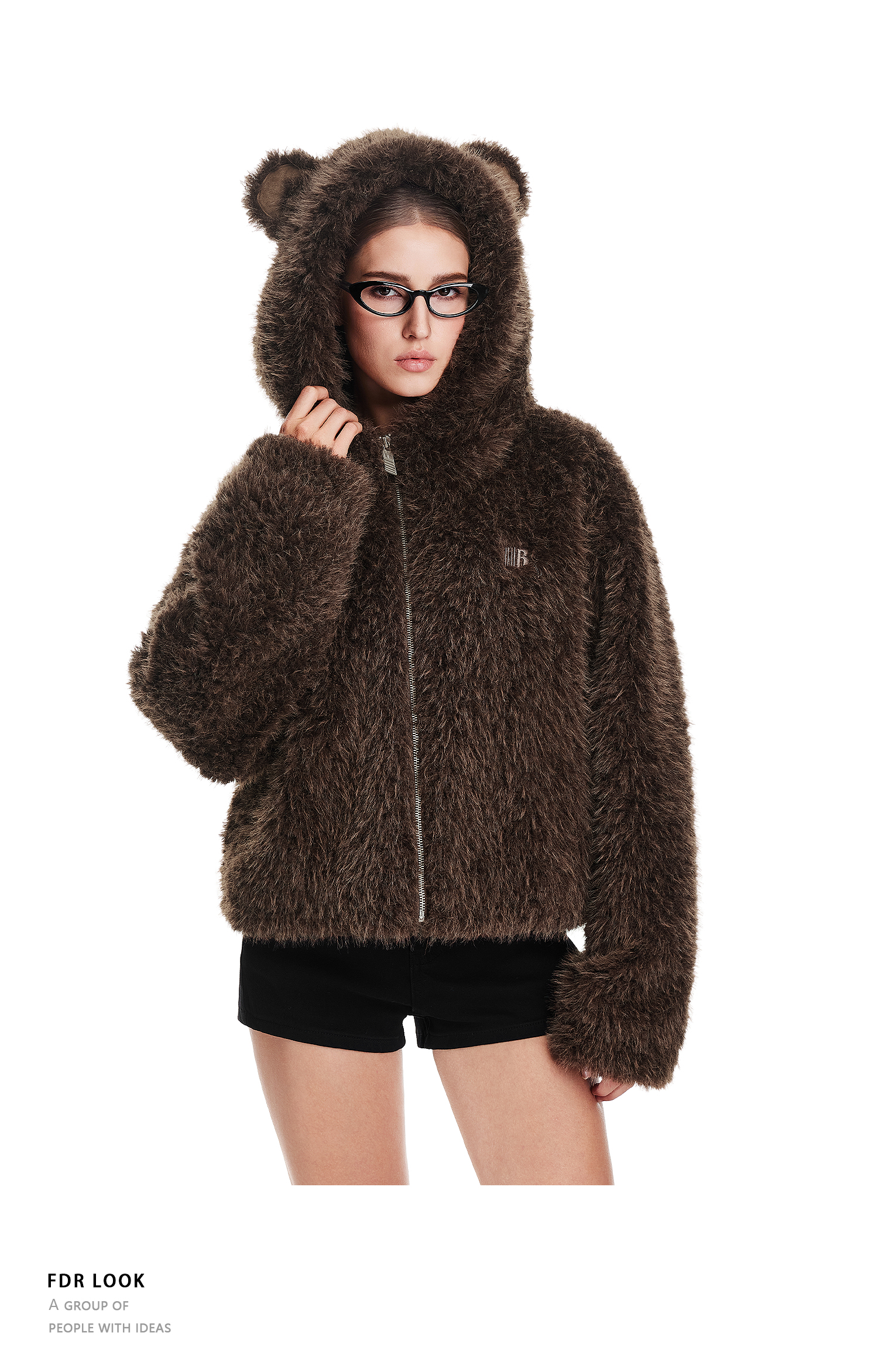 FDR官方店 辣妹连帽耳朵毛毛外套女款秋冬加厚羊羔毛拉链开衫上衣