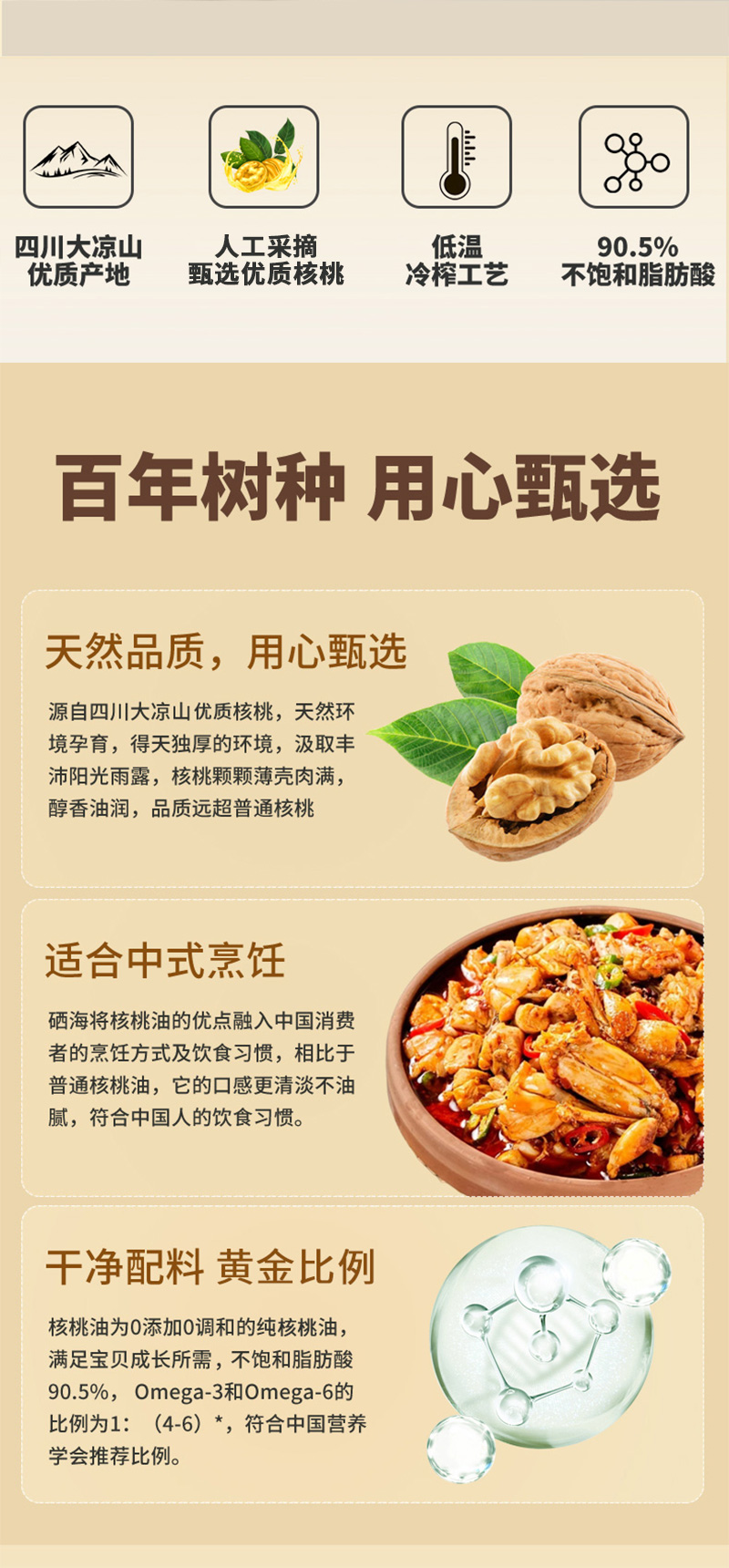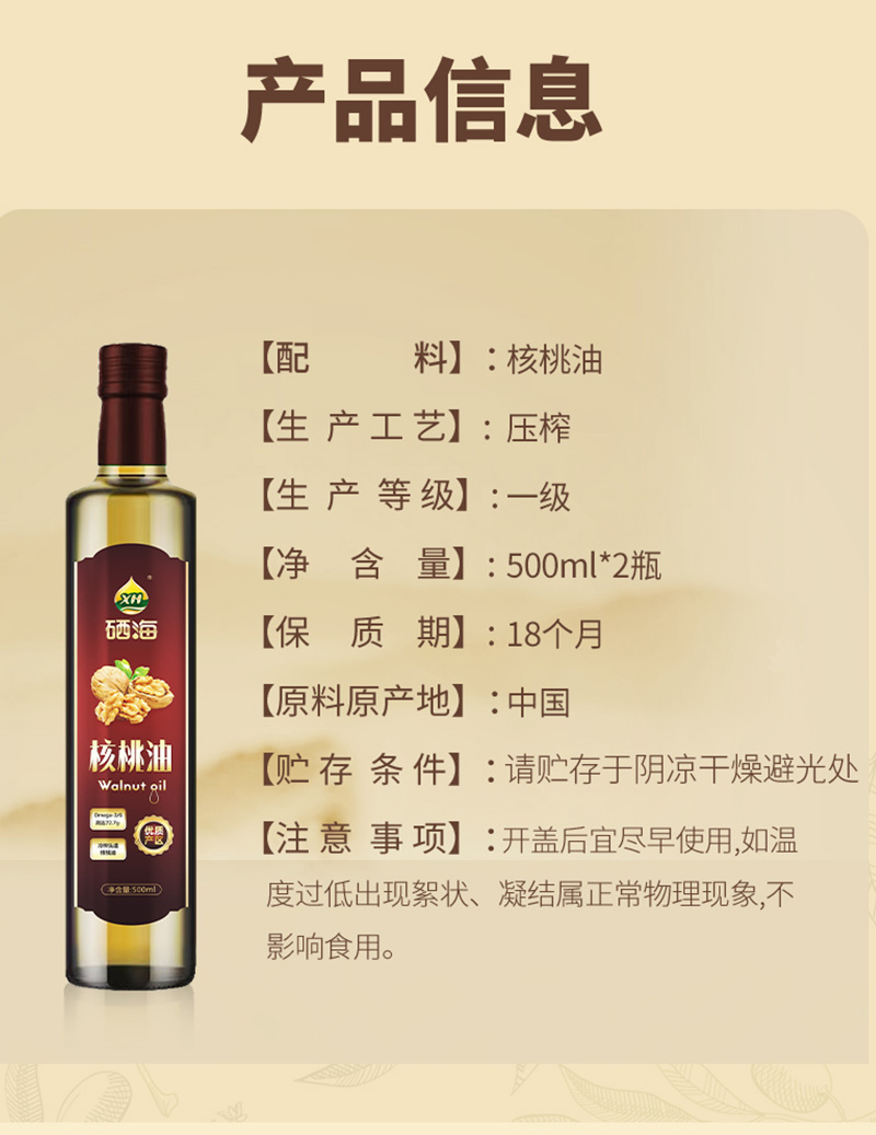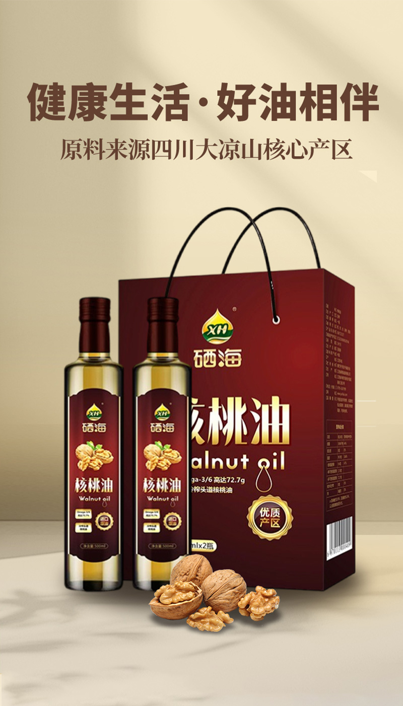 硒海(礼盒装)冷榨核桃油500ml*2瓶 适用于儿童宝宝孕妇食用油
