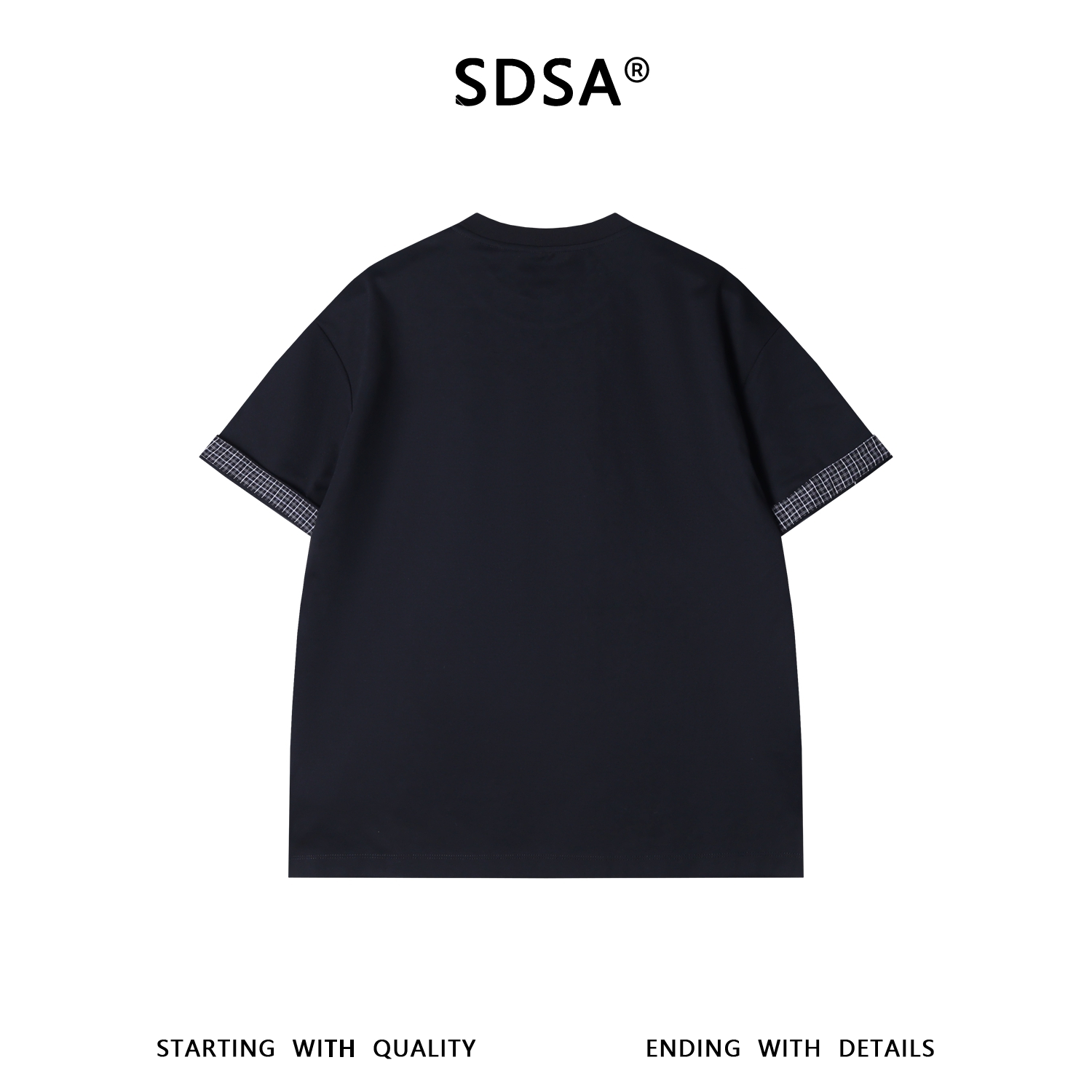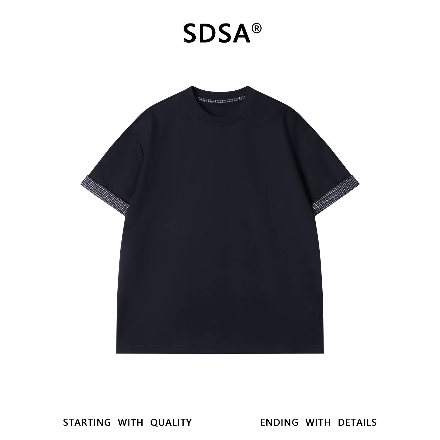 SDSA男装2026新款高贵轻奢简约韩系撞色小格子翻领短袖衬衫百搭
