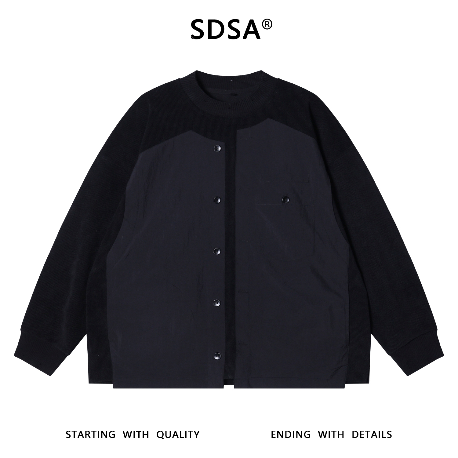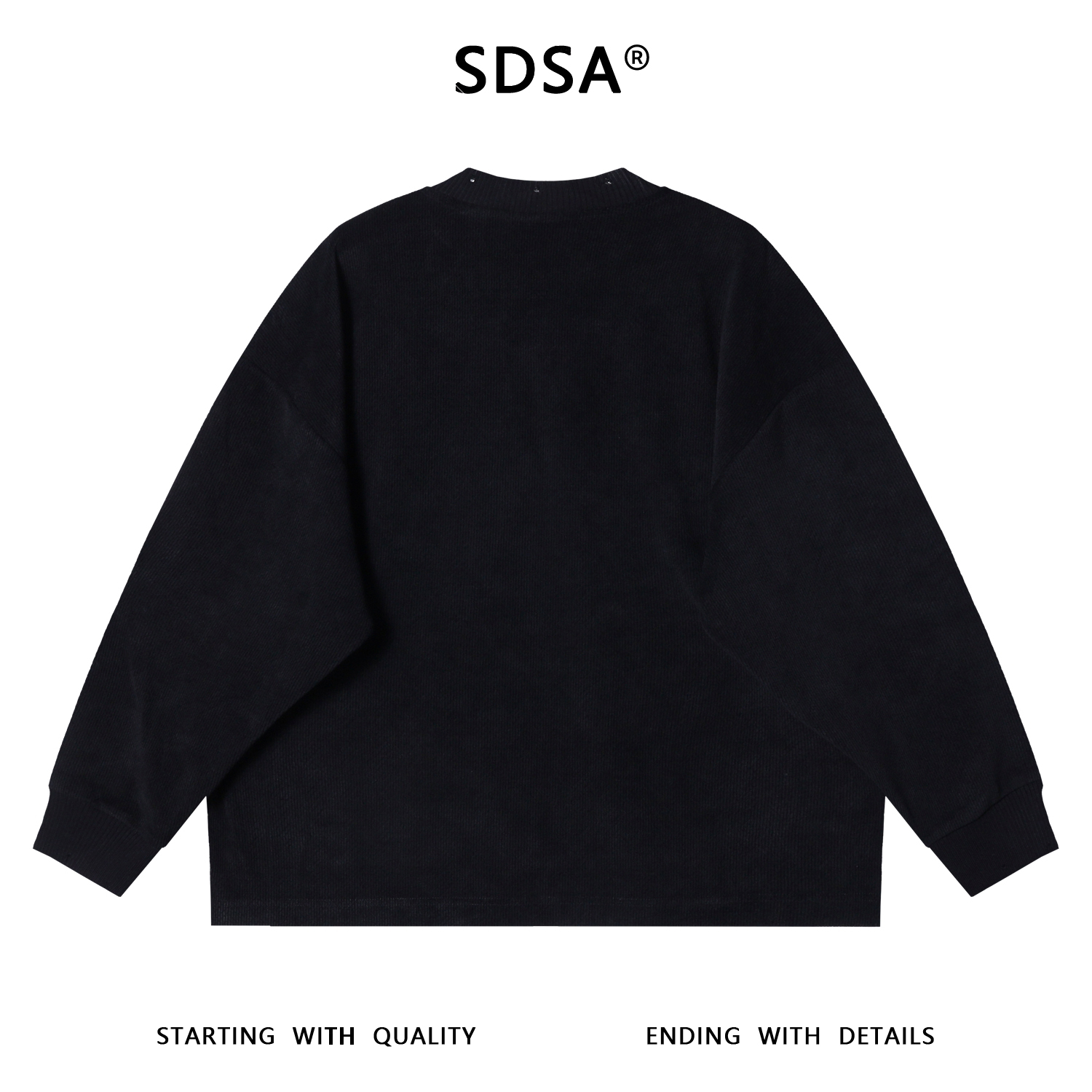55225SDSA秋冬新款痞帅男装韩版纯色拼接纽扣装饰磨破圆领针织卫衣百搭