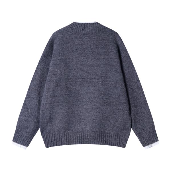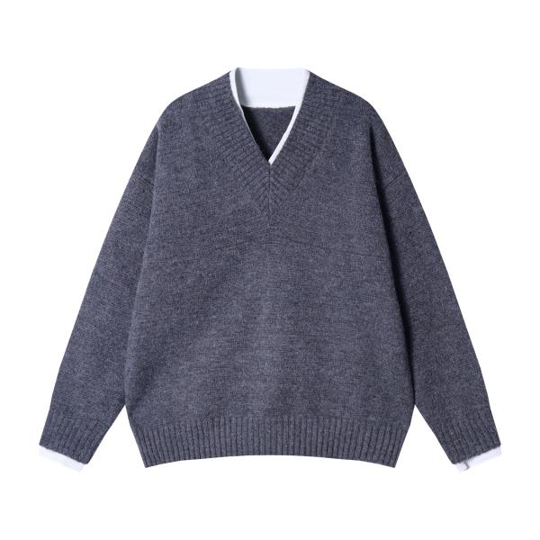 秋冬季新款时尚个性韩版撞色V领假两件针织毛衣复古百搭宽松
