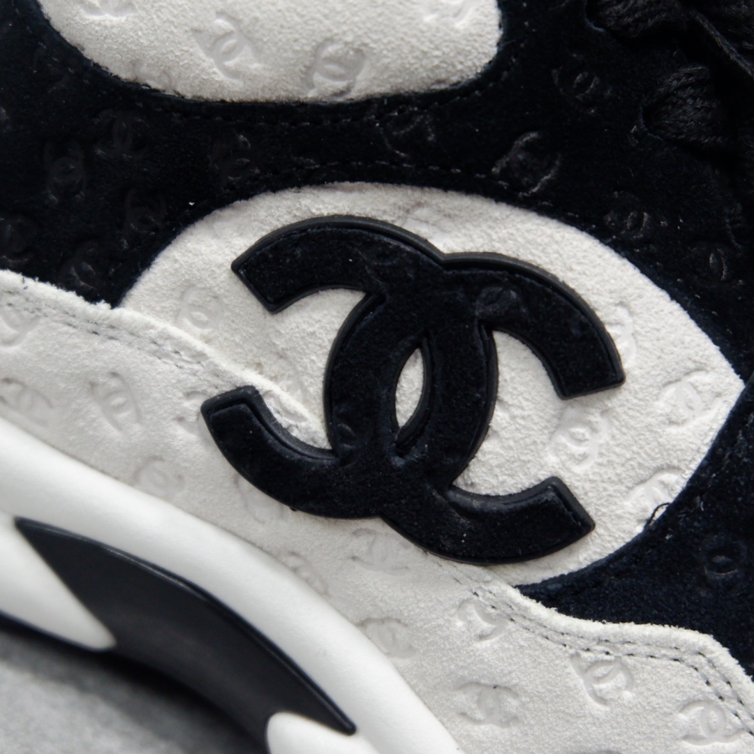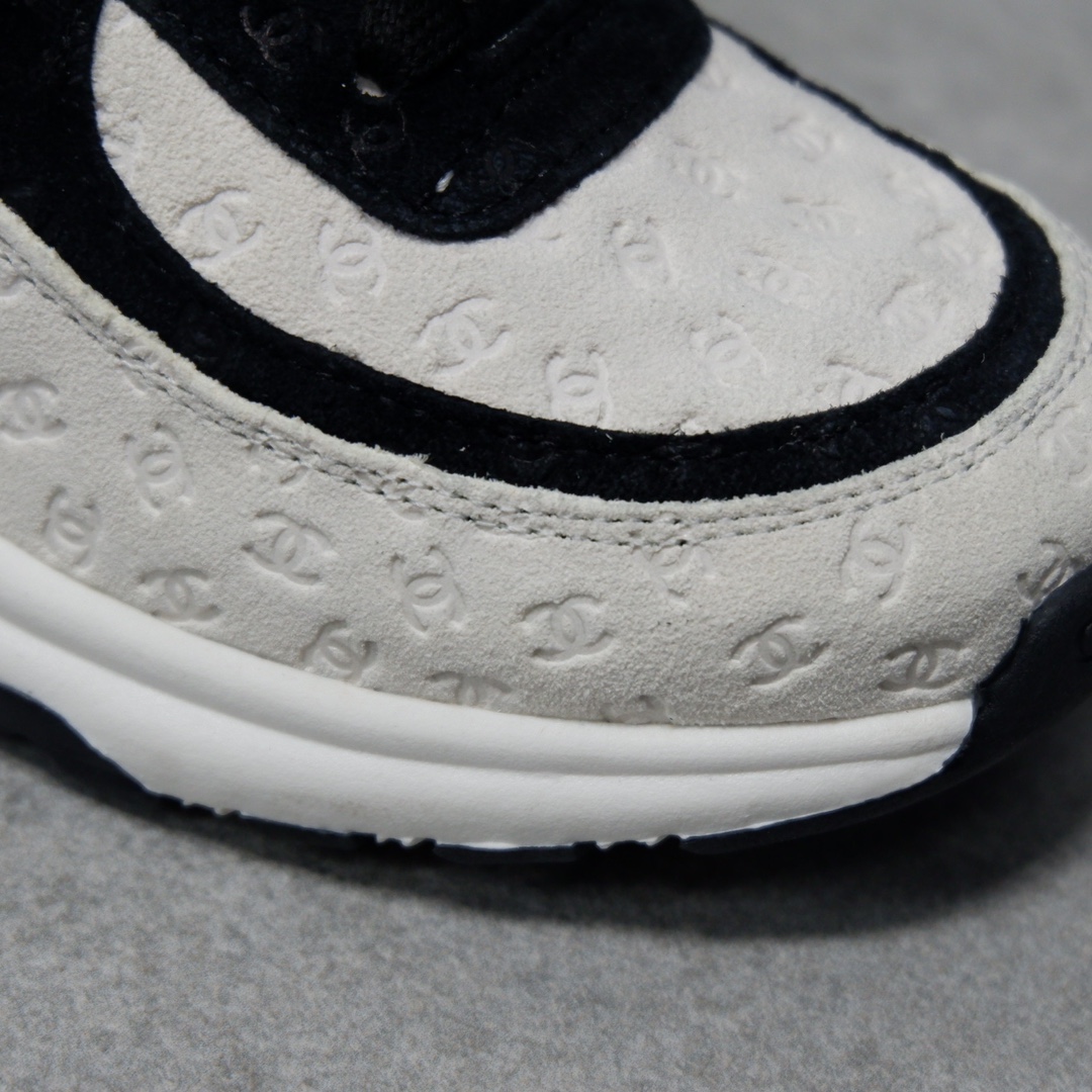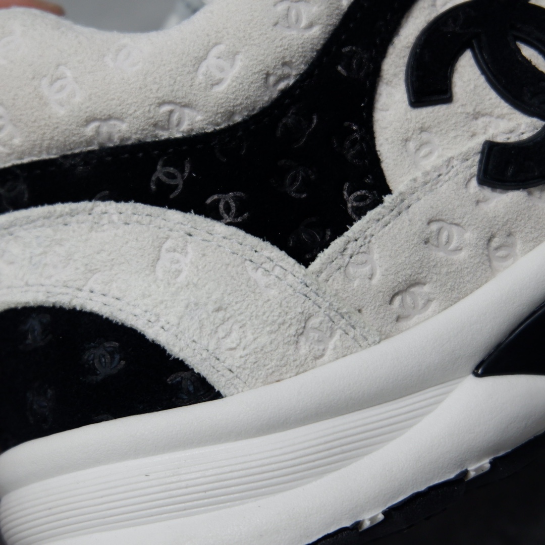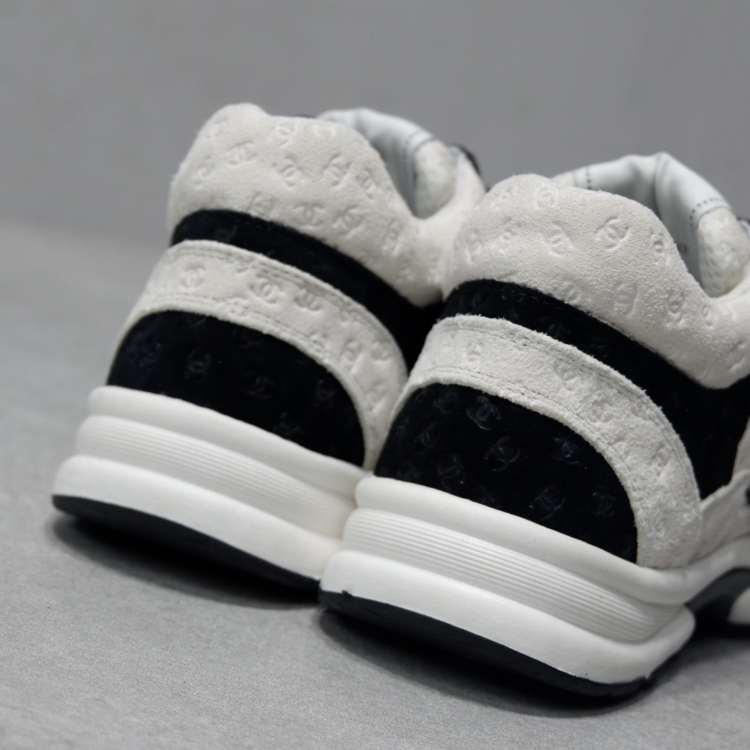 这双白色拼黑的暗纹双C logo上脚真的蛮灵的!鞋型比起熊猫鞋,感觉增高一些,更显腿长比起香的气垫鞋,这双更多了些女性的柔美 可以闭眼入吧!绝对不后悔系列 满Logo熊猫运动鞋来了 简称老爹鞋 真的很好看 小姐姐必备单品 此款运动鞋面料采用印花麂皮效果小牛皮 5D印花效果 满满的高级感!