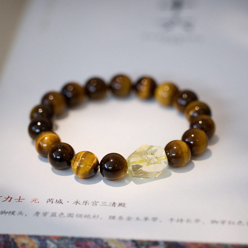 【普陀山】流年秘境天然10MM大颗虎眼石手串 男女通用 随形黄水晶手链