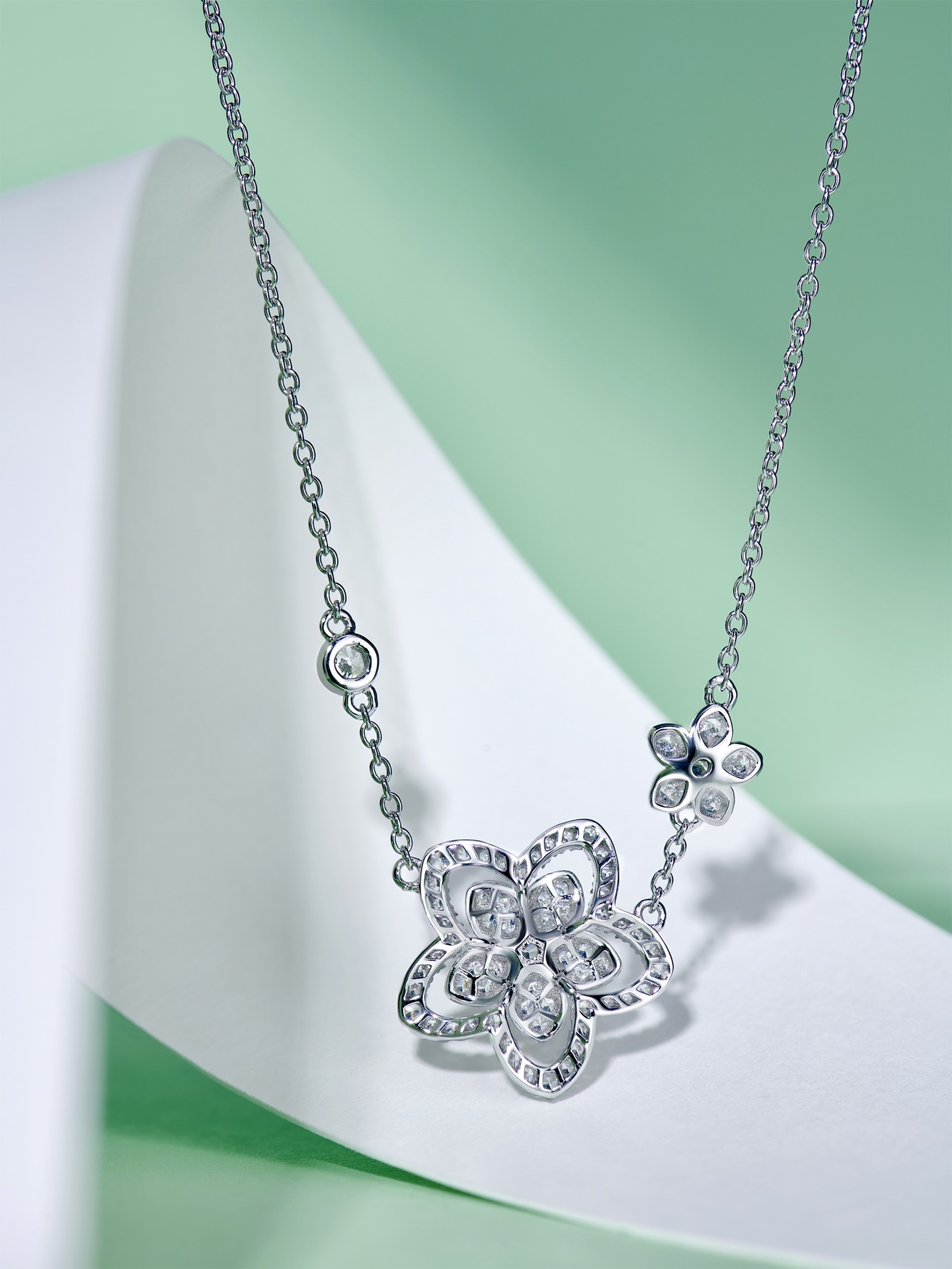 镀金材质,精工手镶,镶石排列整齐美观,链条全长45cm,可以自由拉动调节长度!