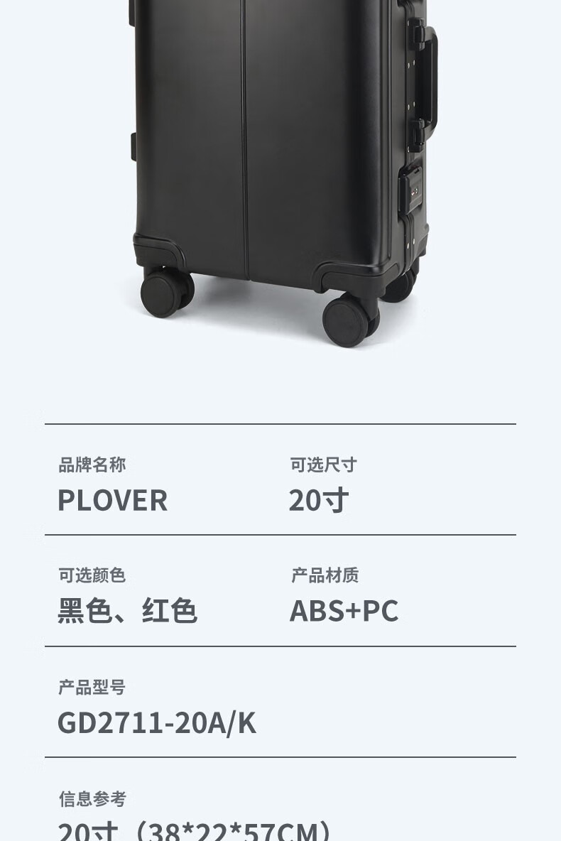 PLOVERplover登机出行行李箱旅行大学生开学季用品GD2711-20A(20K) GD2711-20A 20寸