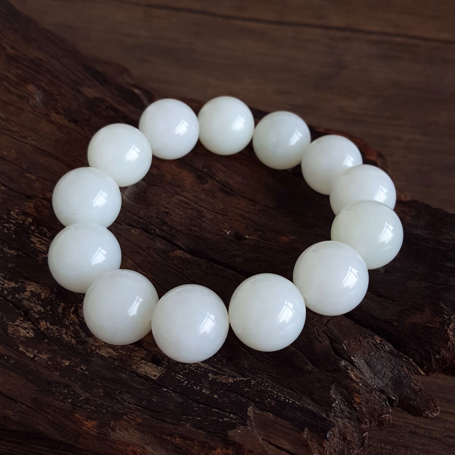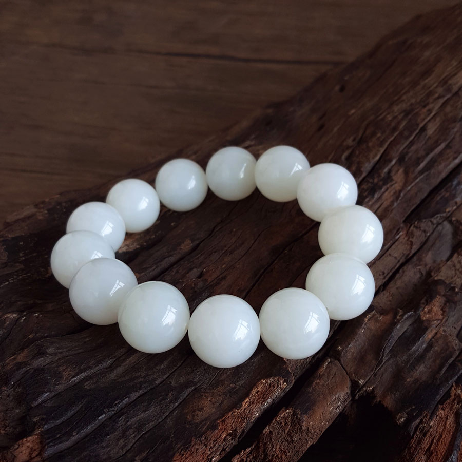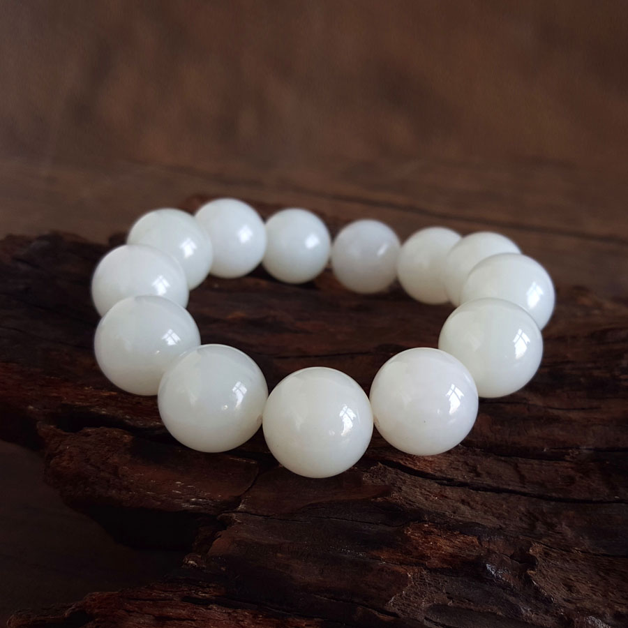 名称 | 天然精品无杂裂约18MM俄料一级白和田玉圆珠手串 |