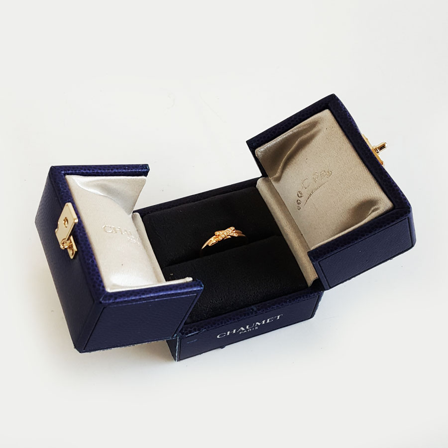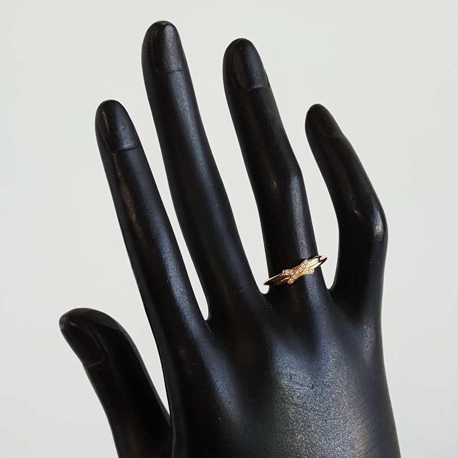 【95新】CHAUMET尚美Jeux de Liens系列玫瑰金镶钻缘系一生系列欢缘X型戒指51号女士120426TJ11