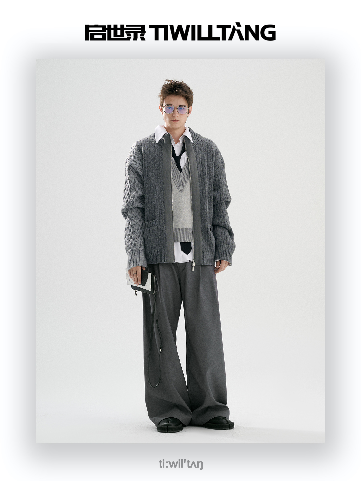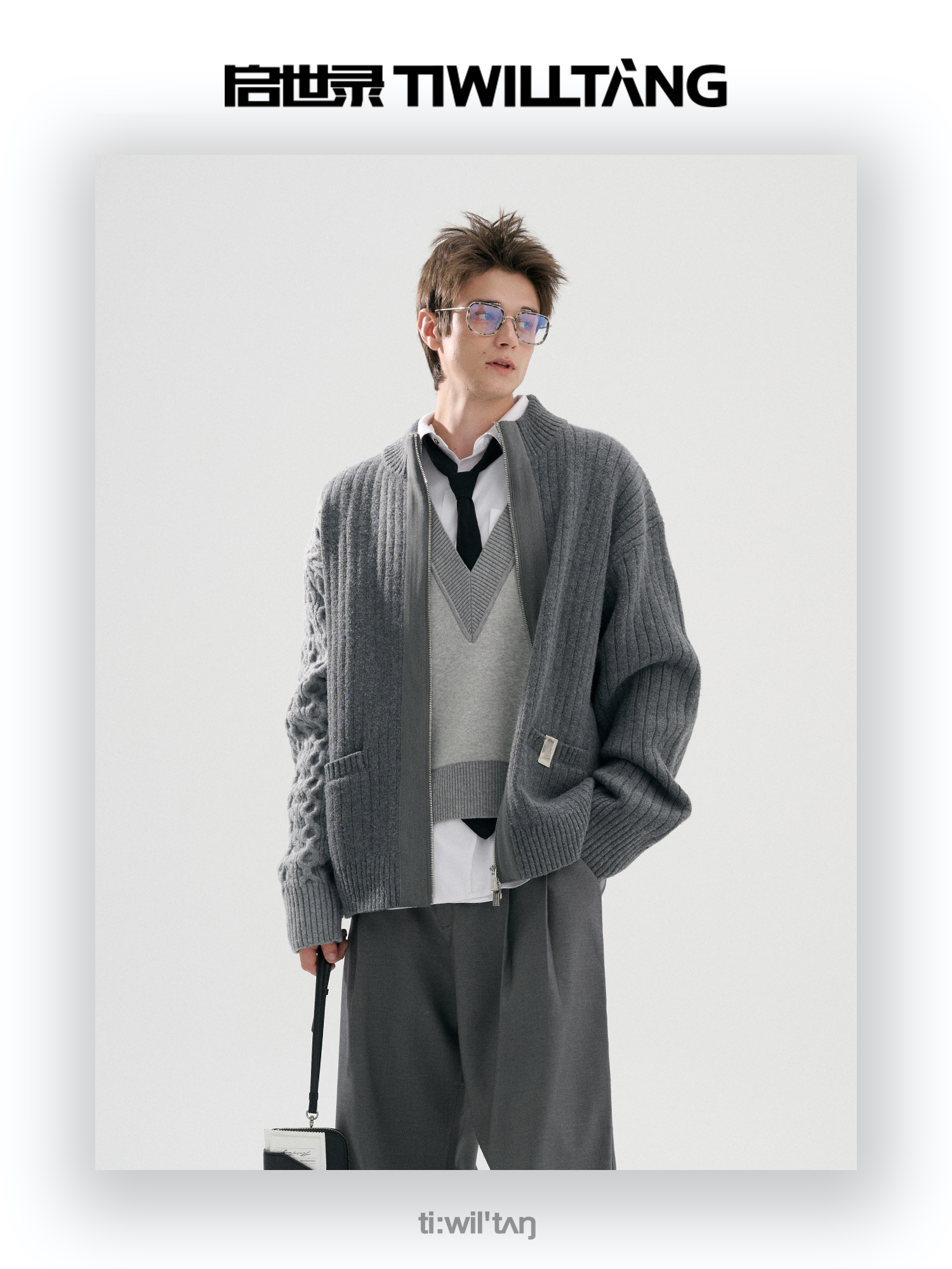 启世录TIWILLTANG“钰珏净谧”航迹翎线领间昭熙条纹解构撞色开衫