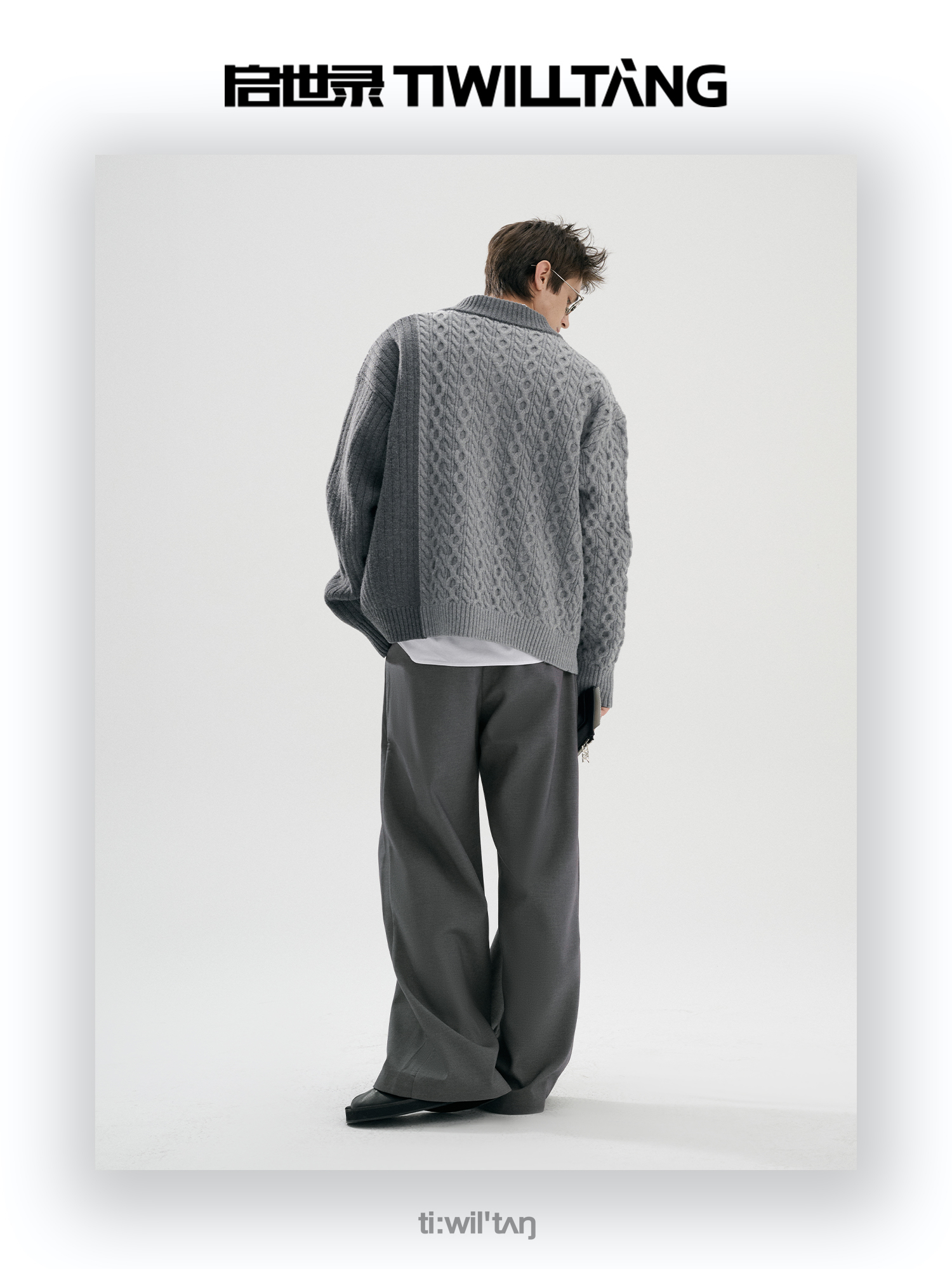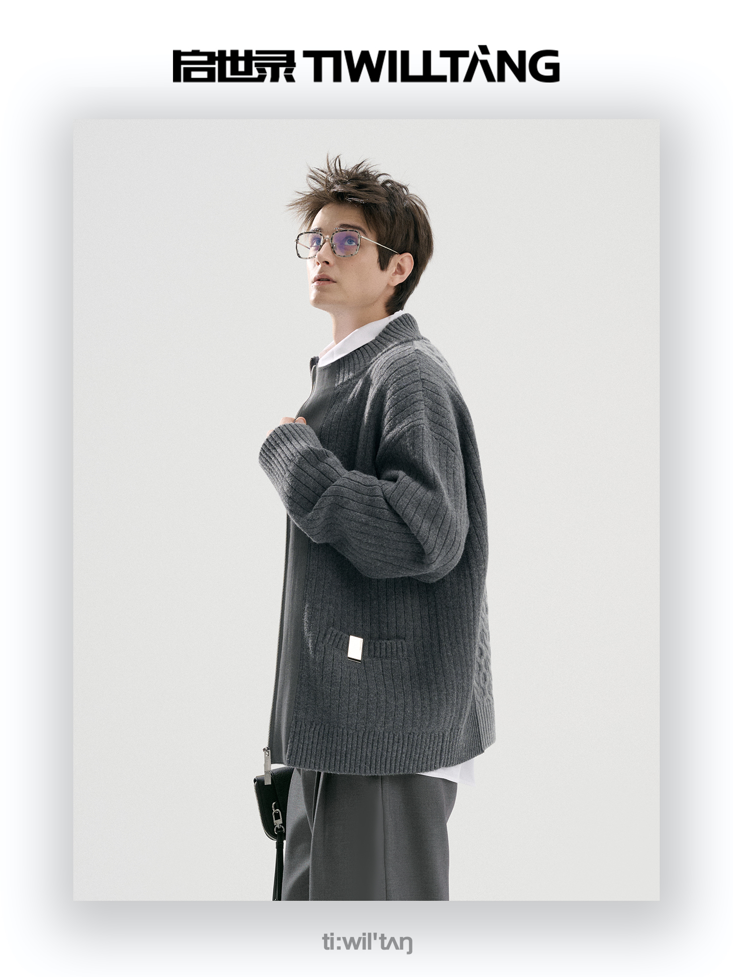 启世录TIWILLTANG“锓烛灵构”定制皮标烫银高领破坏毛衣