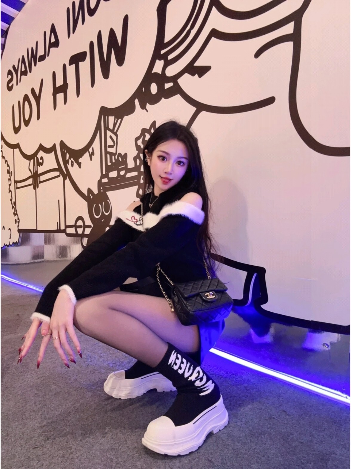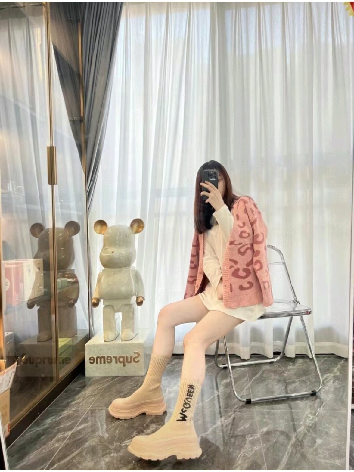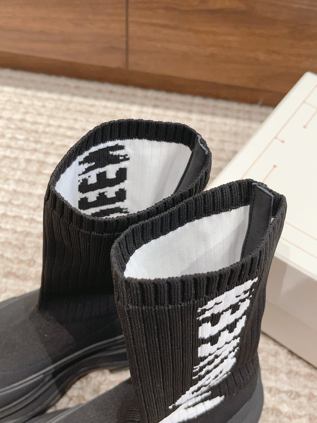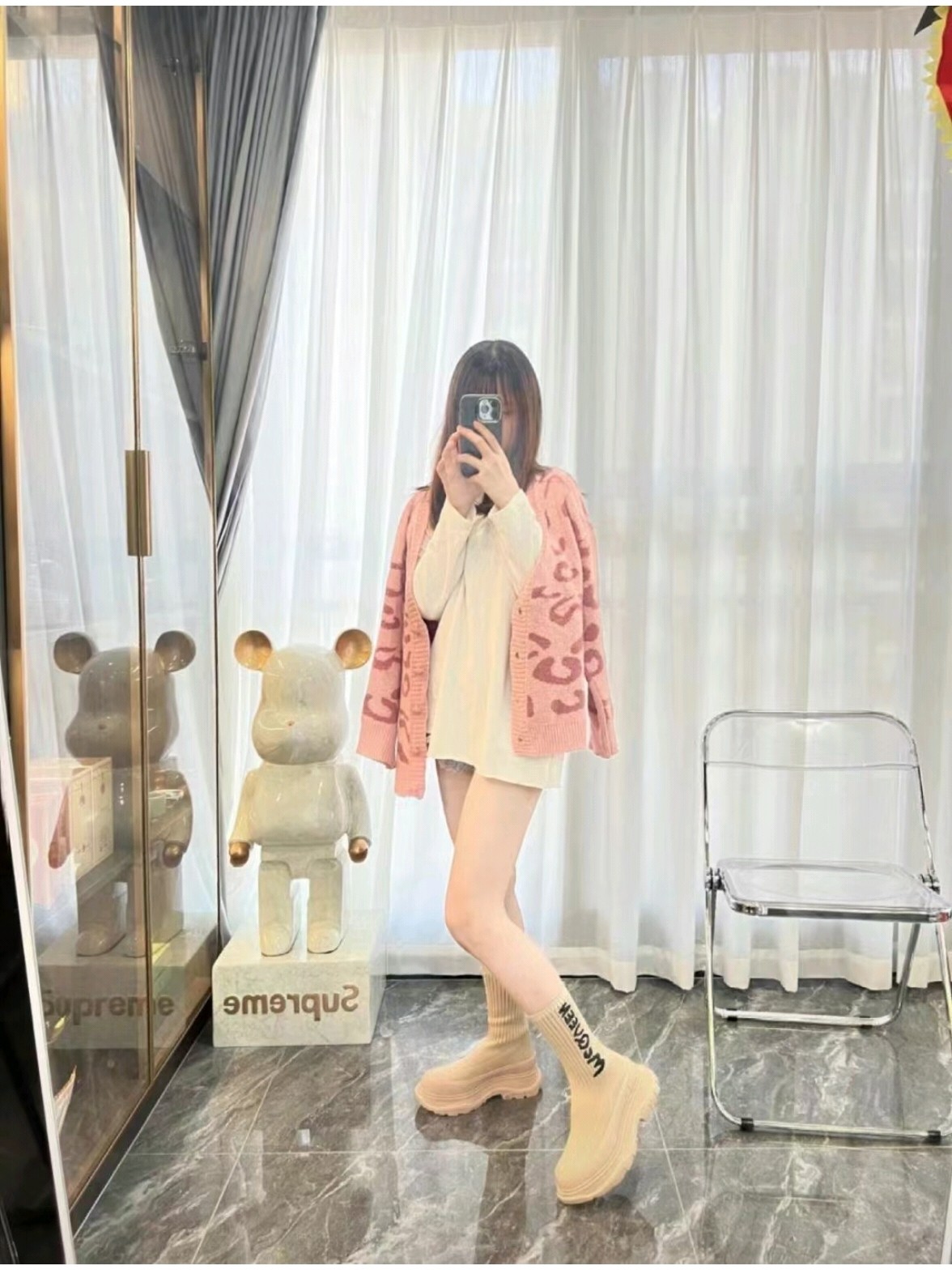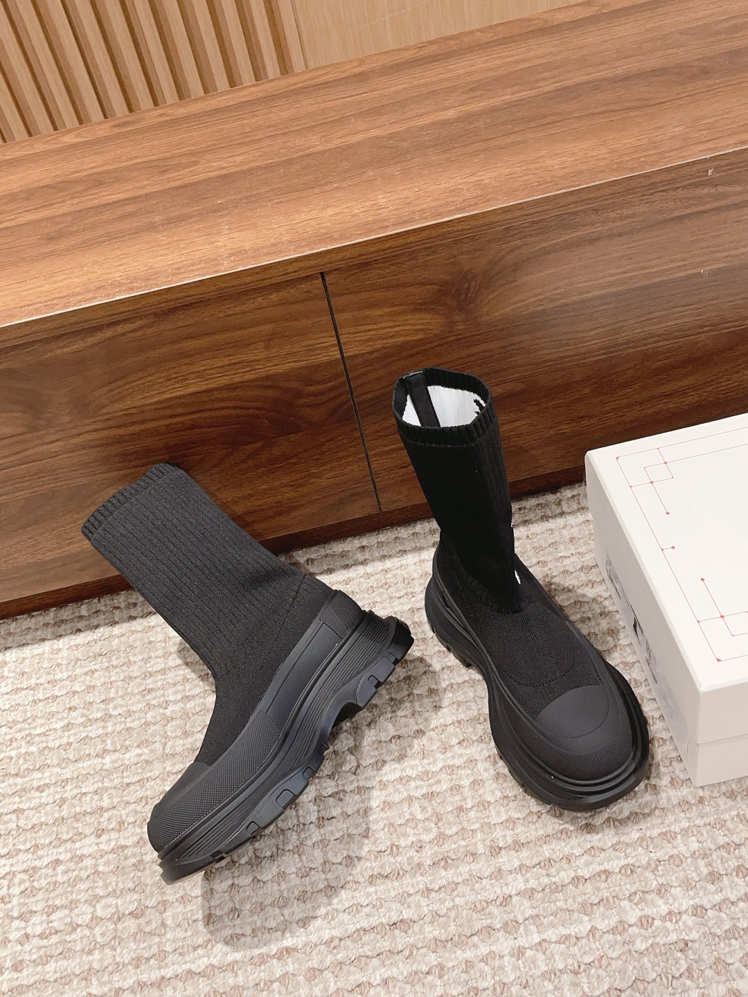 麦昆#涂鸦针织袜子靴 开简直不要太帅气了时尚人士必须不容错过 !有增高效果 增高5cm 小个子的福音 穿上它 瞬间空气清新了许多!McQueen Graffiti针织Tread Slick靴 最新款飞织袜筒靴 早秋麦昆最新款飞织袜筒靴。鞋子独特的个性设计,增高瘦腿,瘦腿神款,上脚超有风范#麦昆织袜筒靴 麦昆新款袜子靴喜欢时尚潮流喜欢酷酷的搭配 可以看过来 必备神器哟增高酷气十足必须拥有的靴子,罗纹针织袜式靴面,缀以白色McQueen涂鸦标志,配TPU+橡胶胎纹厚底。靴子饰有纹理橡胶绑带和同色系Alexander McQueen标志。圆头靴廓形,TPU橡胶鞋头细节