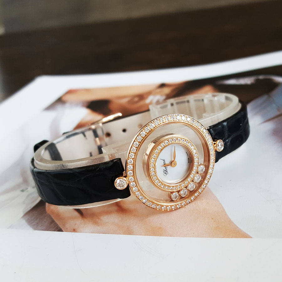 【95新】CHOPARD 萧邦203957-5208石英机芯活动钻26MM(女款)HAPPY DIAMONDS系列18K玫瑰金;镶嵌原厂钻石表圈 251225NJS24