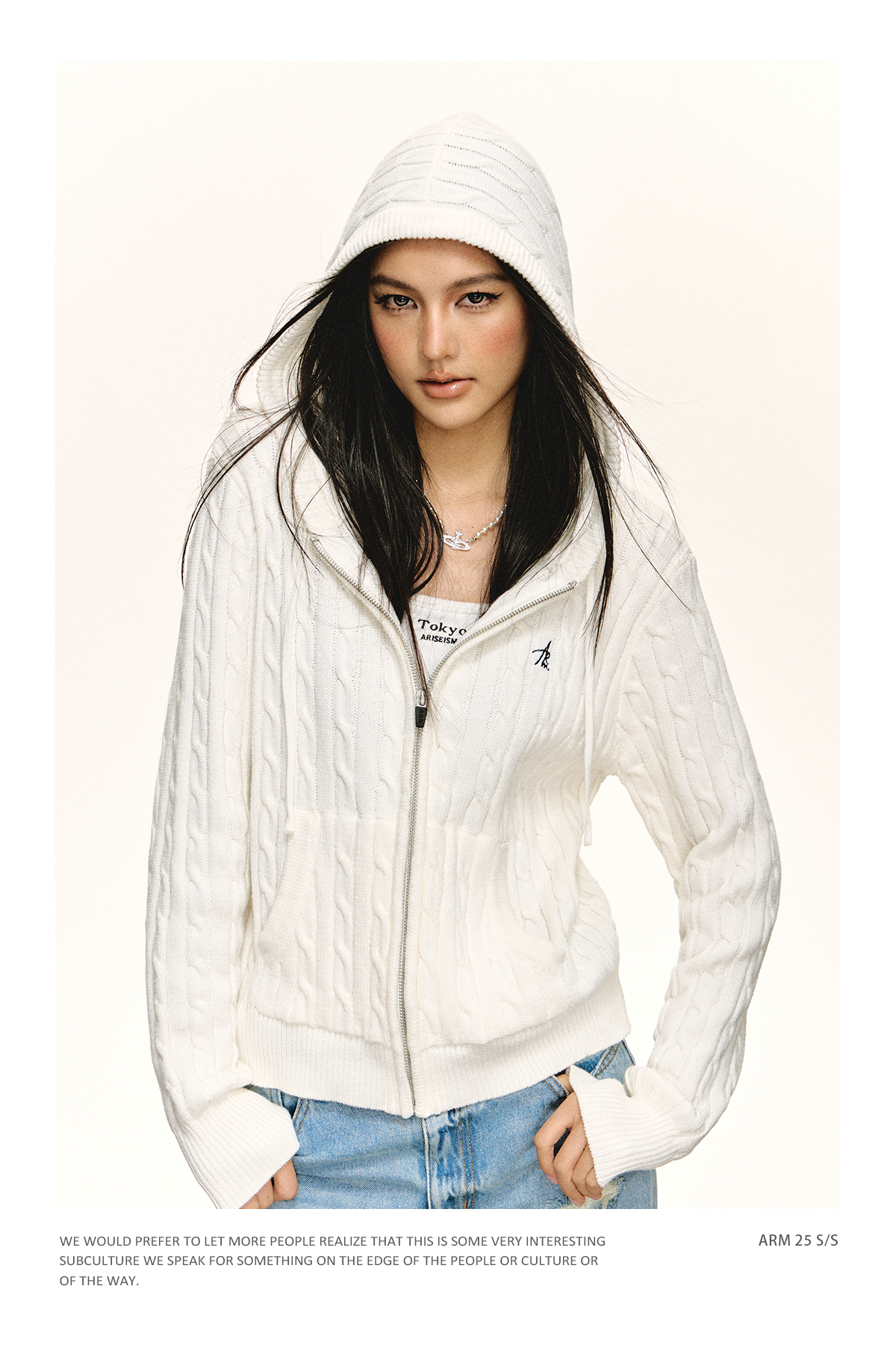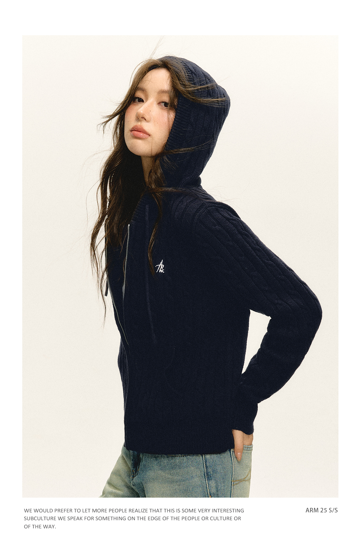 Ariseism 美式复古连帽针织拉链开衫女2025春秋新款上衣毛衣外套