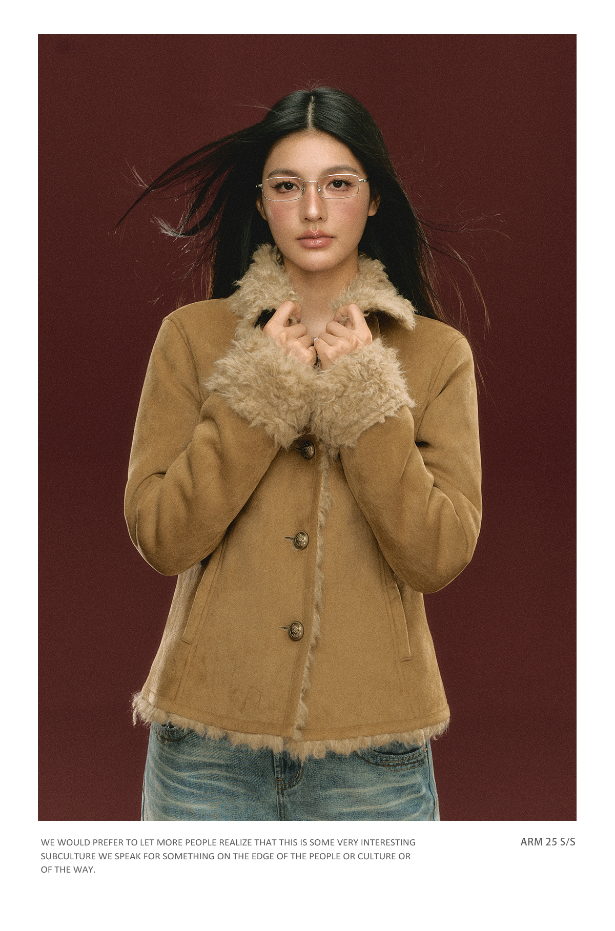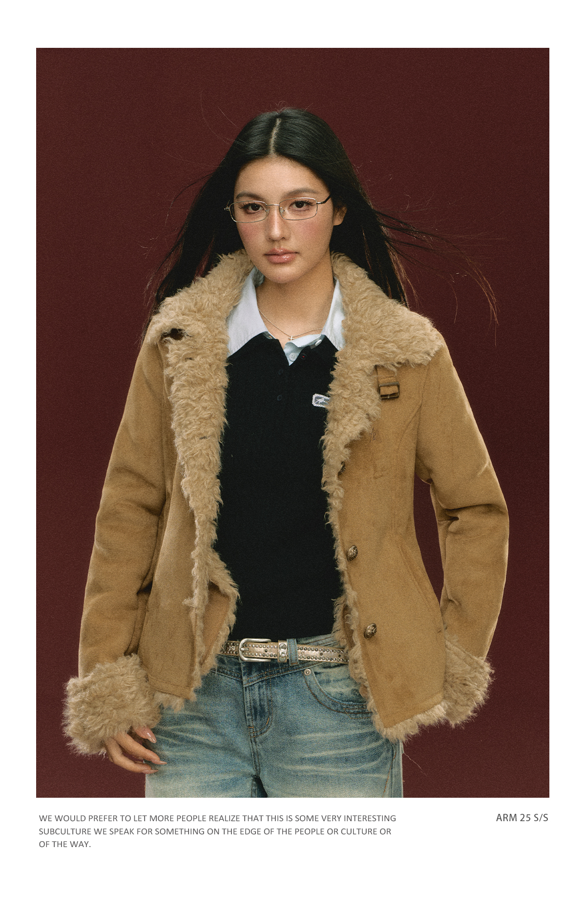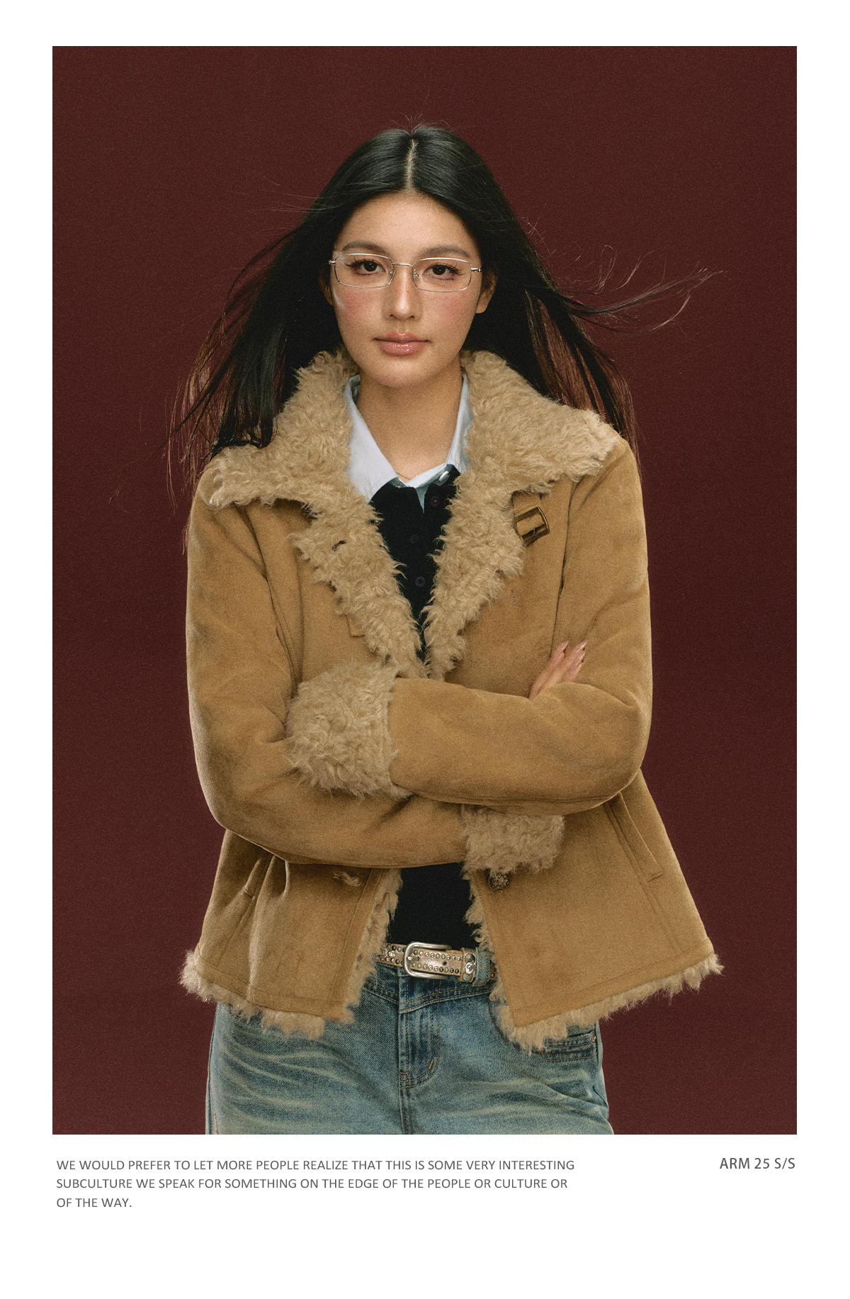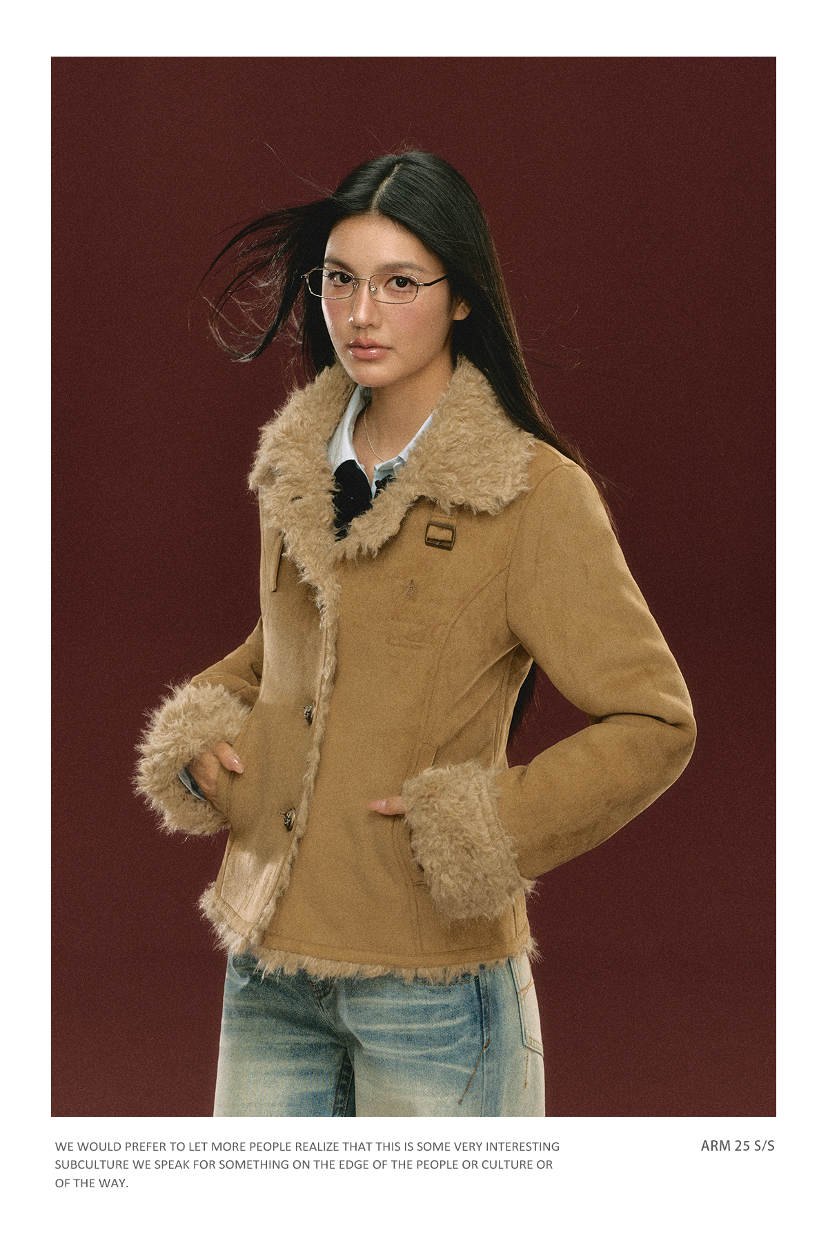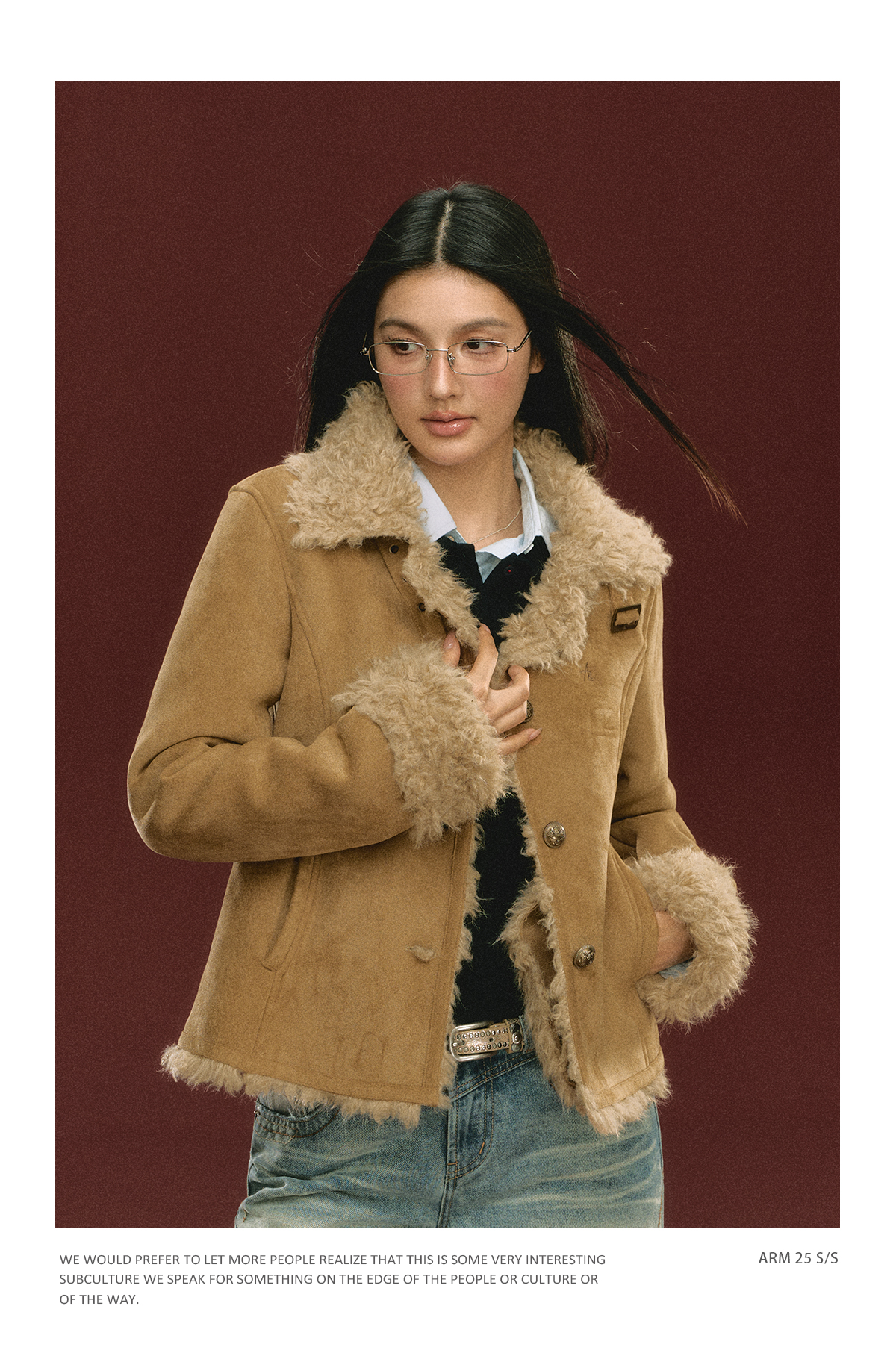 Ariseism 美式复古设计感皮毛一体短外套女秋冬新款