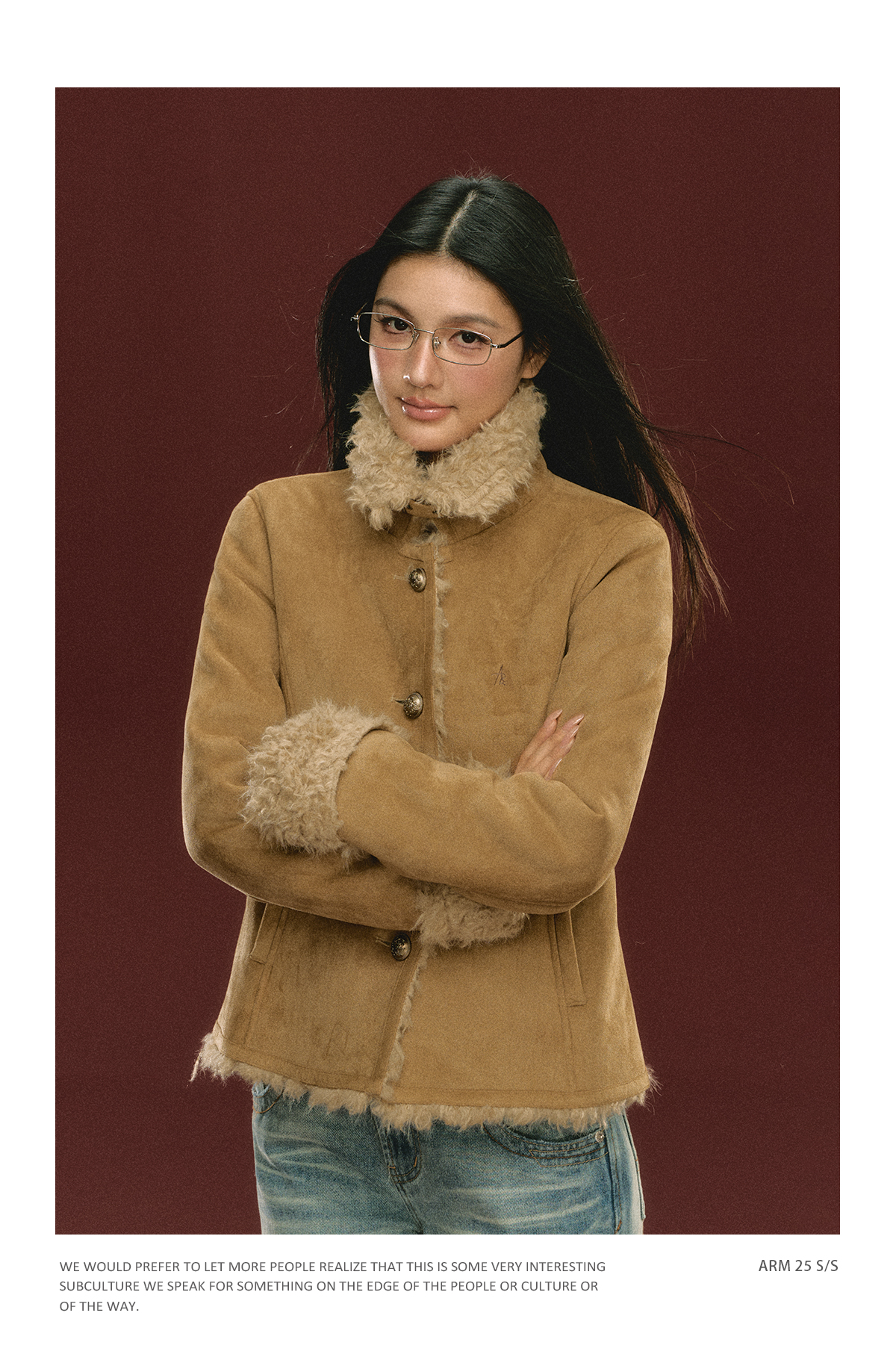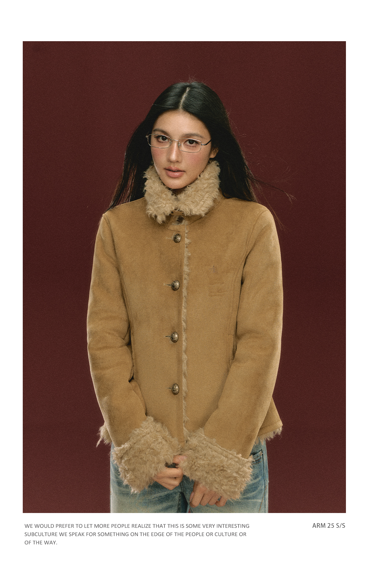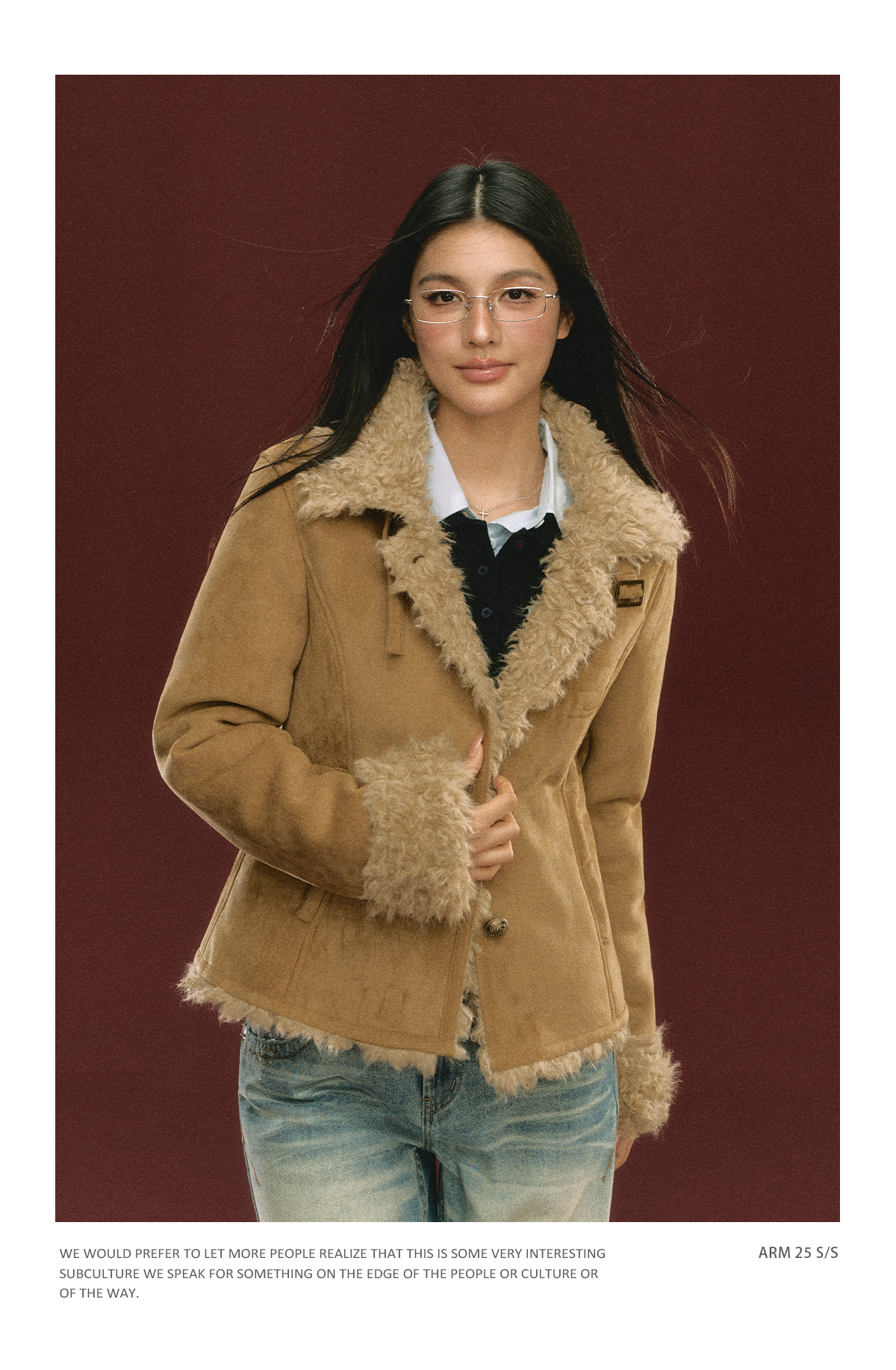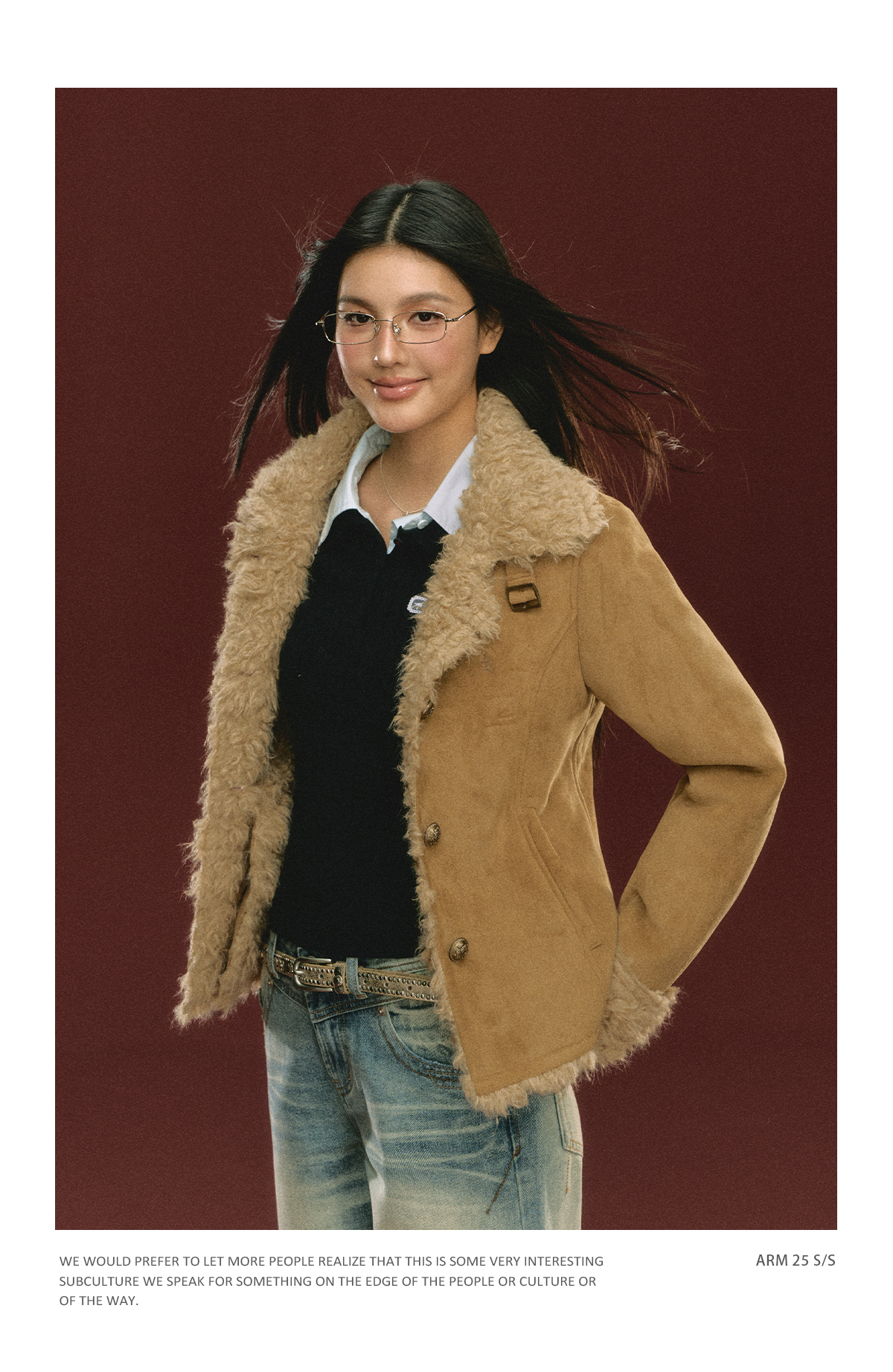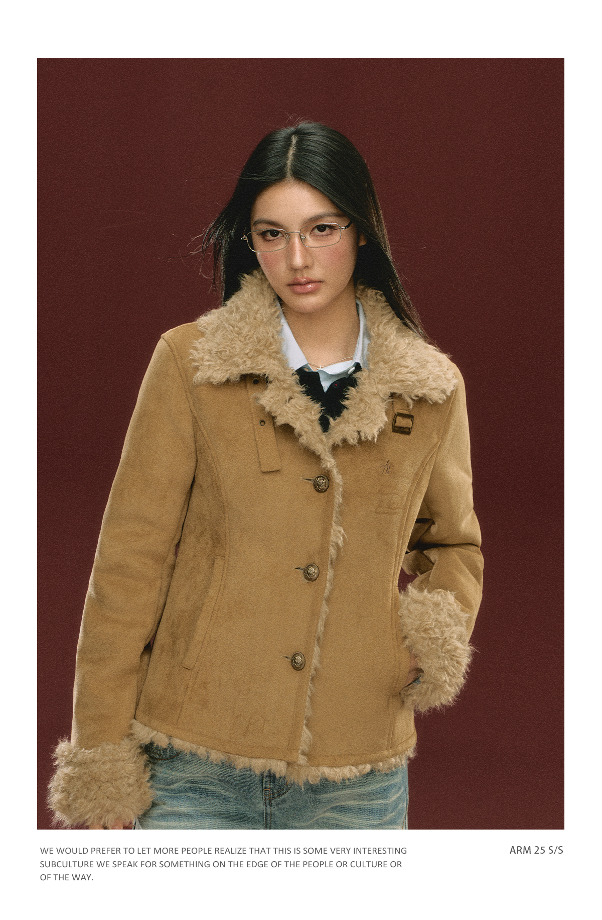 Ariseism 美式复古设计感皮毛一体短外套女秋冬新款