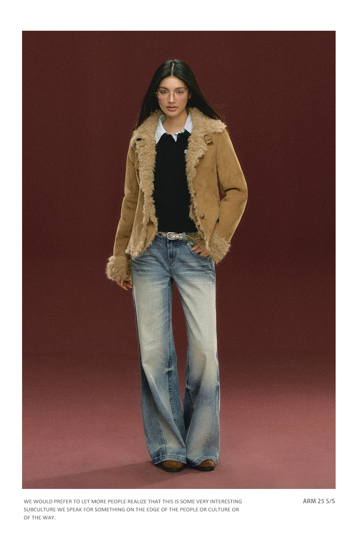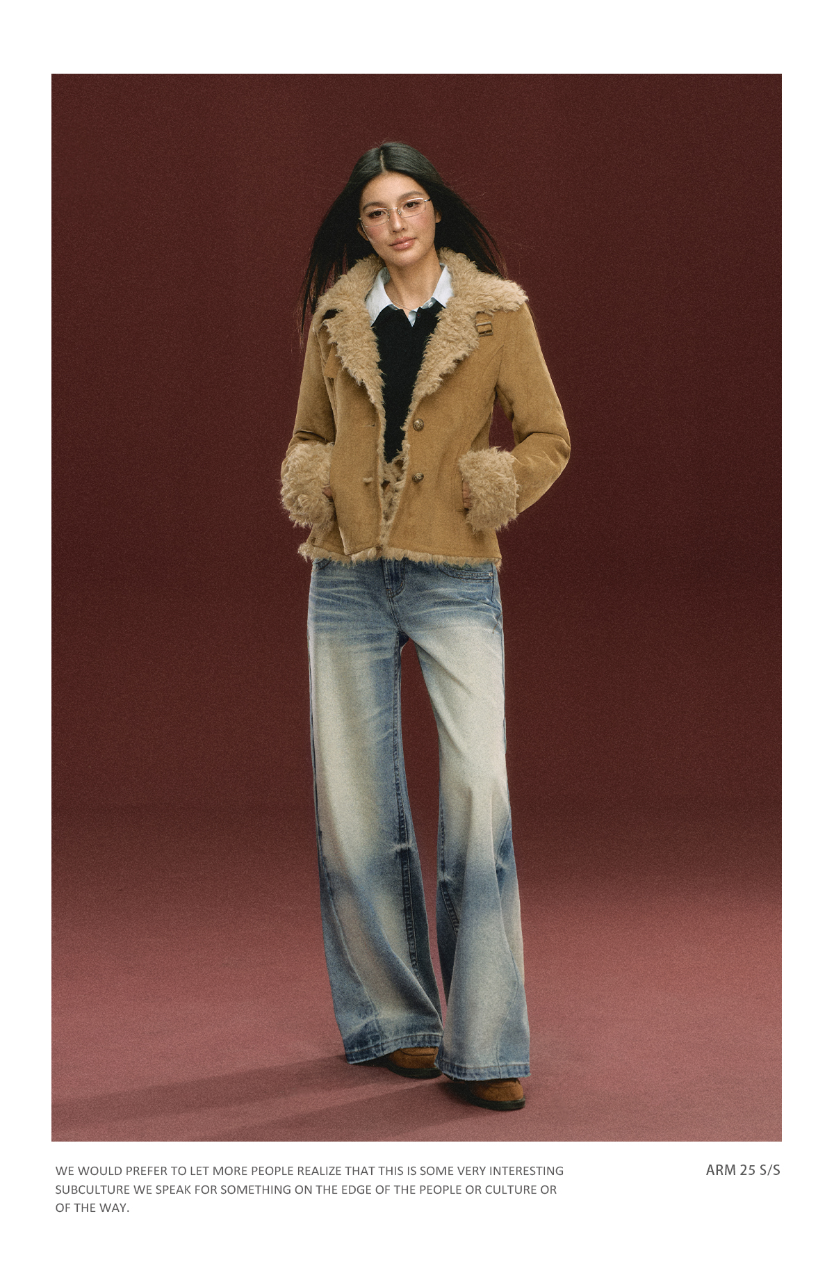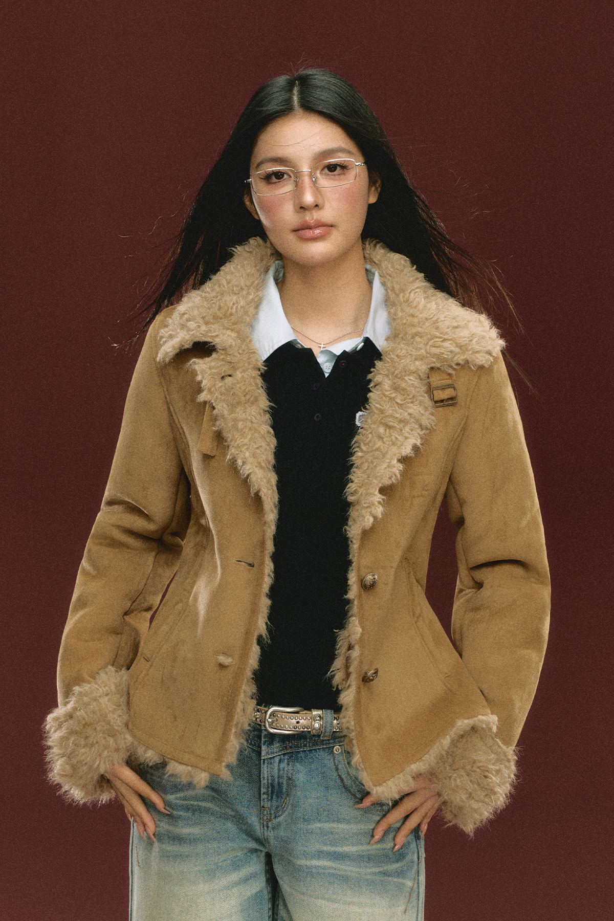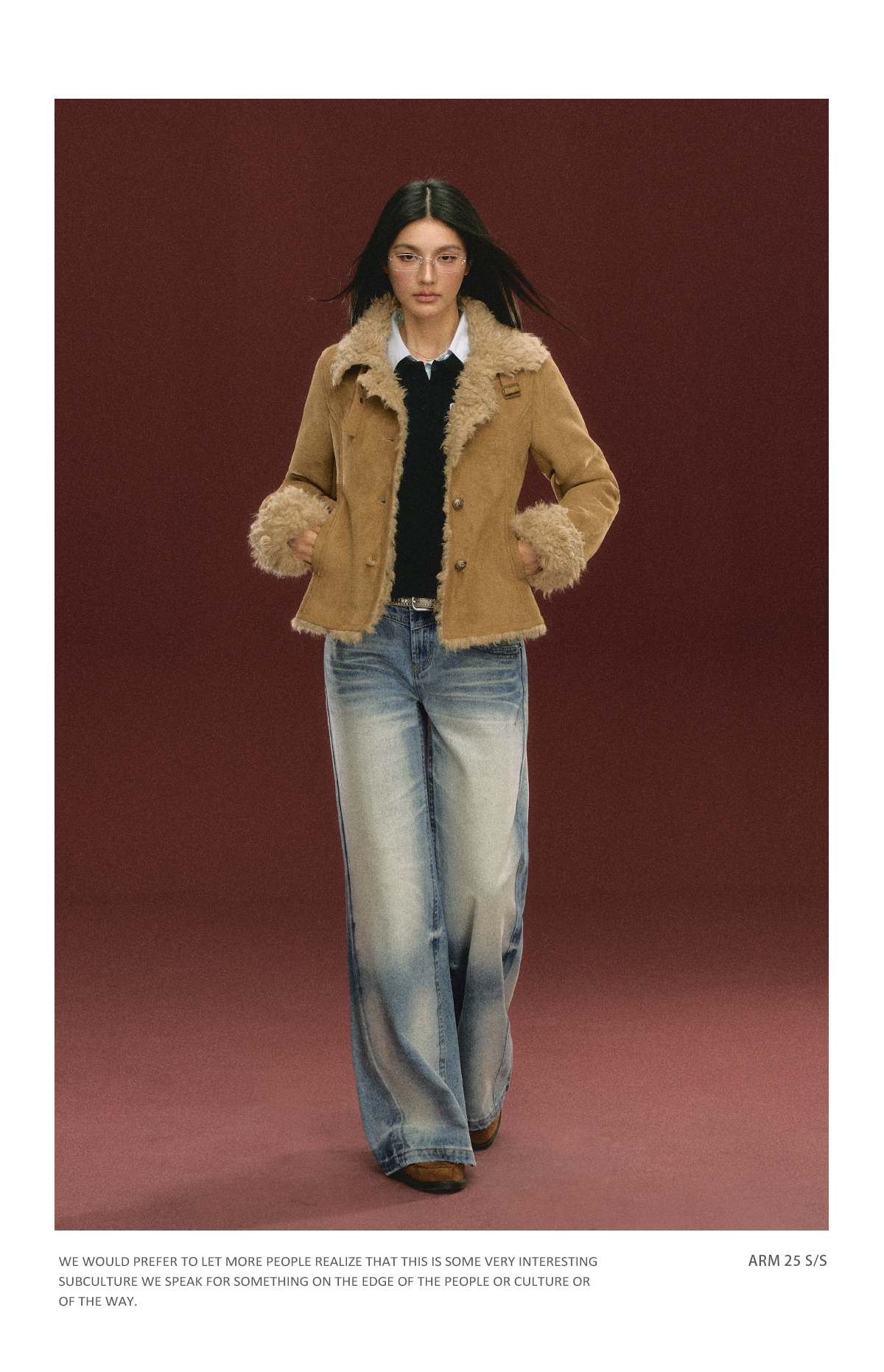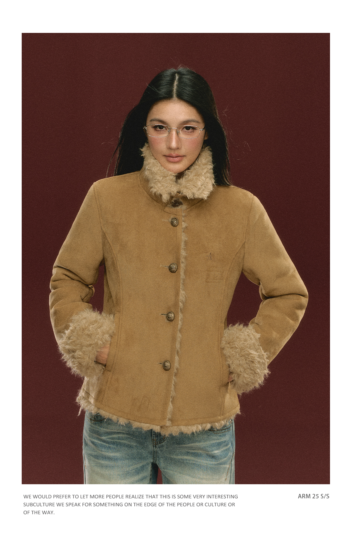 Ariseism 美式复古设计感皮毛一体短外套女秋冬新款