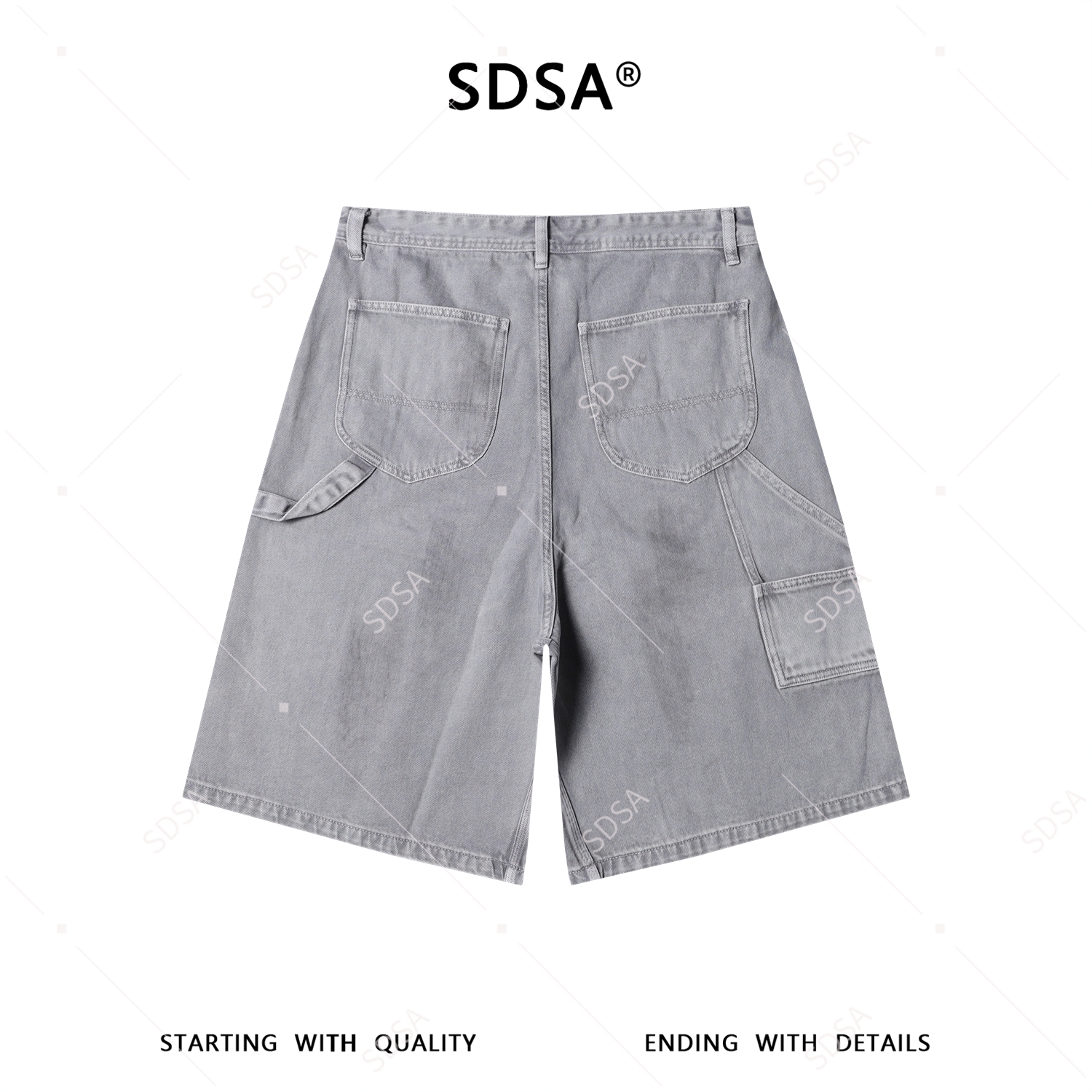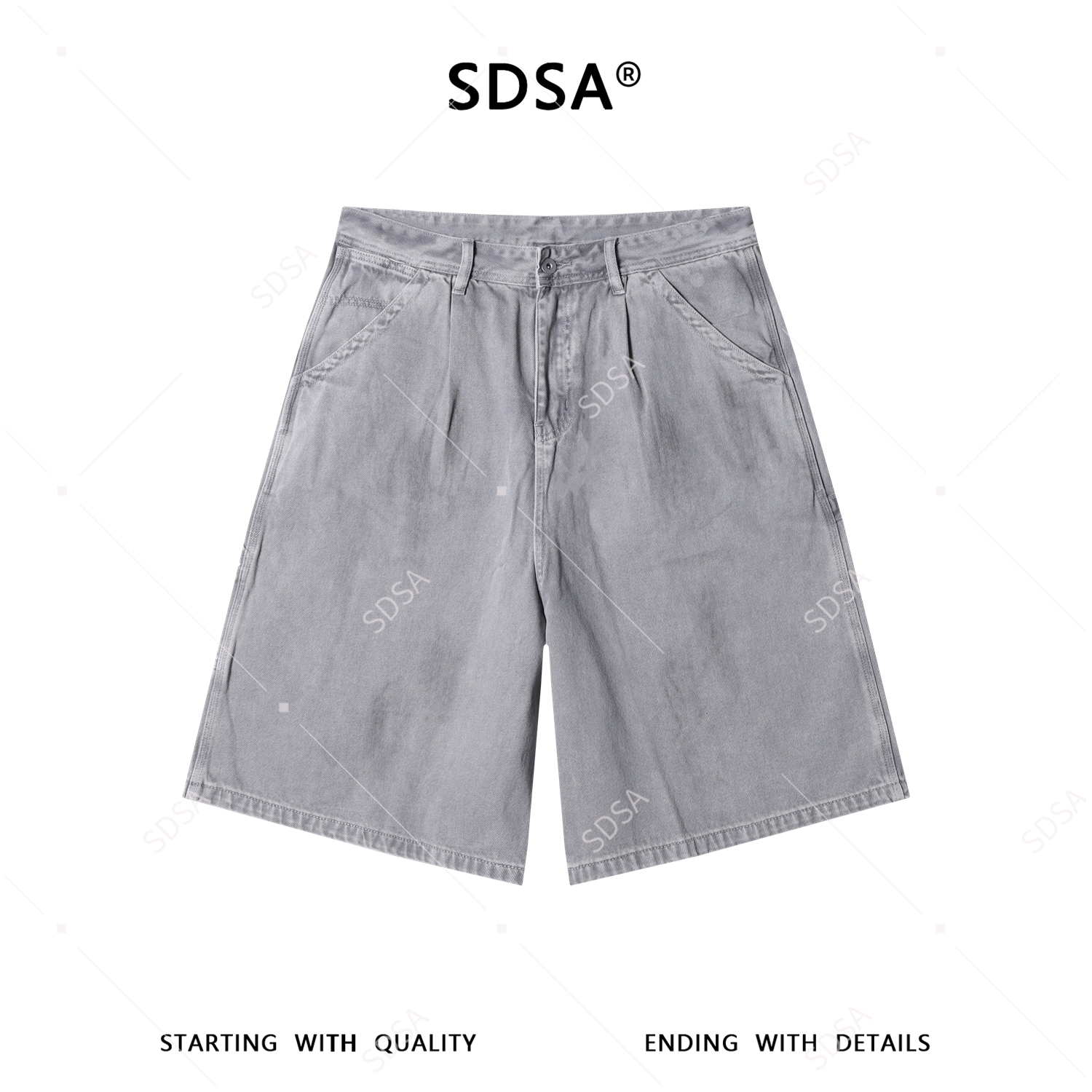 SDSA男装2026新款高贵轻奢简约复古设计感褶皱阔腿牛仔短裤百搭