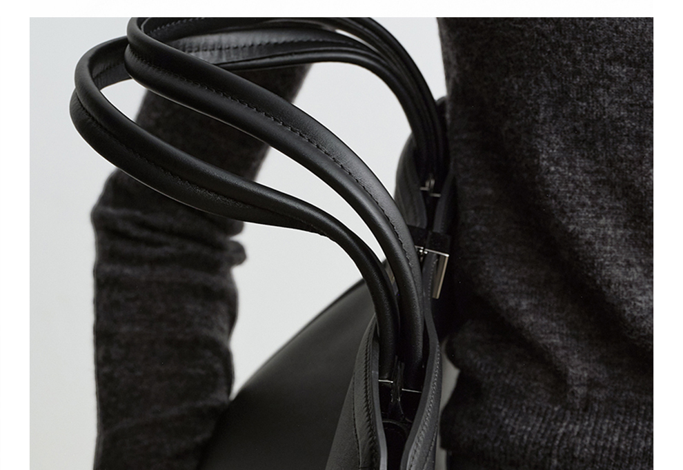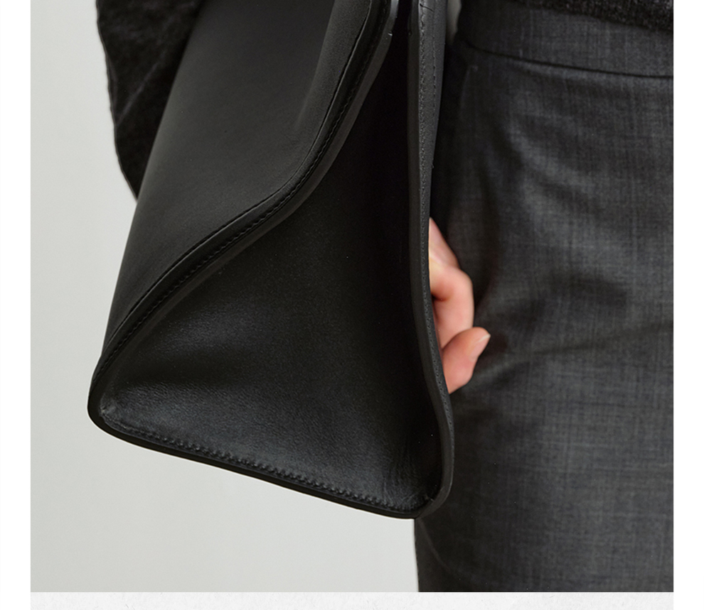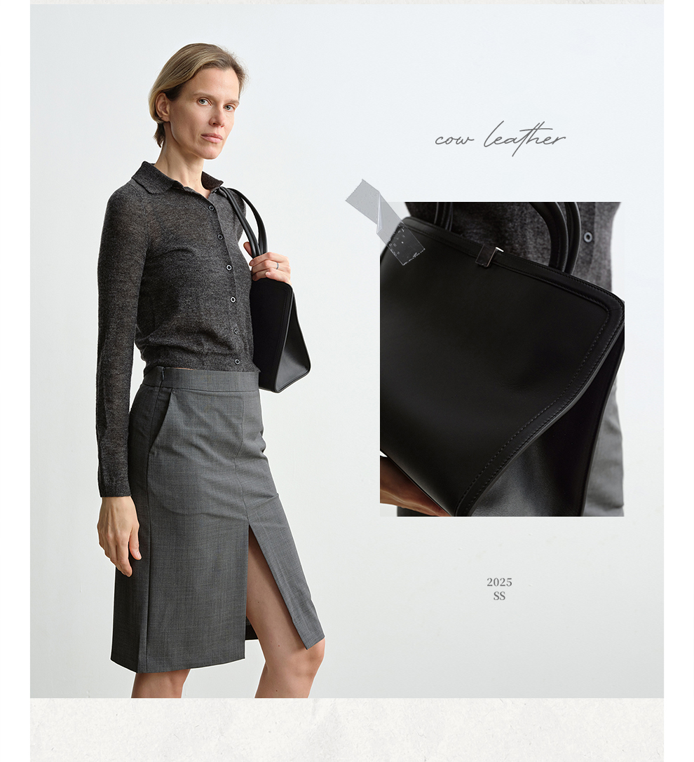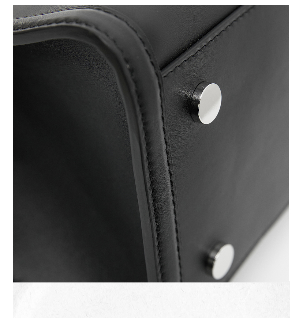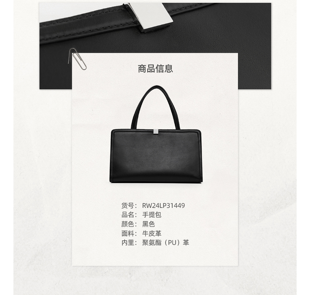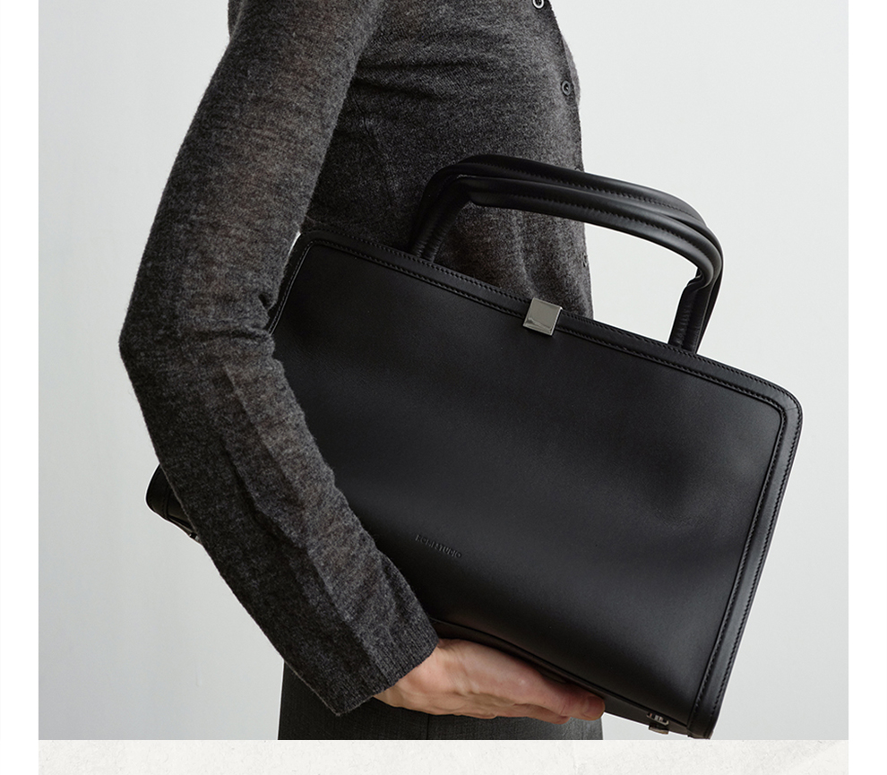 ROMI STUDIO 牛皮革黑色极简大容量金属扣手提托特包 RW24LP31449
