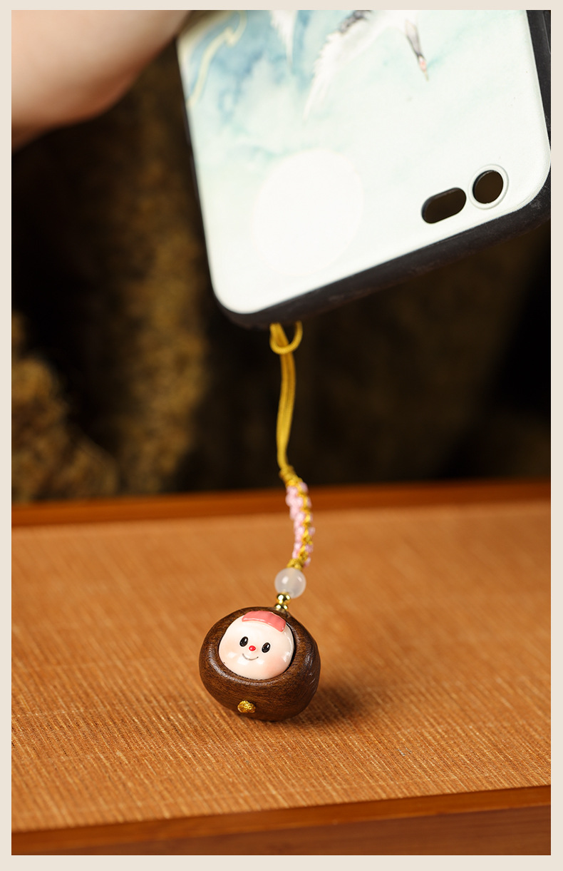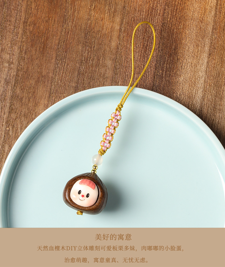 紫檀木板栗多妹手机吊坠