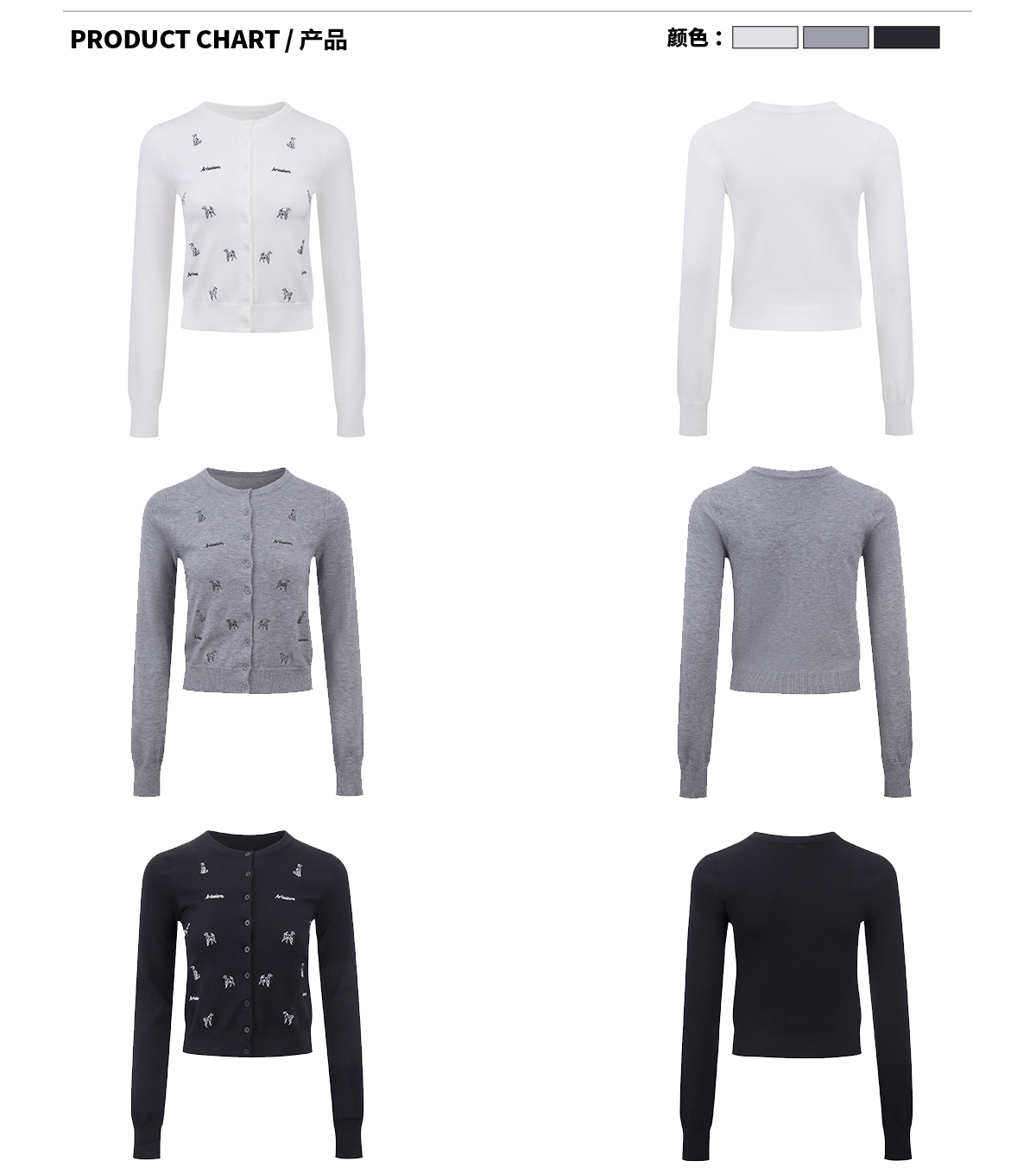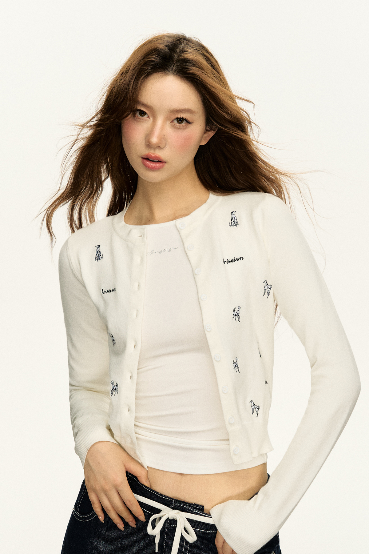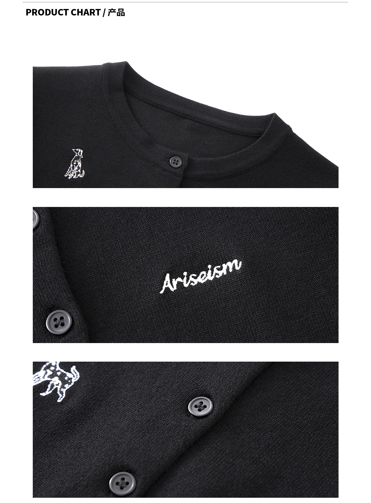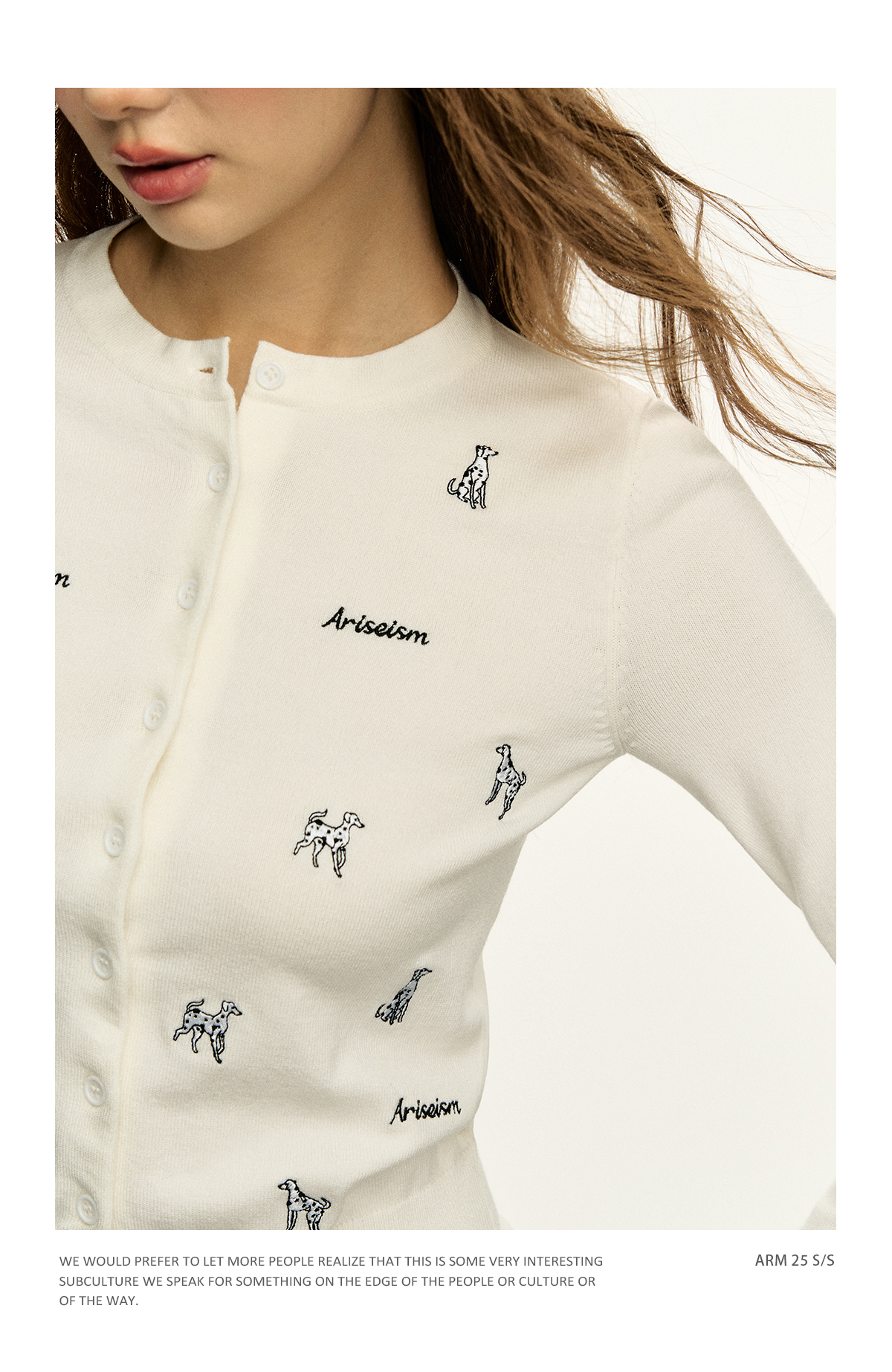 Ariseism刺绣小狗短款毛衣针织开衫女春季新款修身内搭上衣打底衫