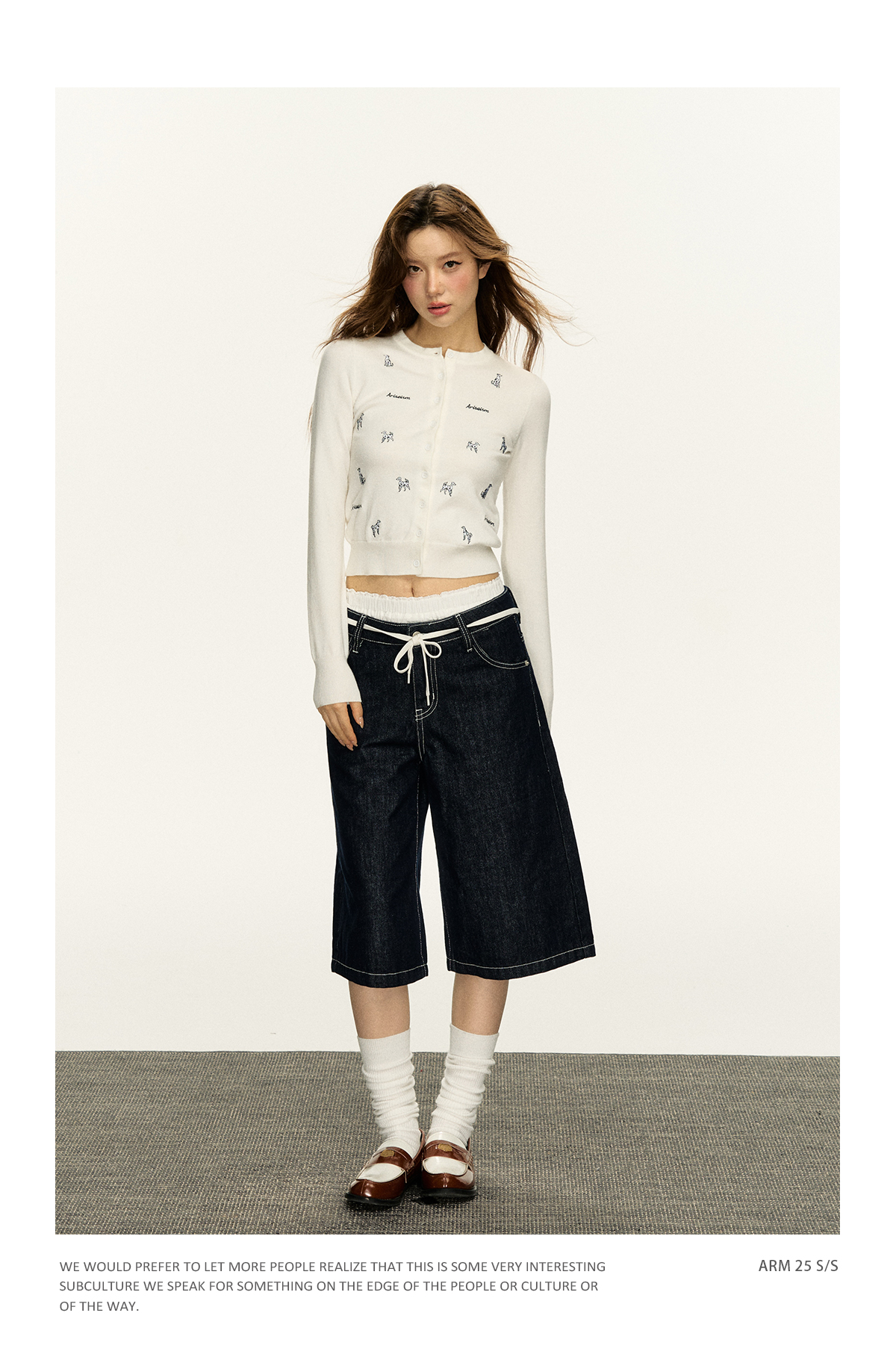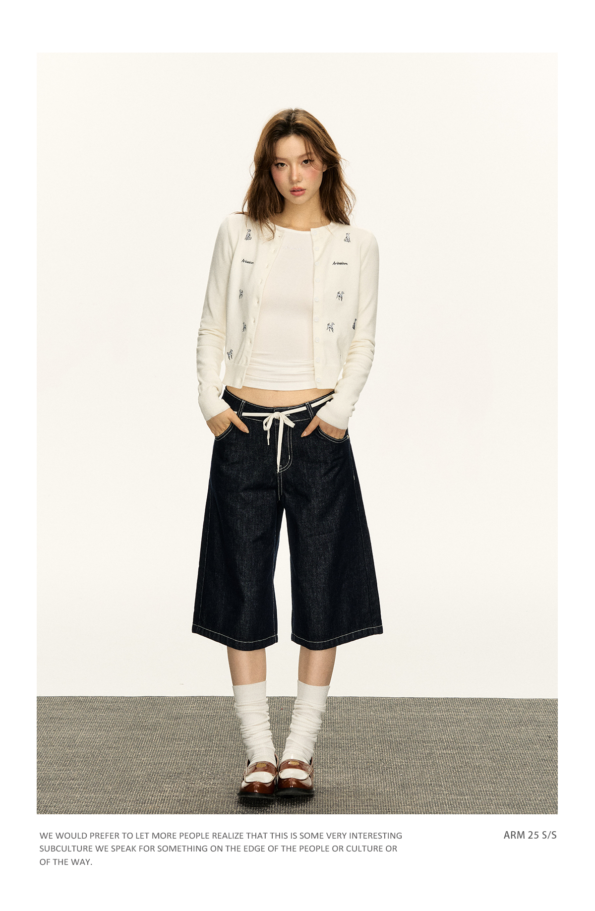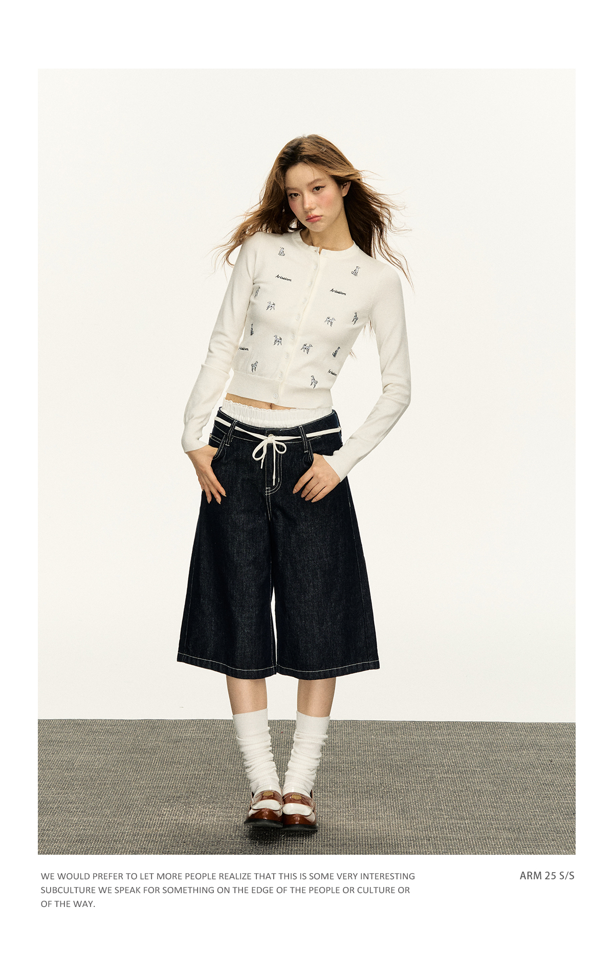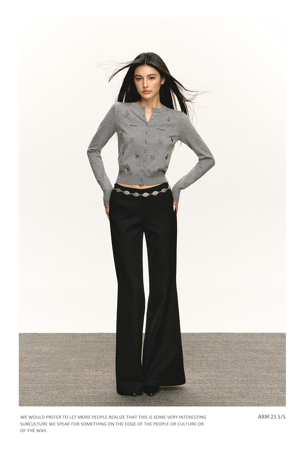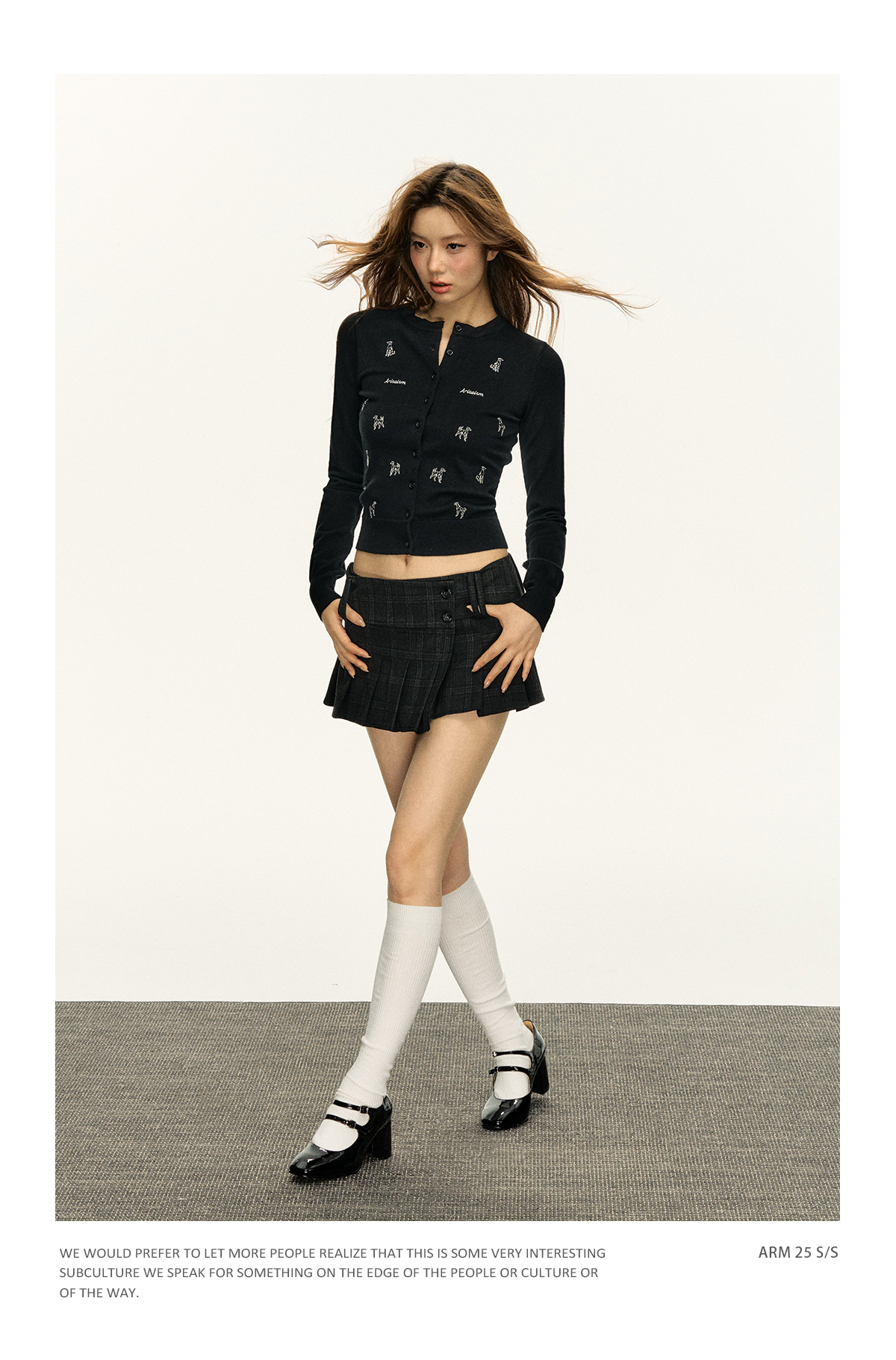 Ariseism刺绣小狗短款毛衣针织开衫女春季新款修身内搭上衣打底衫