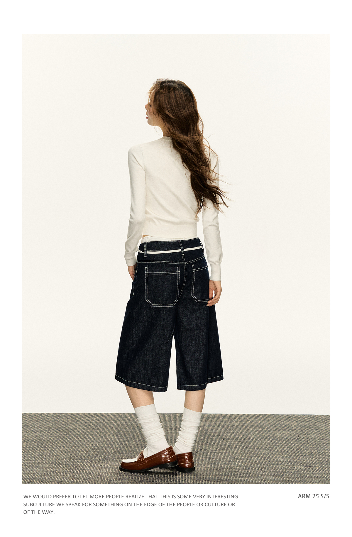 Ariseism 圆领短款长袖针织衫女春季新款内搭上衣修身毛衣打底衫