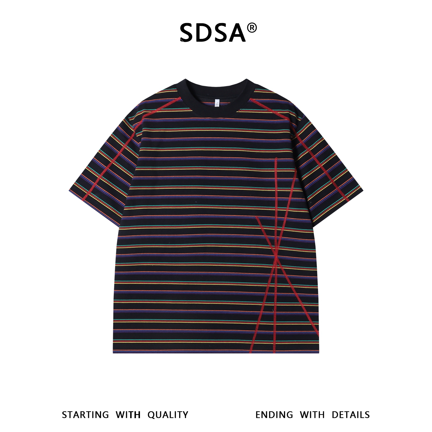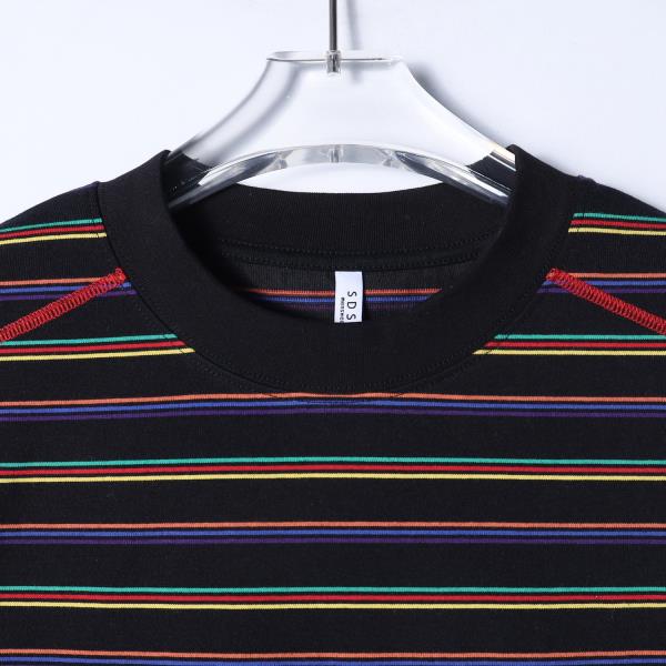 SDSA男装2026新款高贵轻奢美式复古撞色条纹短袖T恤明线设计休闲