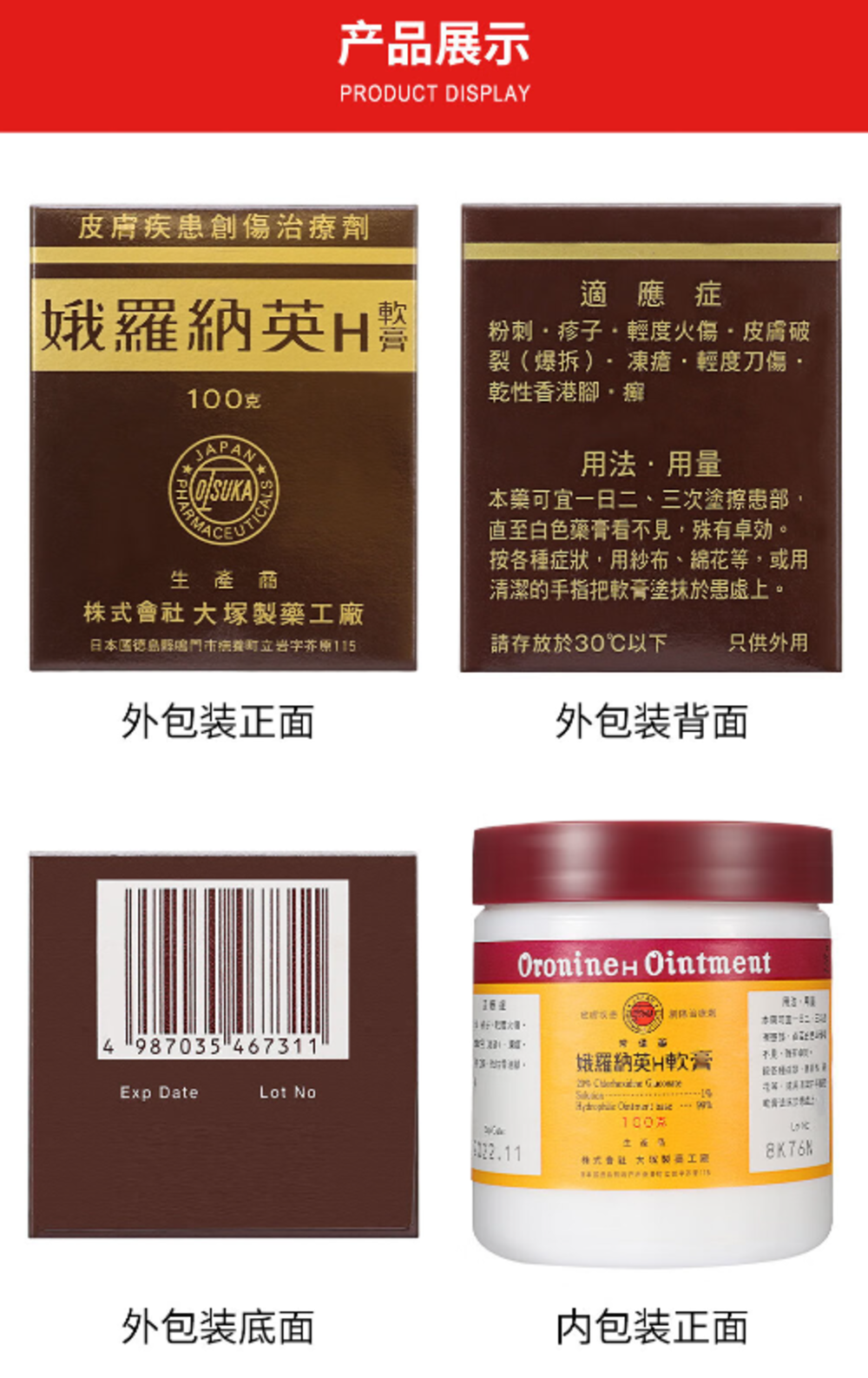 【香港直邮】皮肤爆拆粉刺疹子 正品 娥罗纳英H软膏 (100g)