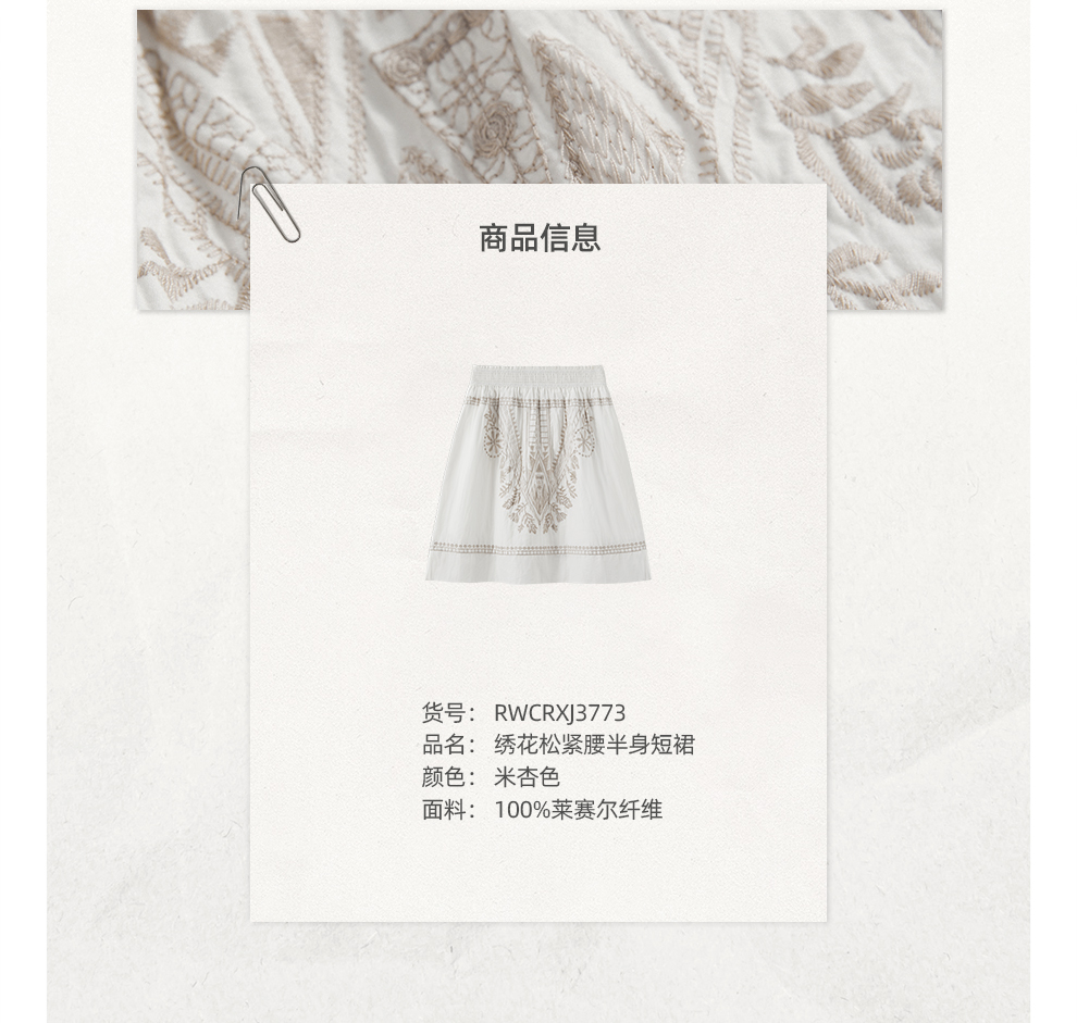 ROMI STUDIO“松弛夏日”100%莱赛尔重工绣花半身短裙 RWCRXJ3773【发货时间:25-30天】