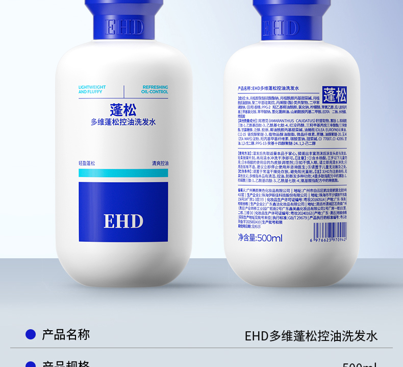 《多维蓬松》EHD控油洗发水500ml*2瓶 下单就送防脱100ml*1(赠品送完为止)