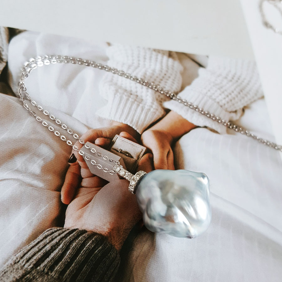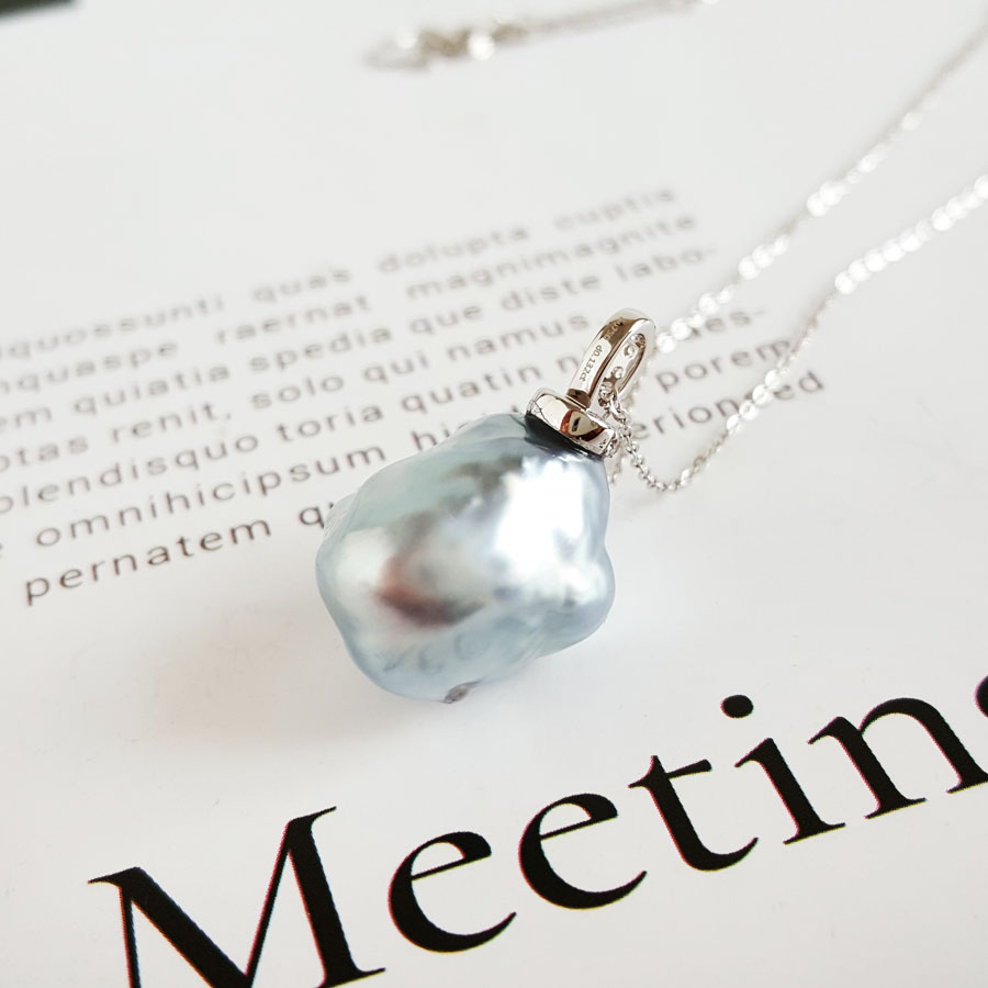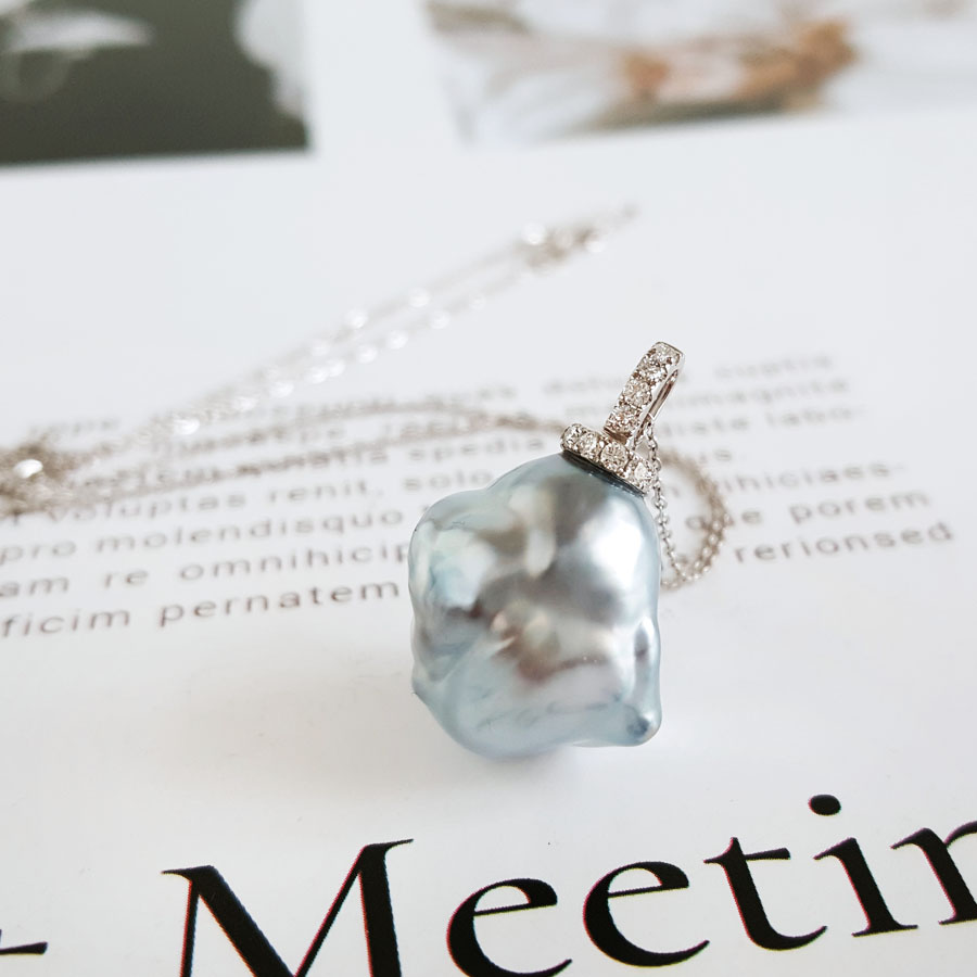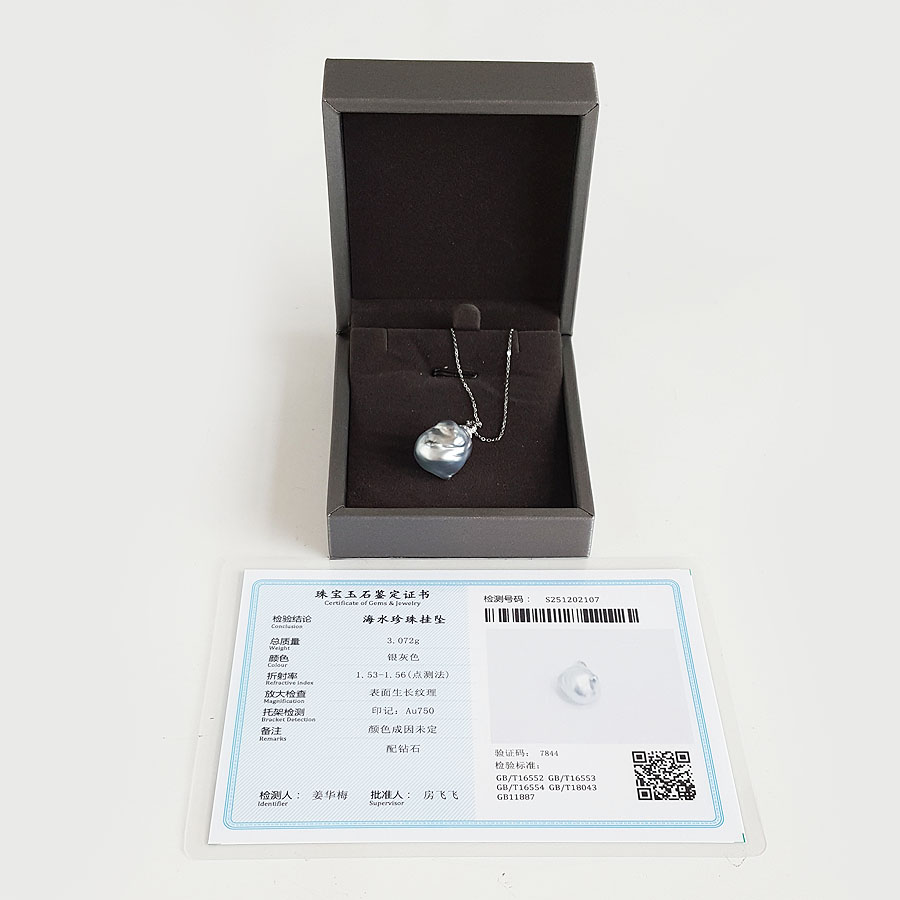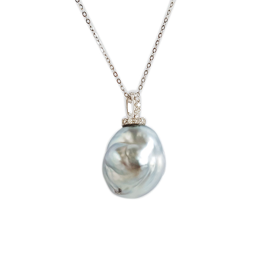 名称 | AU750白金镶钻镶天然巴洛克约17.1*14.3MM南洋海水珍珠吊坠项链 |