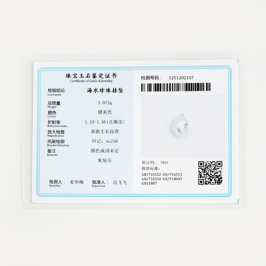 【天然正品】AU750白金镶钻镶天然巴洛克约17.1*14.3MM南洋海水珍珠吊坠项链24.7*17.1*14.3MM(皆取最大值)311225NJM42