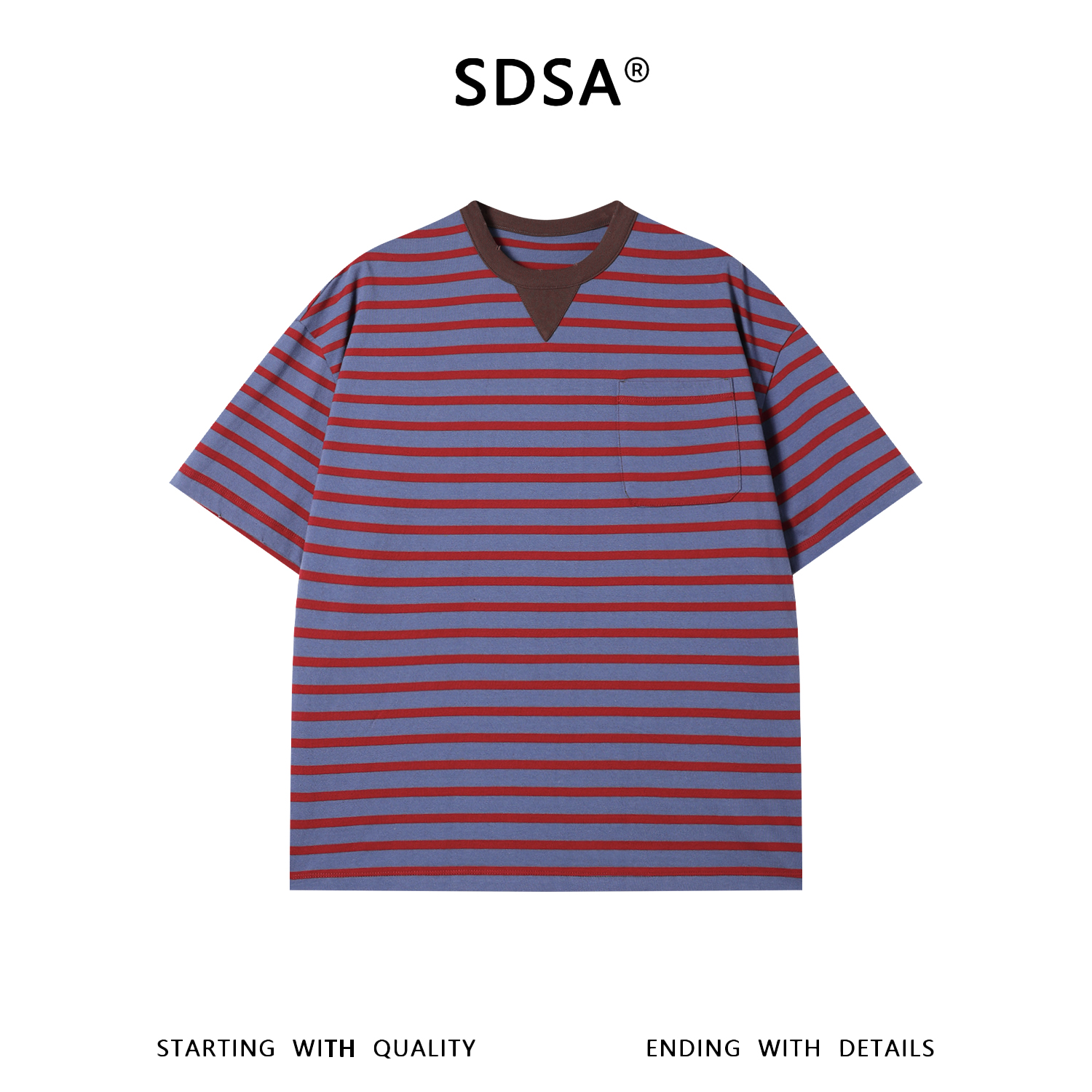 SDSA男装2026新款高贵轻奢高街复古撞色条纹圆领短袖T恤百搭时尚
