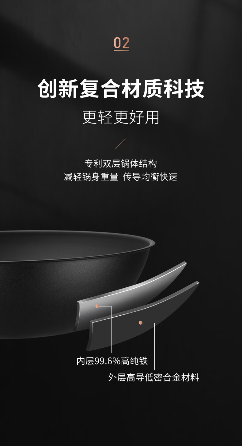 三禾无涂层窒氮防锈炒菜锅微纳不粘熟铁锅轻油少烟燃气灶专用锅具TC30T4/TC32T4
