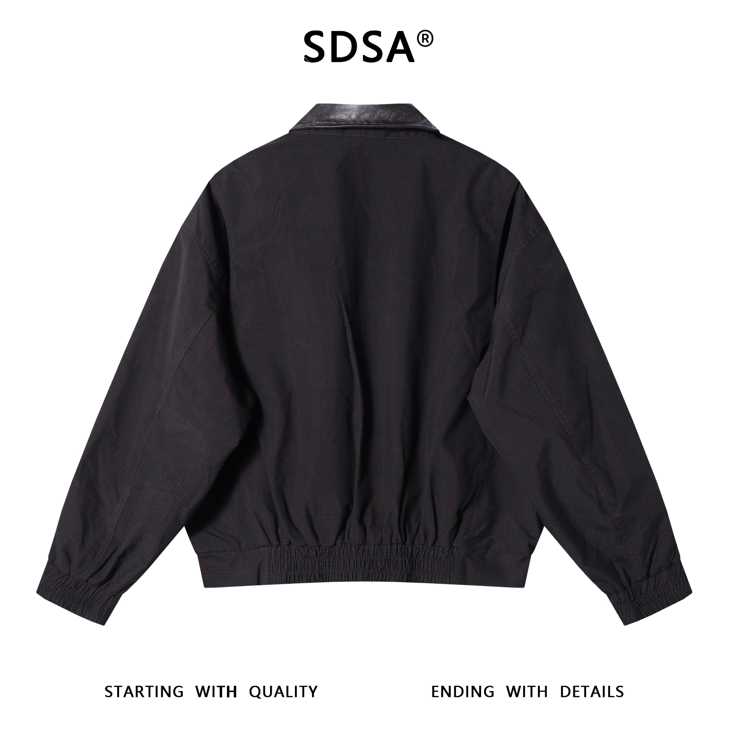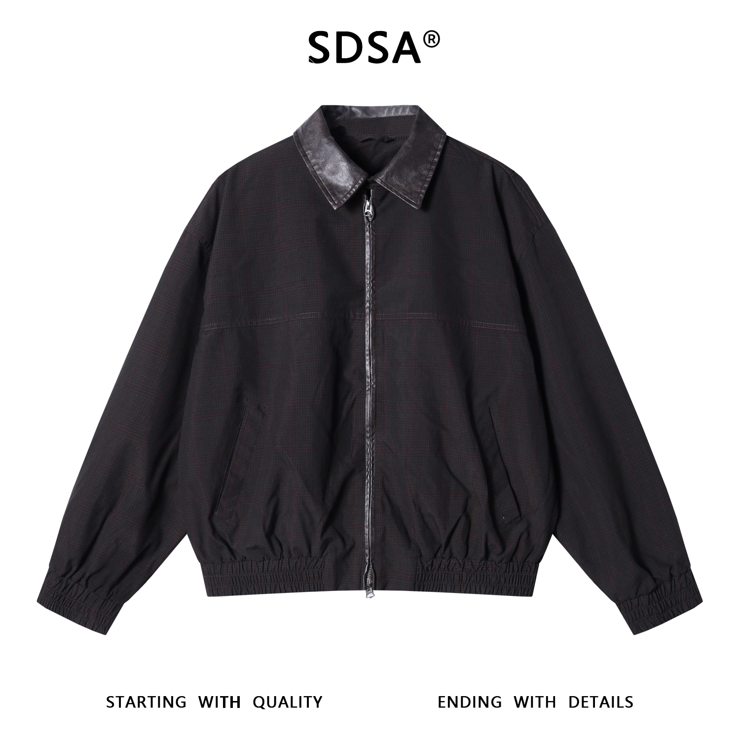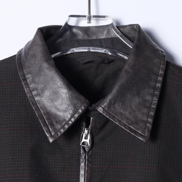 5610SDSA男士秋冬新款痞帅男装潮牌复古格纹拼皮翻领夹克外套百搭时尚
