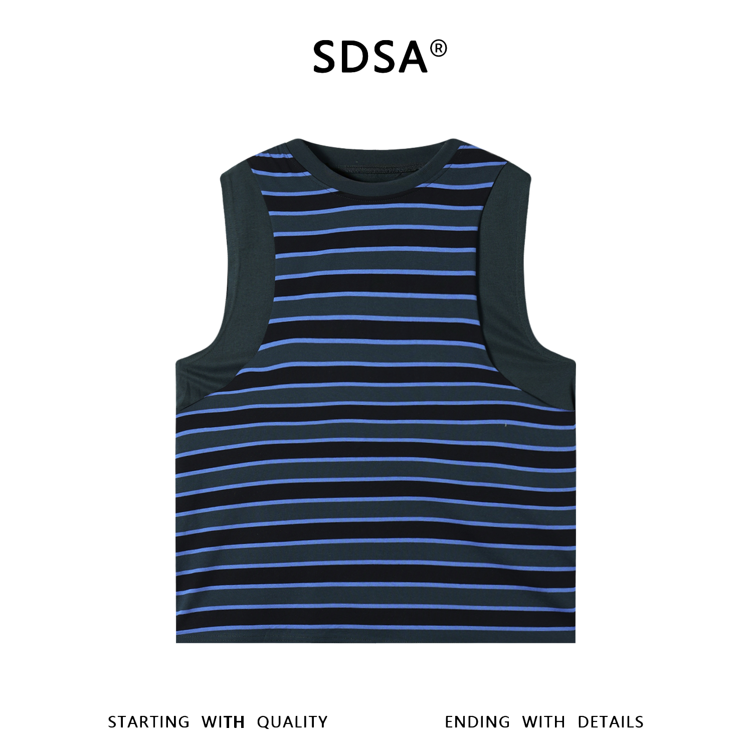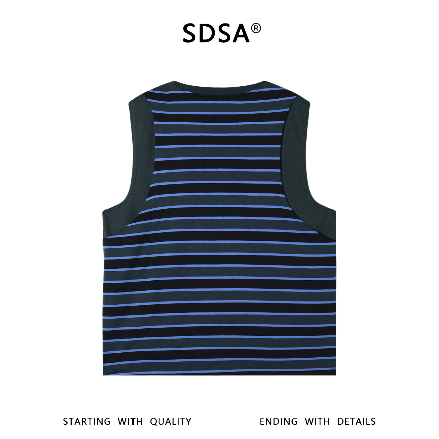 SDSA男装2026新款高贵轻奢撞色条纹拼色包边无袖背心百搭时尚
