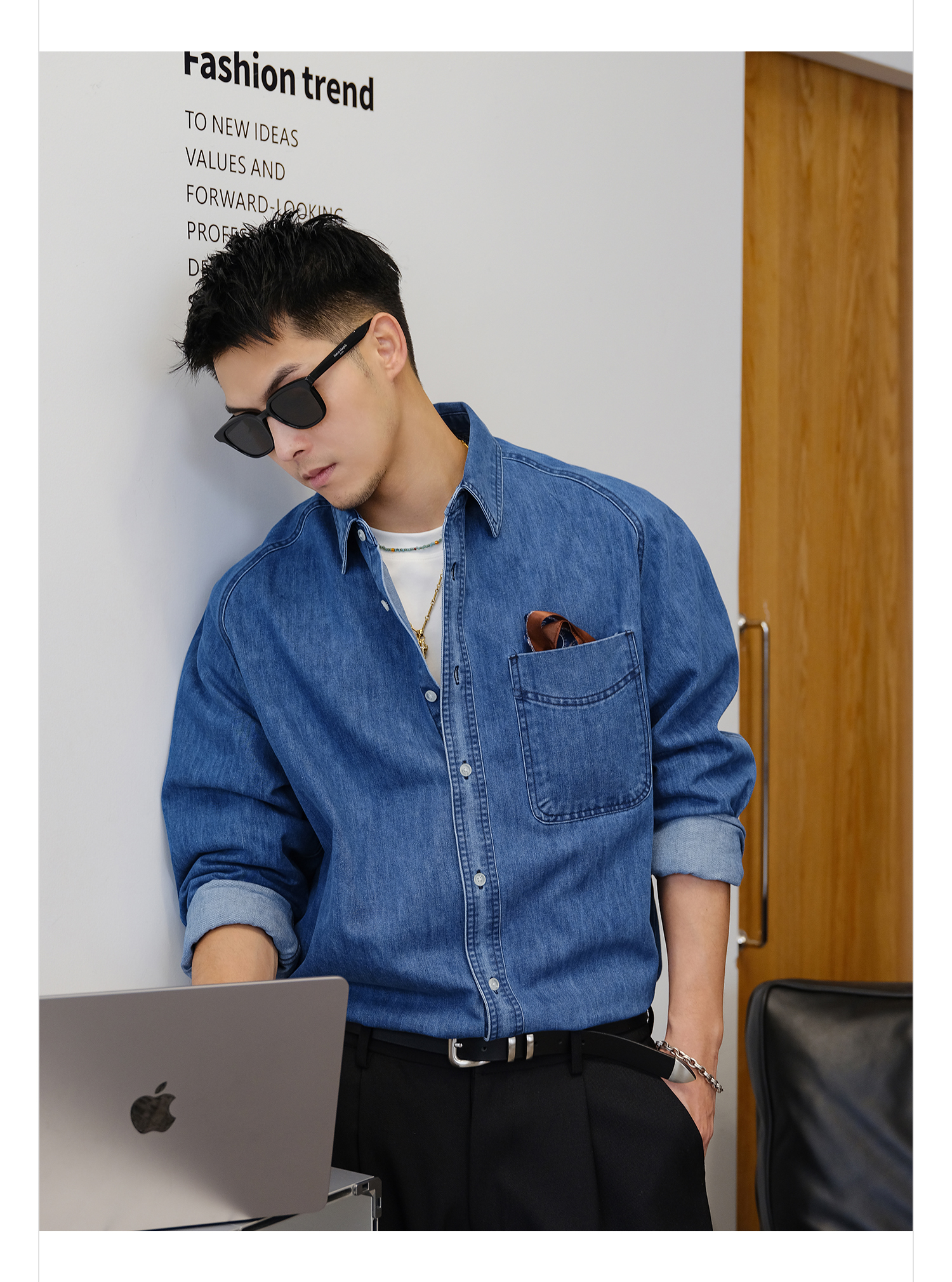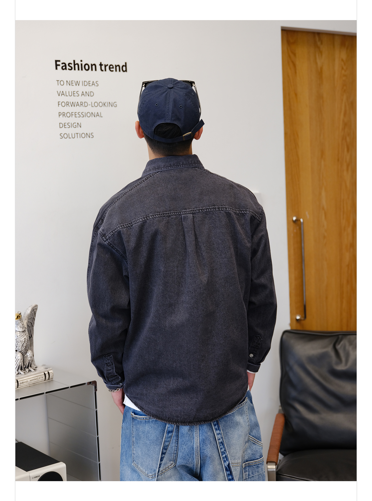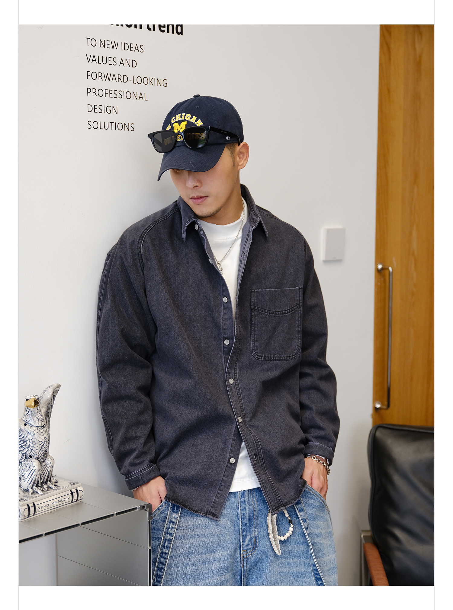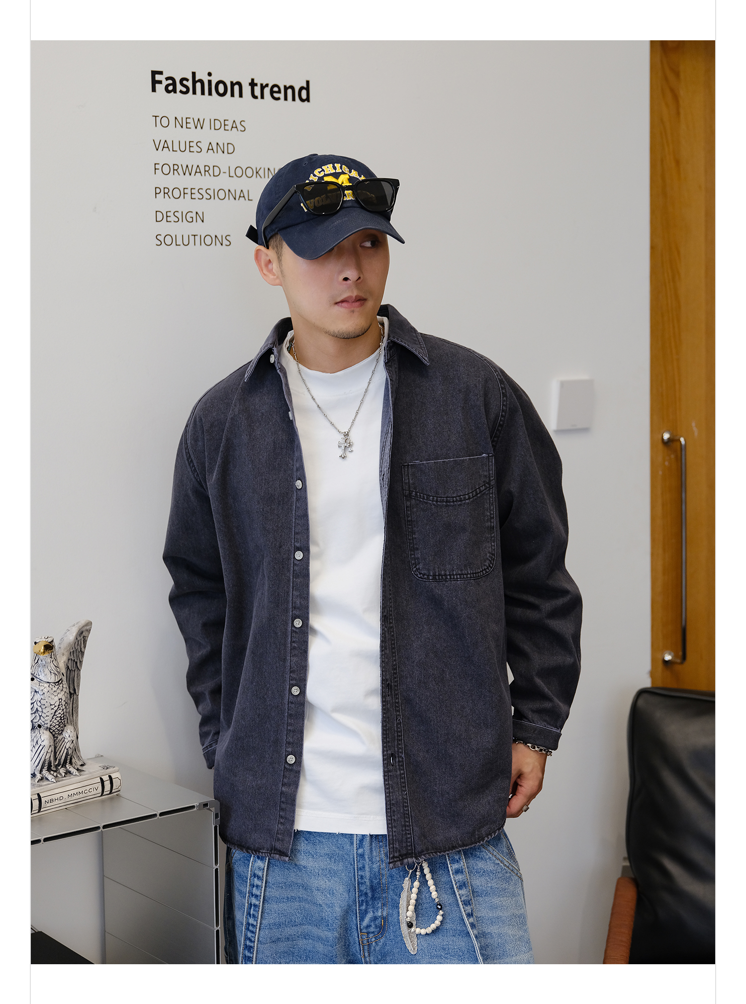 徐太浪280g蓝色牛仔长袖衬衫男2025新款秋季潮牌男装大码衬衣外套