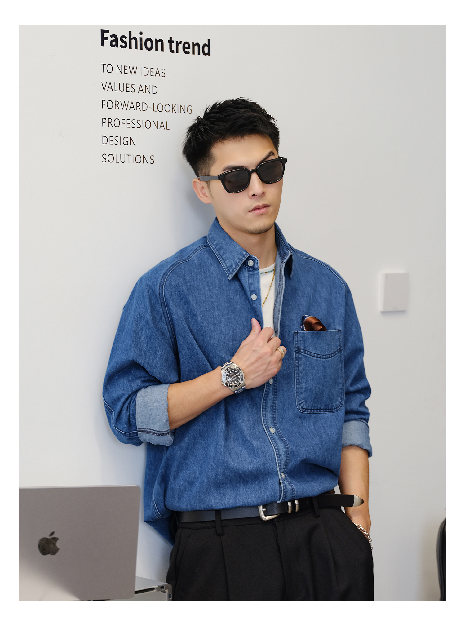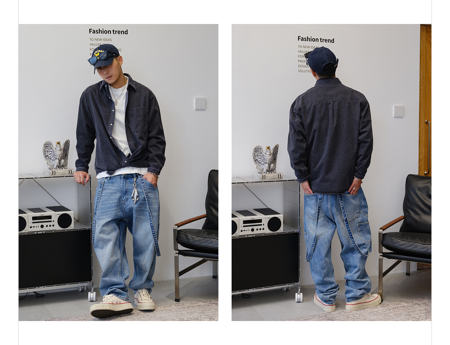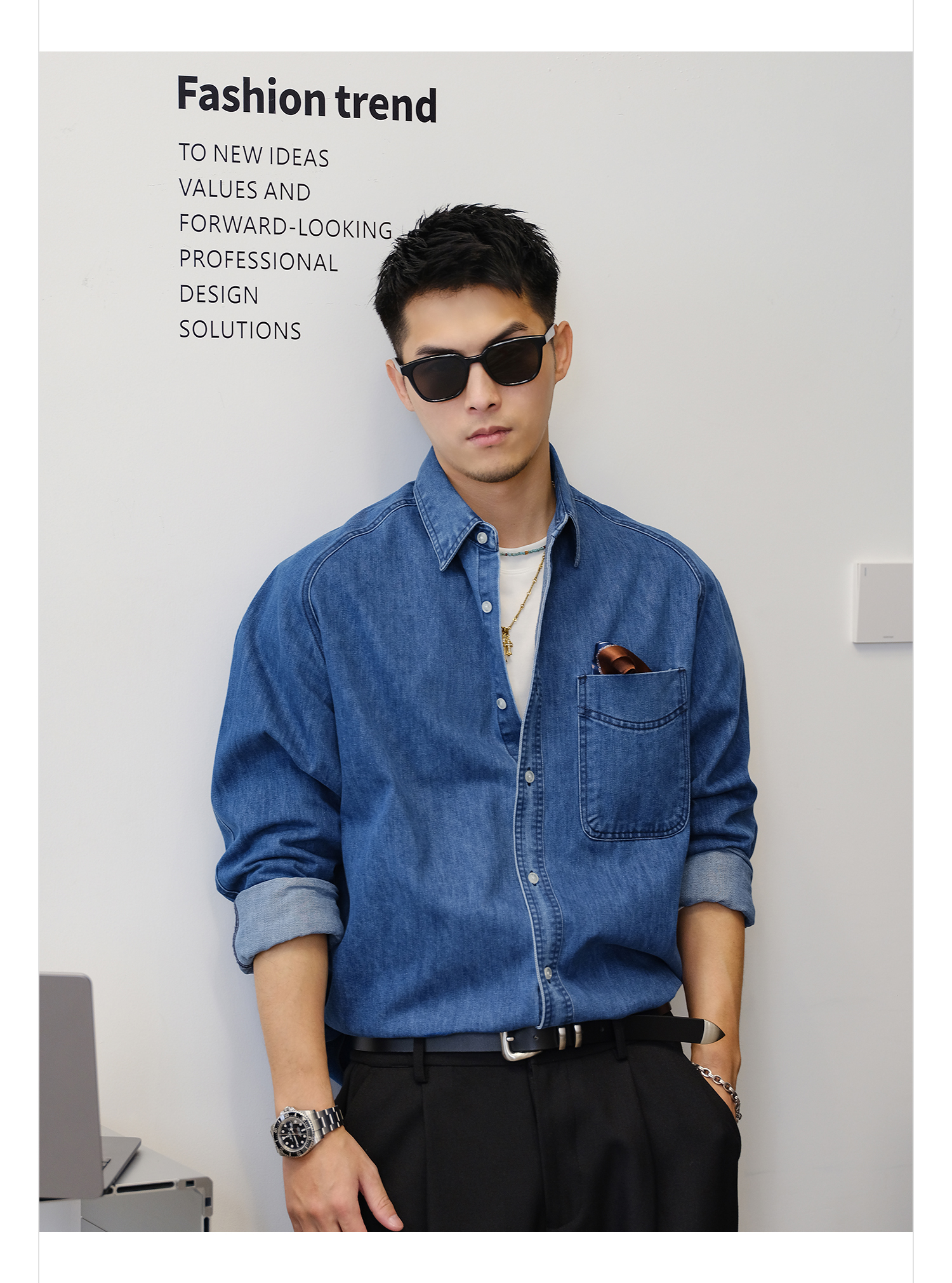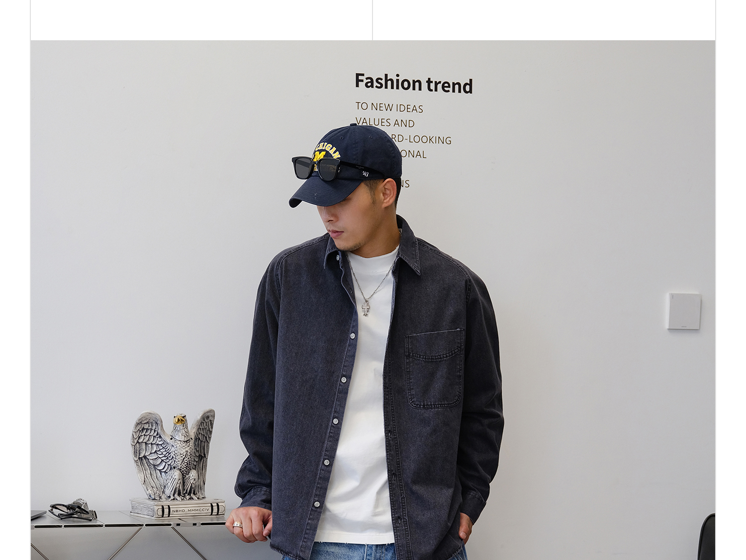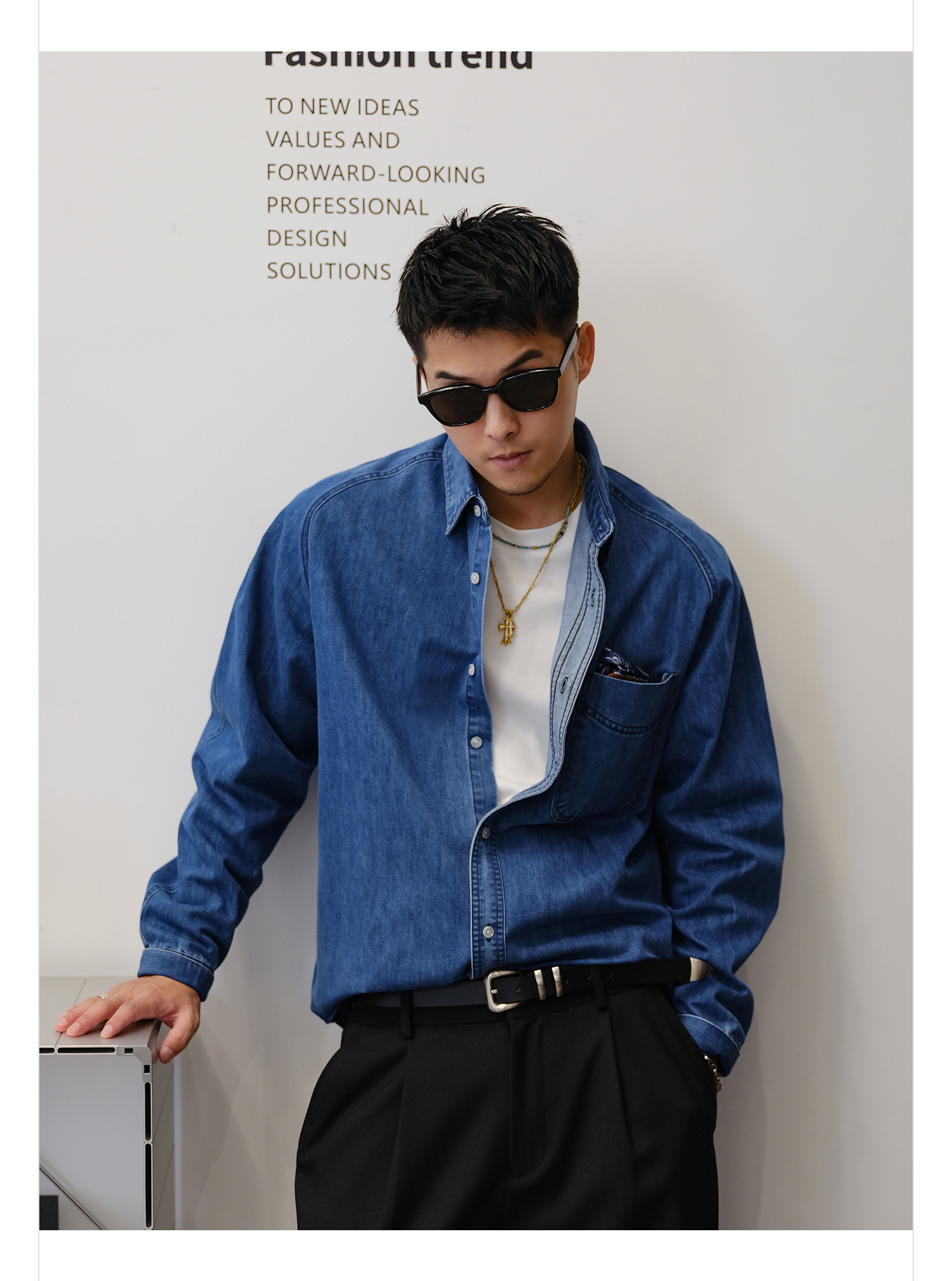 徐太浪280g蓝色牛仔长袖衬衫男2025新款秋季潮牌男装大码衬衣外套