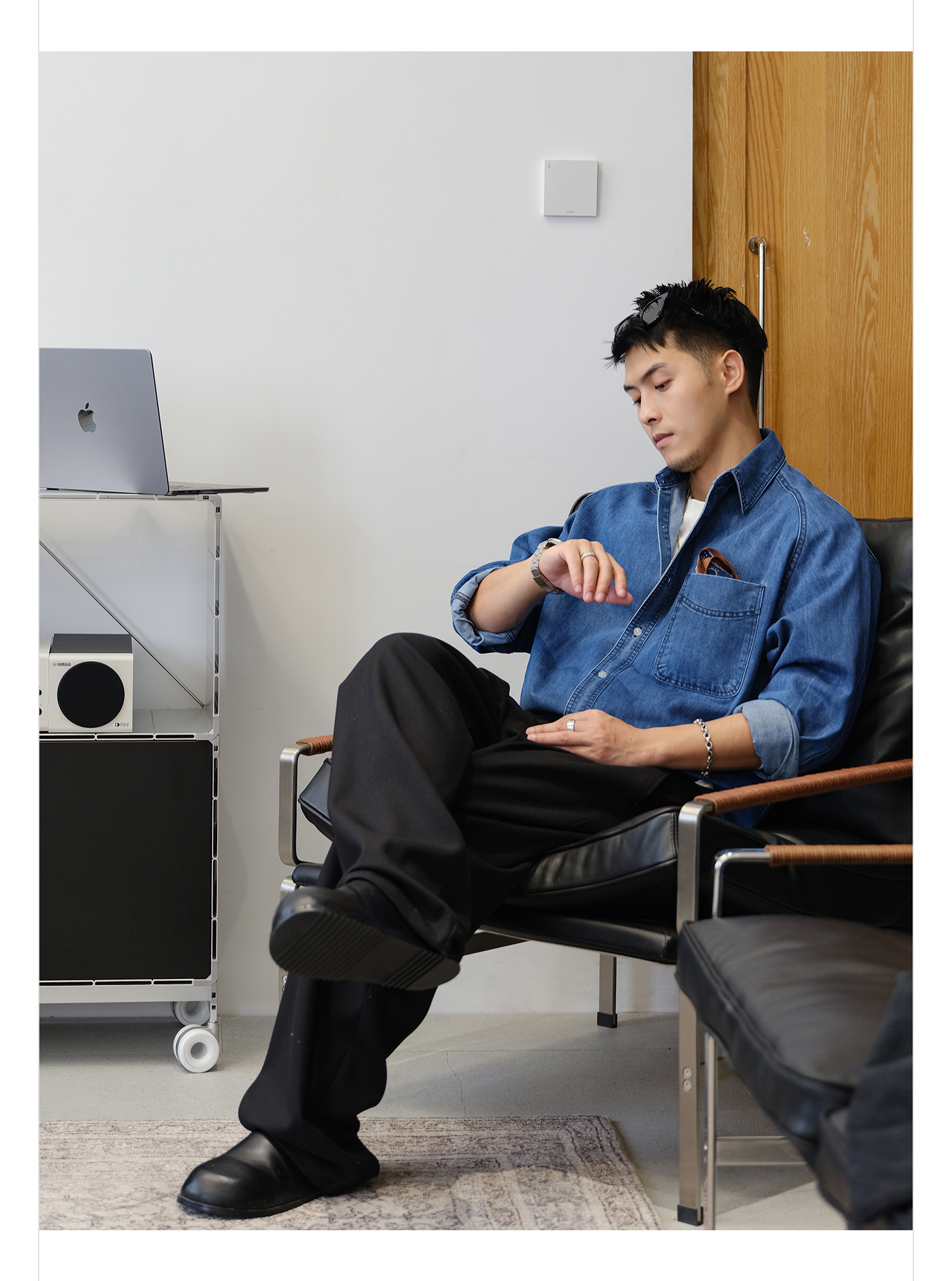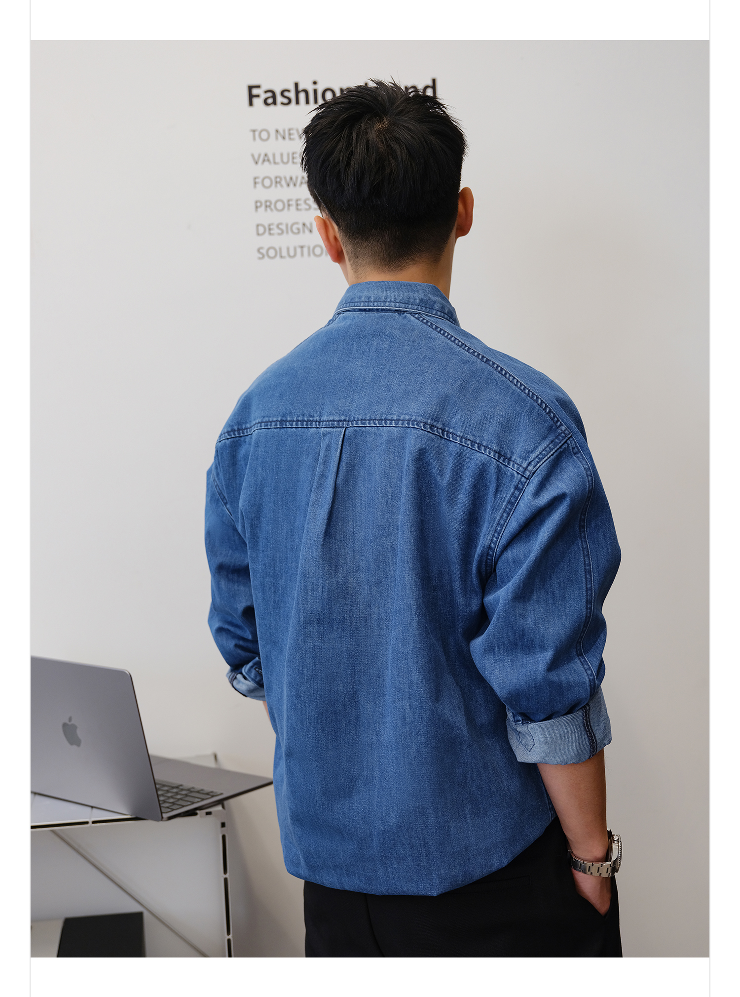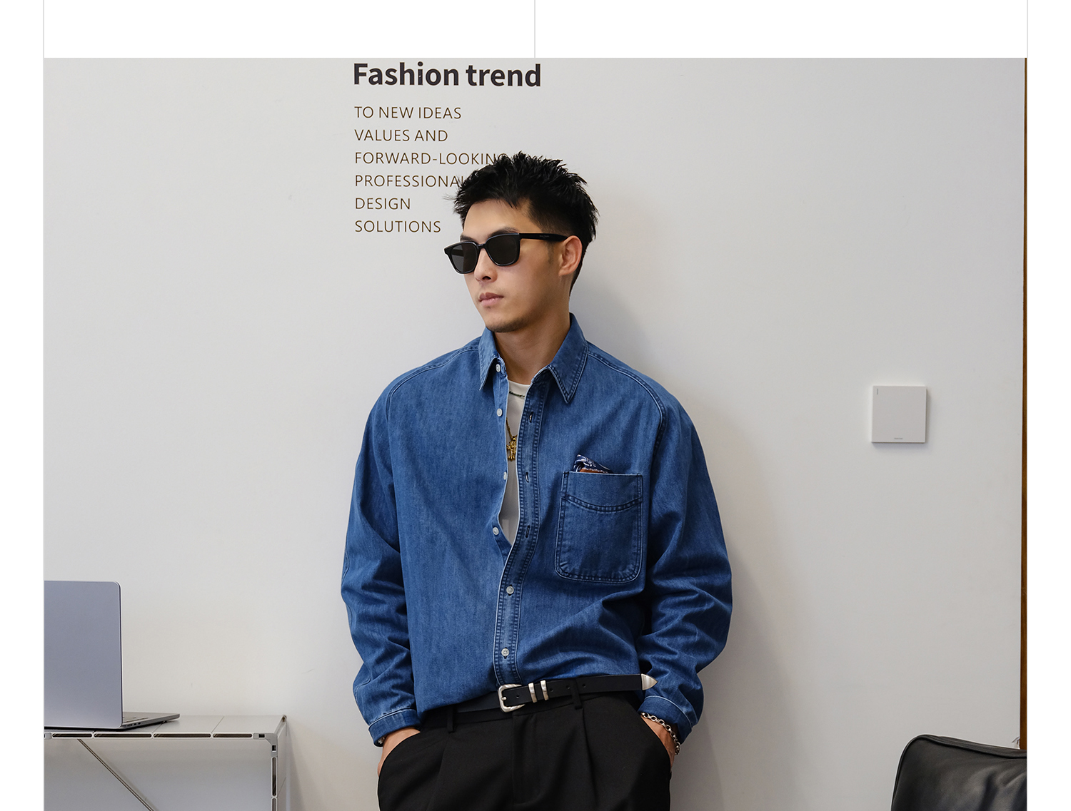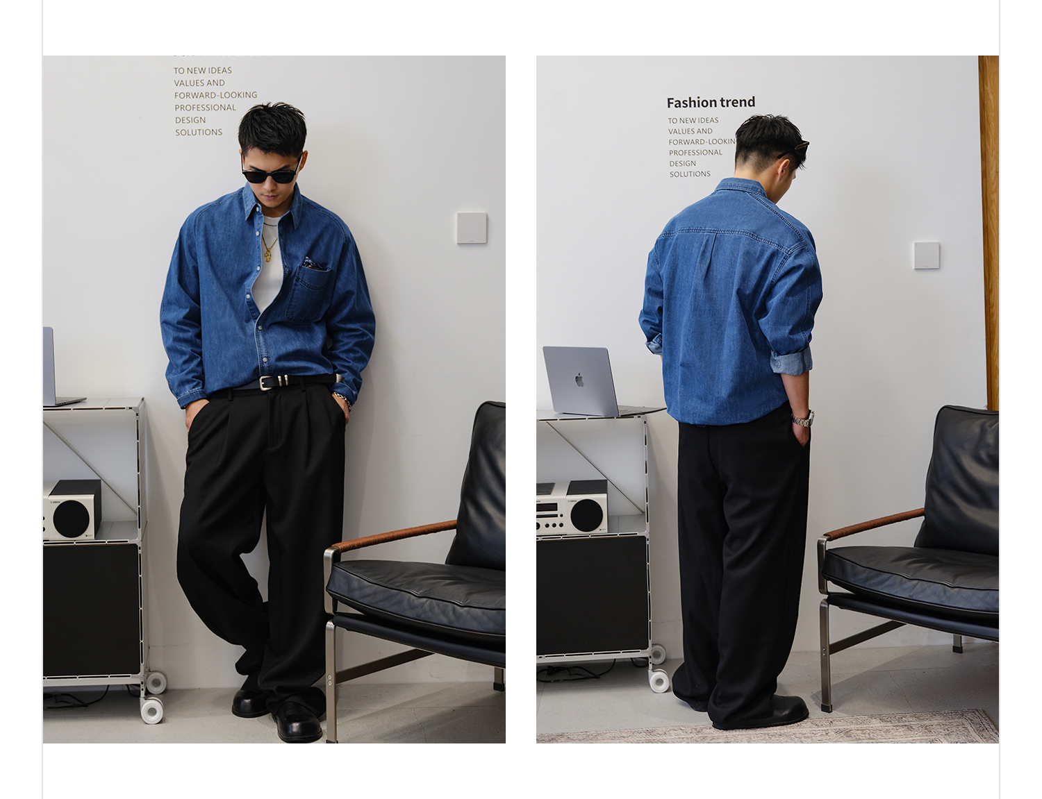 徐太浪280g蓝色牛仔长袖衬衫男2025新款秋季潮牌男装大码衬衣外套