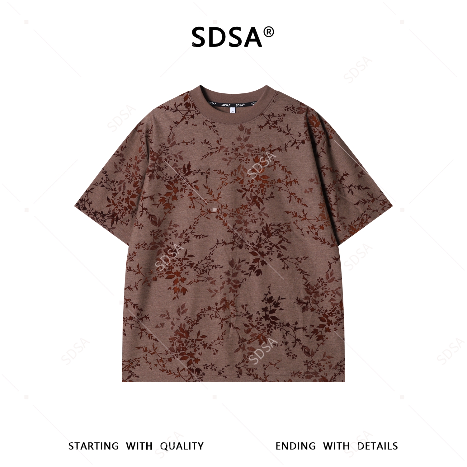26T188SDSA男装2026新款高贵轻奢美式复古植绒花卉设计圆领短袖T恤百搭