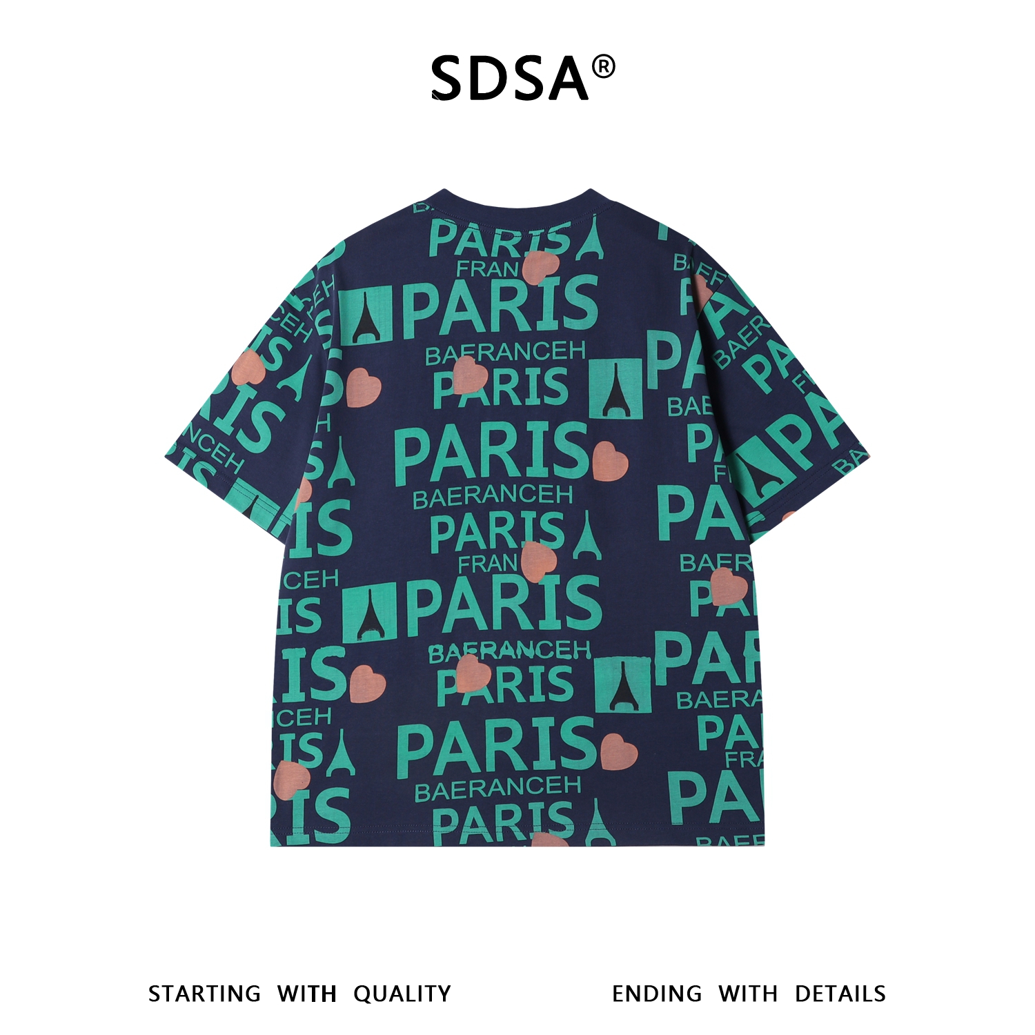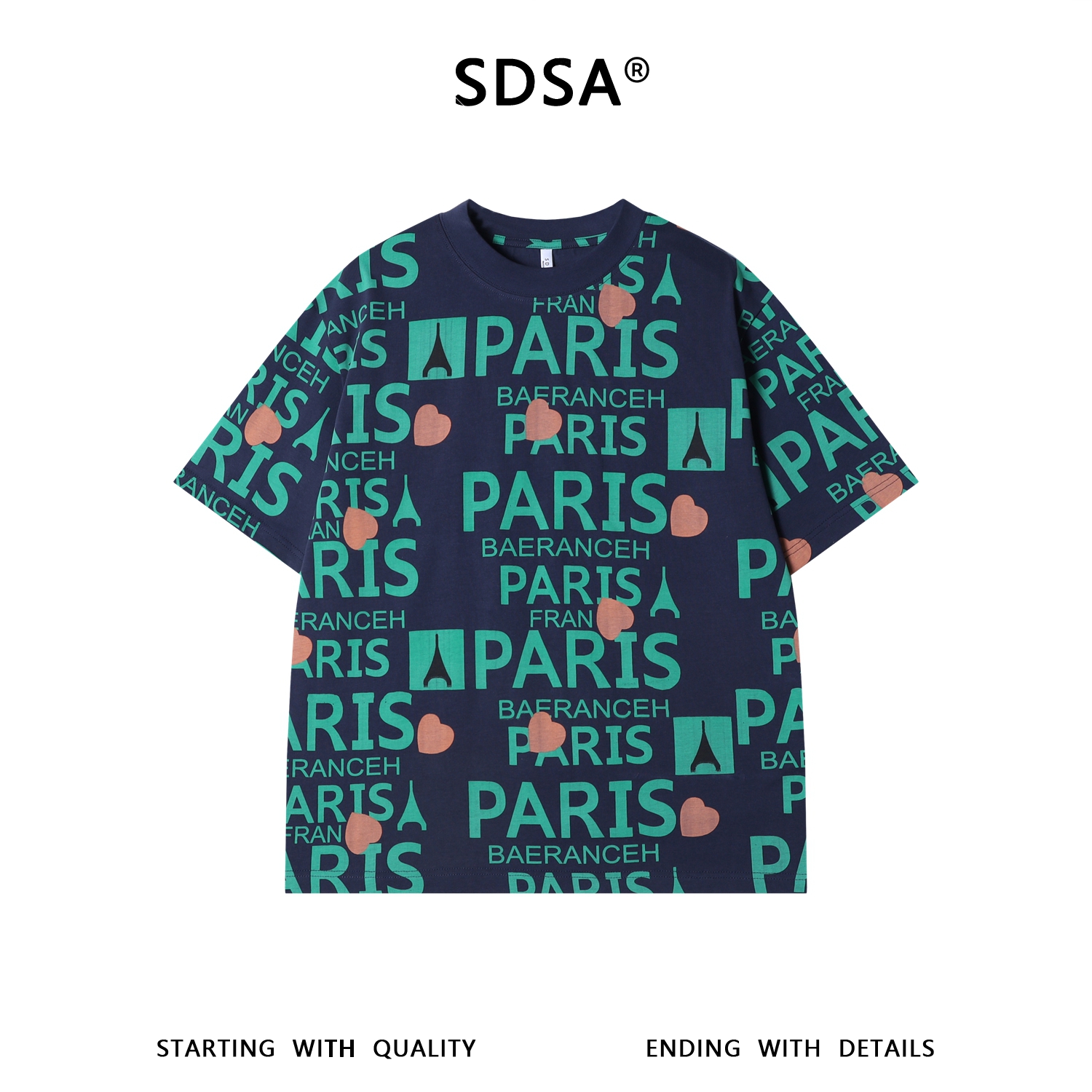 SDSA男装2026新款高贵轻奢美式撞色满印字母印花圆领短袖T恤百搭