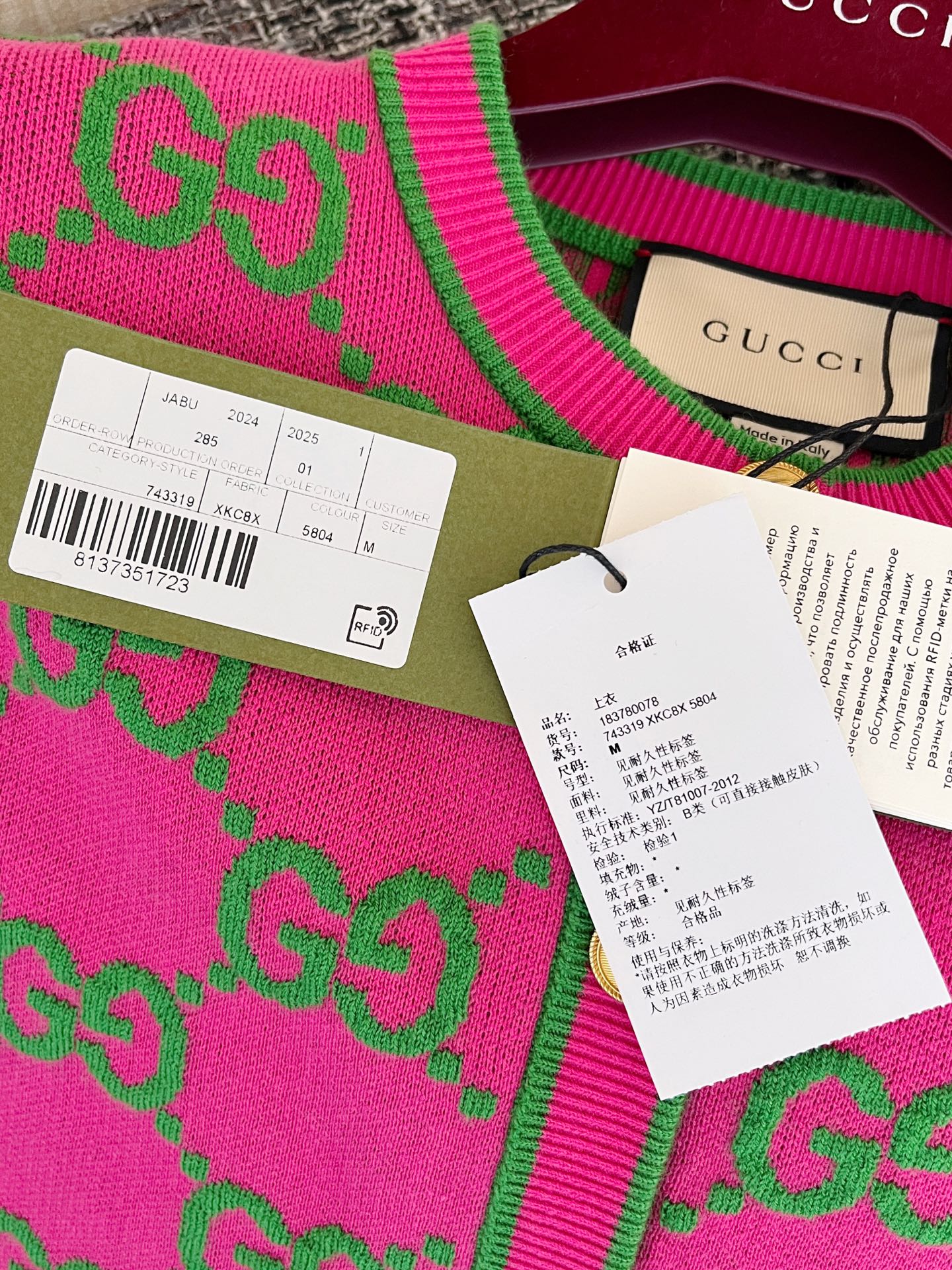 Gucci古驰 25早秋新款毛织开衫🐮15200购买Zp拆解打造,订织订染美利奴进口面料🐮真正用到100%羊毛纱线和桑蚕丝织布做到对版出货💪工艺放大看细节除还原度接近98以上 做工也无敌了🔥真正做到1:1还原 直接闭着眼购买👀码数:S M L XL