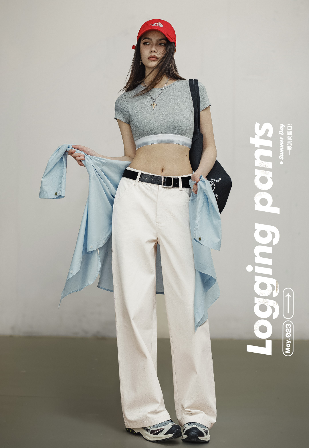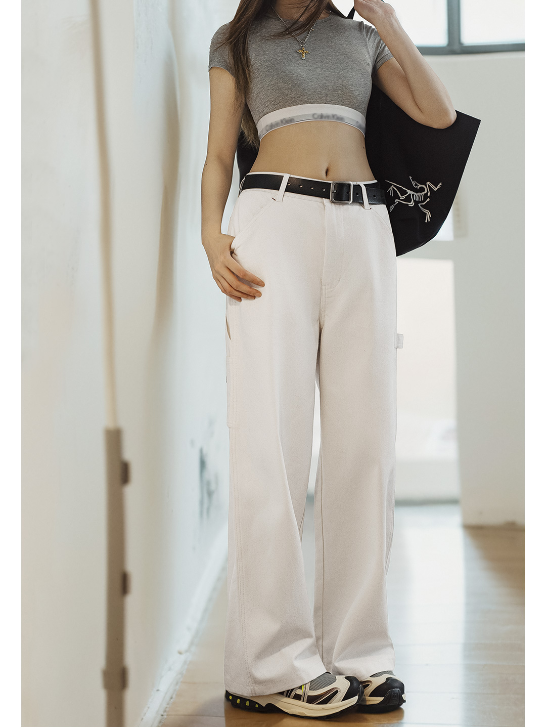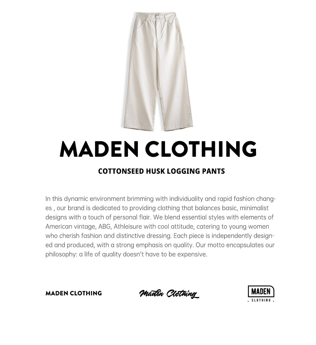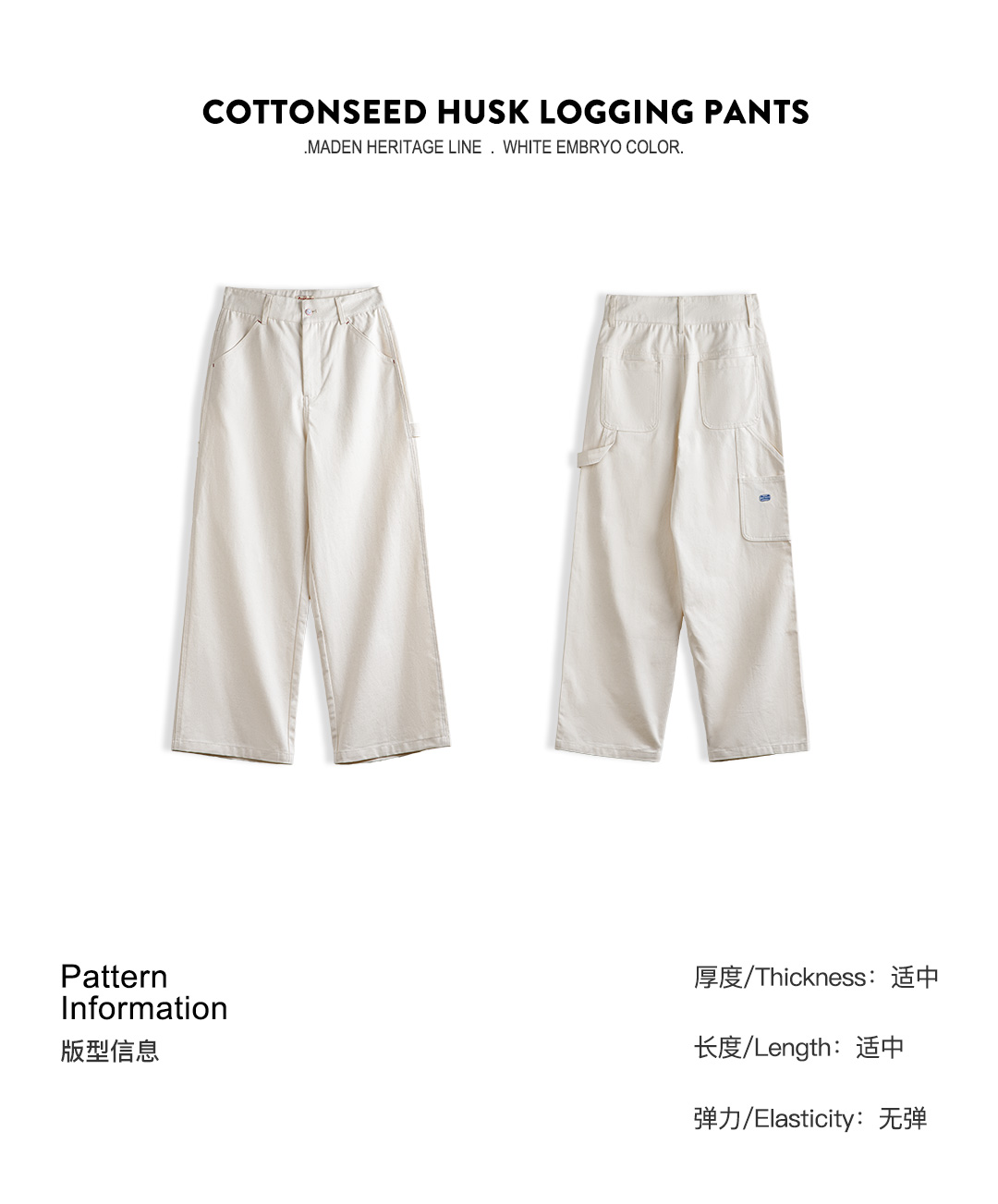 马登美式复古棉籽壳白色直筒裤百搭伐木工休闲裤原胚色工装裤女秋